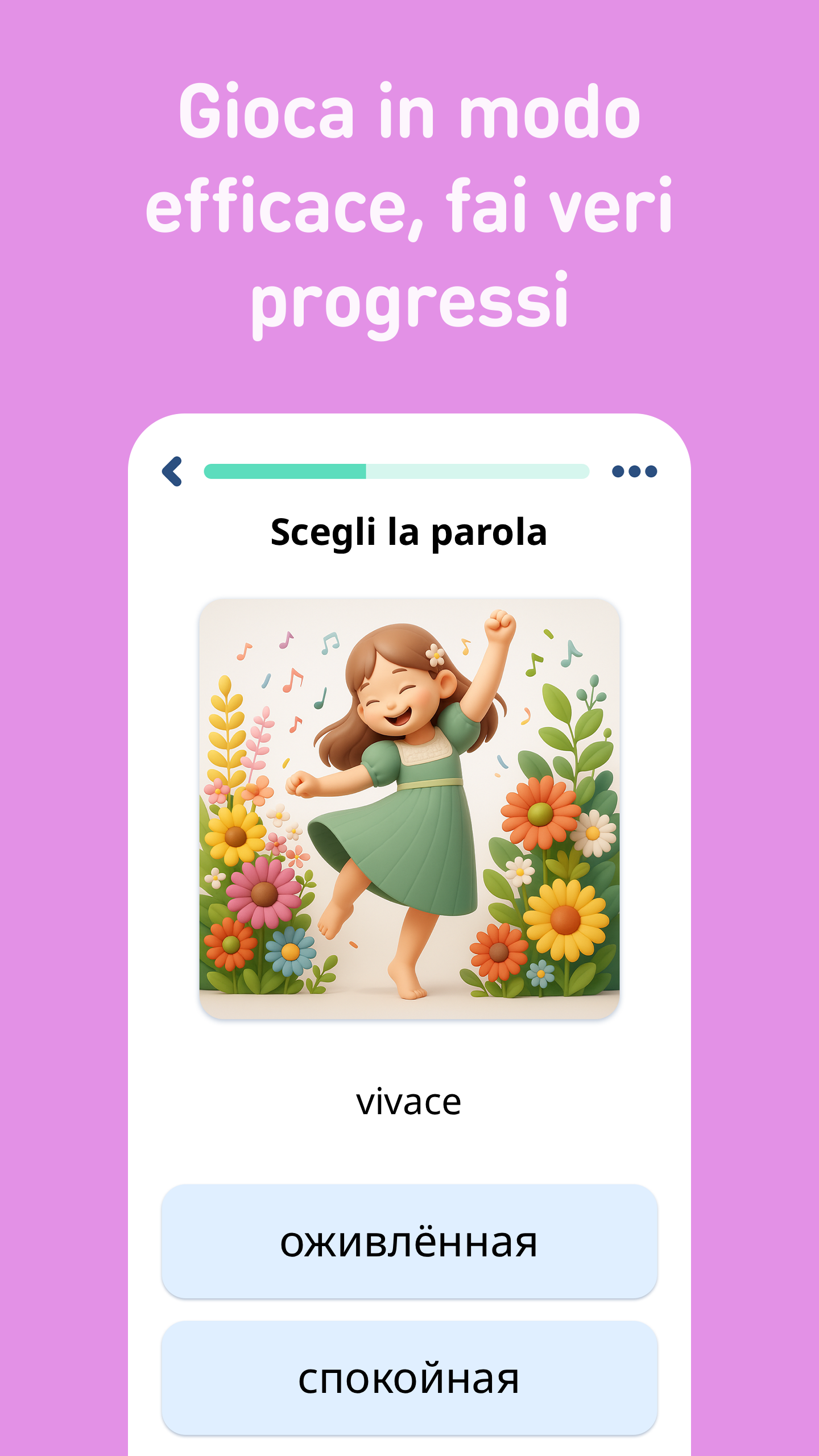 Impara il russo da 61 lingue native, gratis & offline, con FunEasyLearn. Impara a LEGGERE 📖 SCRIVERE✍ e PARLARE il russo 💬 Scopri il modo semplice & divertente per imparare tutte le regole di lettura, tutte le parole di cui avrai mai bisogno e tutte le frasi utili in lingua russo. 🚀 Contenuto • 6.000 parole russi (in costante crescita): i nomi, i verbi, gli aggettivi, ecc. più comuni, classificati in 7 livelli e 200 argomenti; • 5.000 frasi russi (usate frequentemente): le frasi più importanti per conversazioni e viaggi quotidiani, suddivise in 10 livelli e 120 argomenti. Espandi il tuo vocabolario imparando parole, frasi ed espressioni per studenti principianti, di livello intermedio e avanzato. 🔔 Perchè imparare il russo con FunEasyLearn? FunEasyLearn rivoluziona l'apprendimento delle lingue. Il nostro team di linguisti e insegnanti ha sviluppato una strategia unica di apprendimento delle lingue. Il segreto sta nel combinare un alfabeto con tutte le regole di lettura, tutte le parole necessarie e un pratico frasario in un'unica app. Ciò consente ai nostri utenti di leggere una parola o frase, pronunciarla correttamente, associarla a un'illustrazione e praticarla con giochi di ascolto, scrittura e conversazione. 🏆 Caratteristiche principali Illustrazioni disegnate a mano – memorizza il nuovo vocabolario più velocemente con illustrazioni intuitive; Registrazioni audio professionali – ascolta degli audio registrati da madrelingua; Statistiche dettagliate – analizza i tuoi risultati e traccia i tuoi progressi; Sistema di revisione – ripassa tutto ciò che impari; Ricerca complessa – trova rapidamente le parole e le frasi di cui hai bisogno; Nascondi ciò che sai Riconoscimento vocale – migliora la tua pronuncia; Offline – usa l'app in qualsiasi parte del mondo, senza connessione a Internet. 💼 Russo per lavoro Ottieni l'accesso a speciali lezioni di russo creati per il vostro business. Offriamo corsi specializzati per tassisti, personale di hotel & ristoranti, assistenti di volo, commessi, ecc. ✈ Russo per viaggiare Impara come prenotare una camera d'albergo, ordinare un pasto in un ristorante, chiedere indicazioni stradali, svolgere una conversazione e parlare in sicurezza con i madrelingua. 🙌 Russo per adulti Adattiamo i contenuti in base all'età dello studente. Sia tu che tuo figlio potete imparare il russo e divertirvi. Abbonamento Gratuito a FunEasyLearn Iscriviti GRATIS, con i fiori che guadagni giocando ai giochi di apprendimento delle lingue. Impara il russo, gioca gratis! È veloce & facile. 📴 📥 Scarica subito il corso di russo FunEasyLearn! Raccomanda l'app ai tuoi amici e ottieni una ricompensa! Valutaci e scrivi una recensione ⭐⭐⭐⭐⭐ Significherebbe molto per il nostro team! Contattaci: https://www.FunEasyLearn.com/