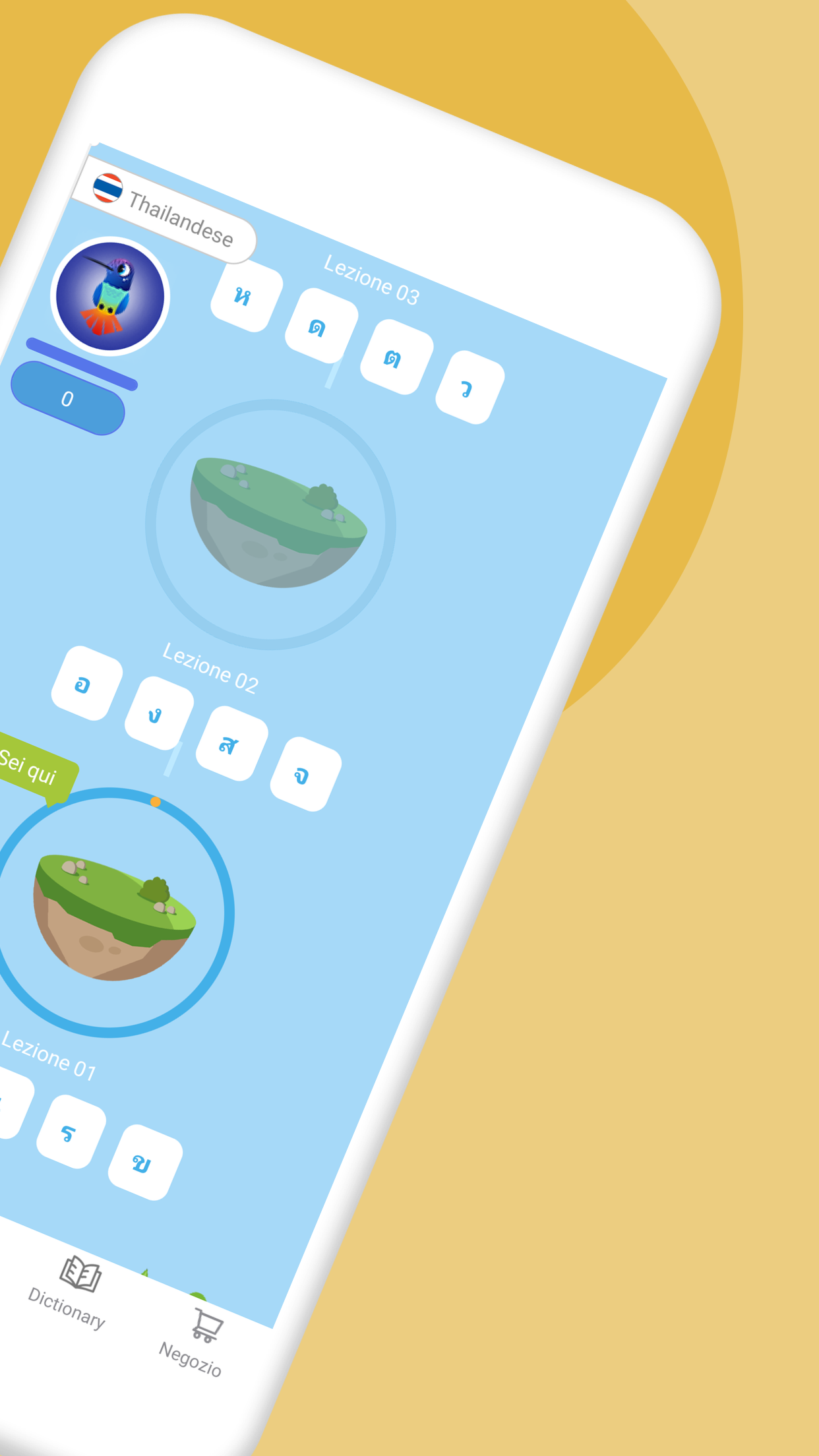 Write - Me Impara a scrivere l'Alfabto è un'applicazione educativa GRATUITA che ti permette di imparare i caratteri Thailandese in modo semplice e veloce. Con il nostro sistema di riconoscimento della scrittura potrai praticare a scrivere le lettere Thailandese correttamente e senza pensieri. Write Me è stata disegnata per imparare i caratteri Thailandese in modo semplice e divertente! Utilizzando una varietà di giochi, potrai immergerti nei caratteri Thailandese utilizzando solo l'applicazione sul tuo telefono! Su Write Me abbiamo reso il processo di apprendimento incredibilmente divertente creando storie di uccellini Colibrì. Tutto quello che devi fare è spolverare le tue abilità nel far crescere fiori di loto nel tuo giardino perché gli uccellini ci si possano cibare. I colibrì cresceranno e cambieranno colore una volta finito di imparare.