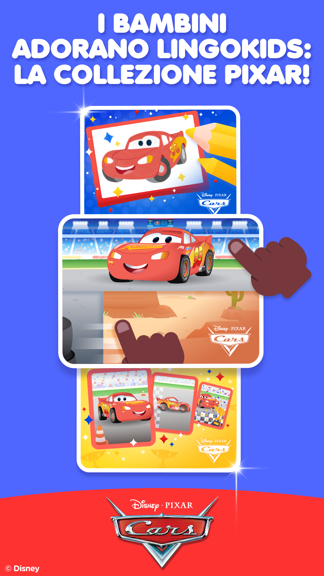 Cars di Disney Pixar arriva a tutta velocità nella Lingokids: Pixar Collection con nuove attività! I bambini si uniscono a Saetta McQueen e ai suoi amici per sfide ad alta energia con missioni di numeri, giochi di schemi e logica divertente. Ogni pit stop e traguardo rafforza concentrazione e fiducia.