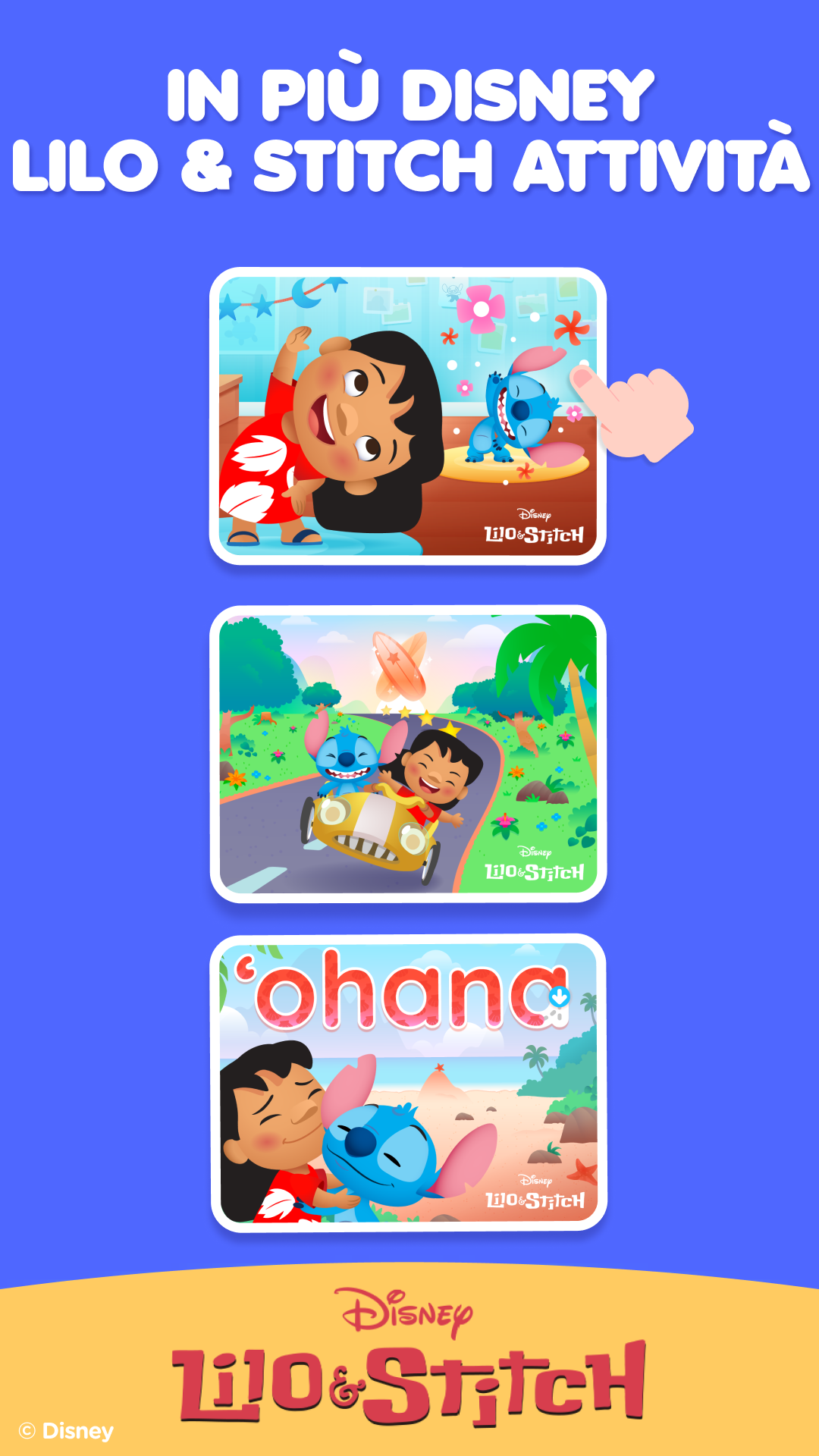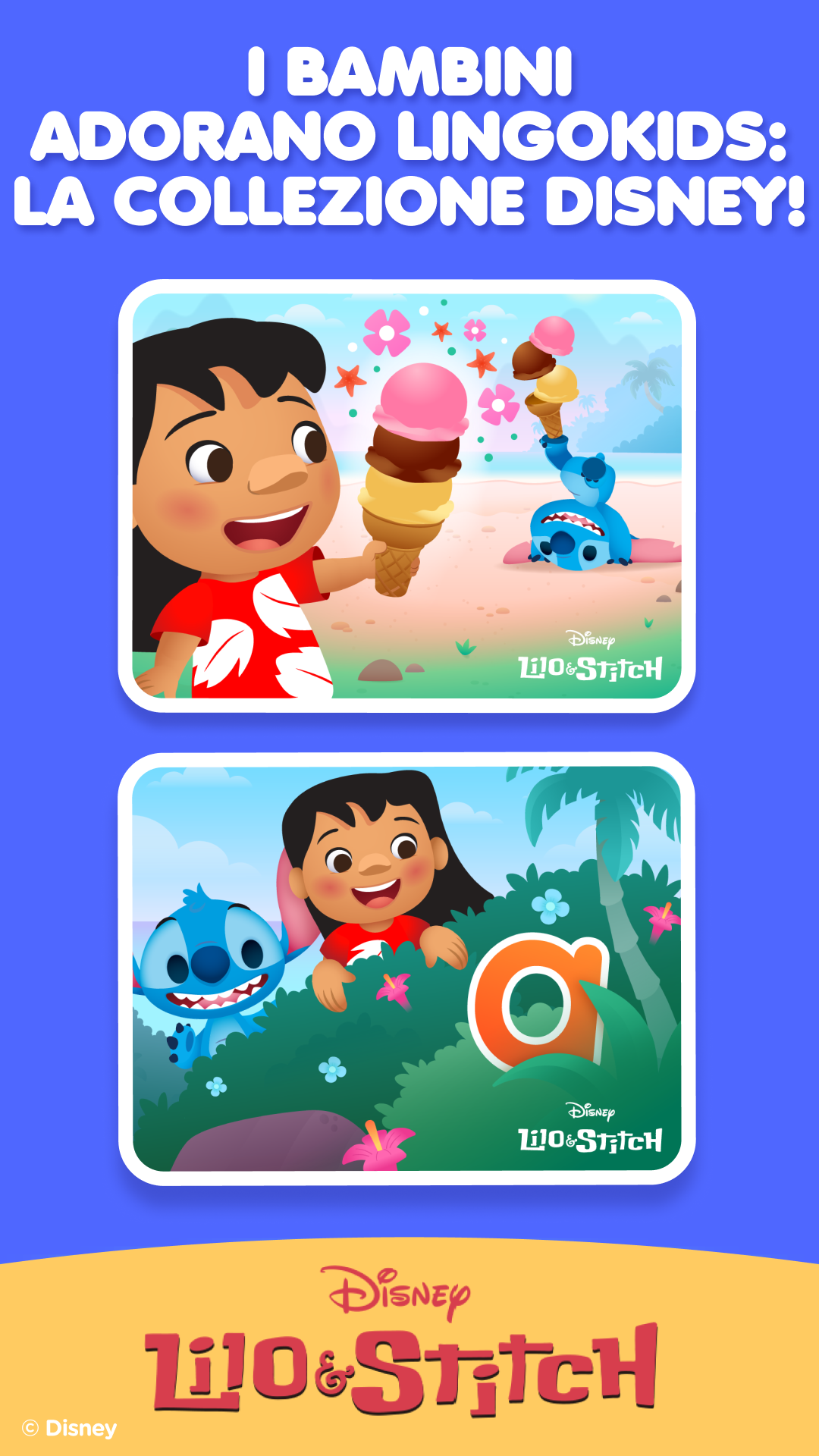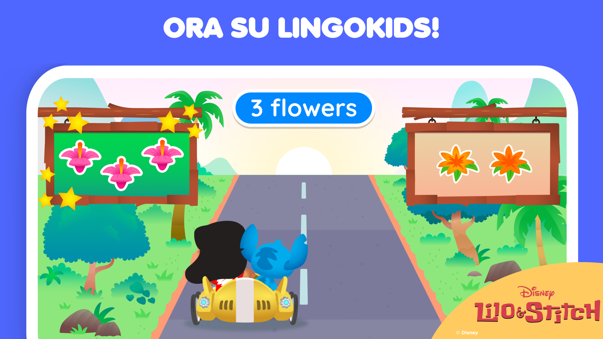 Le attività Disney Lilo & Stitch arrivano nell’app Lingokids! I bambini si tuffano in avventure su isole selvagge con attività di numeri, puzzle di schemi e giochi di parole ispirati a Lilo & Stitch. Ogni attività è piena di risate, marachelle e divertimento nello stile “ohana”!