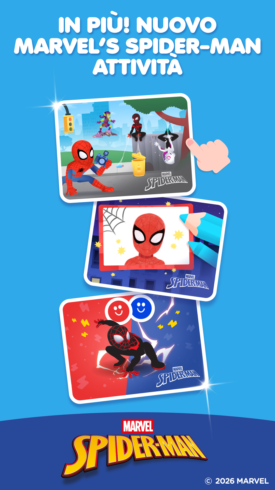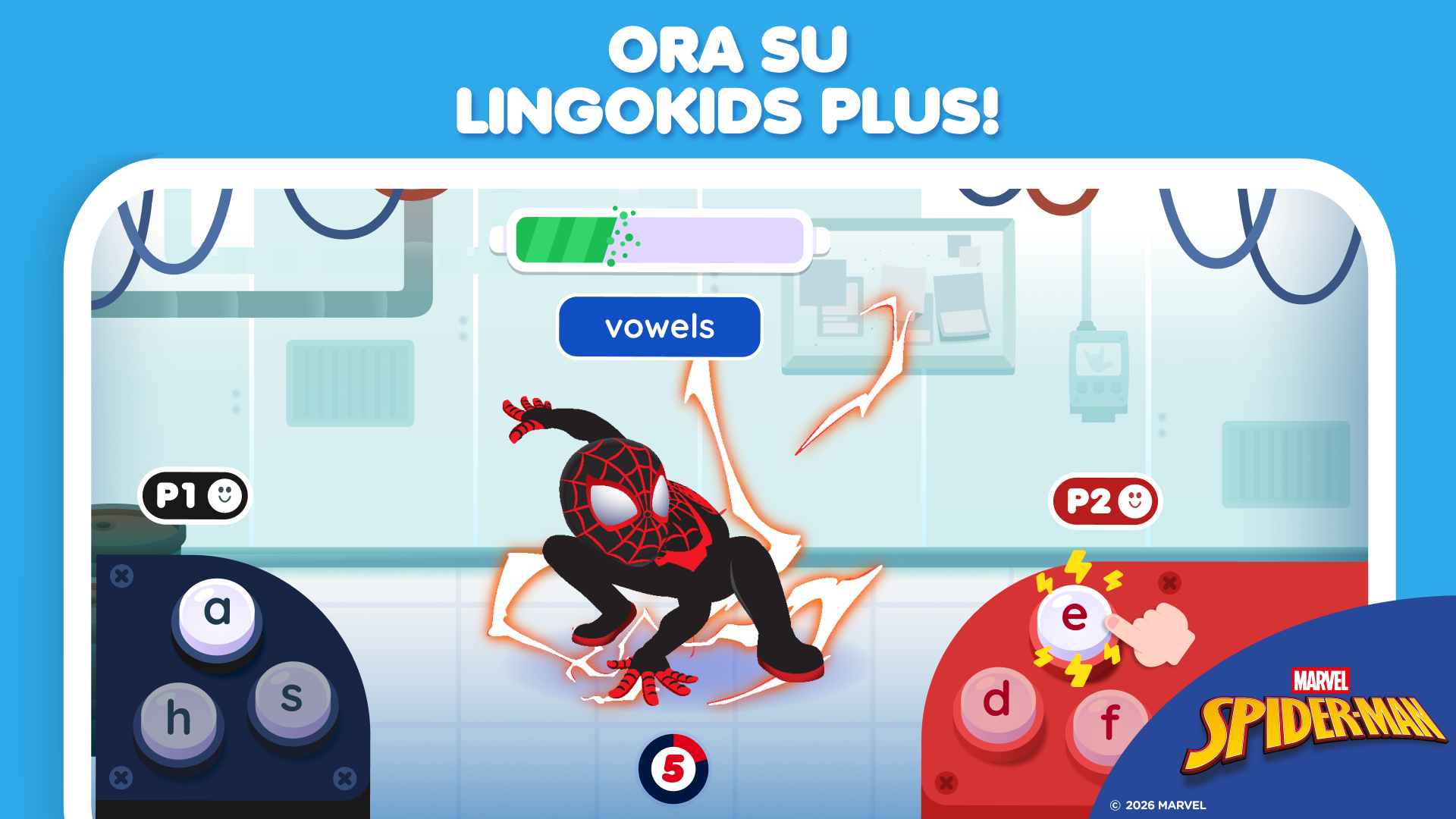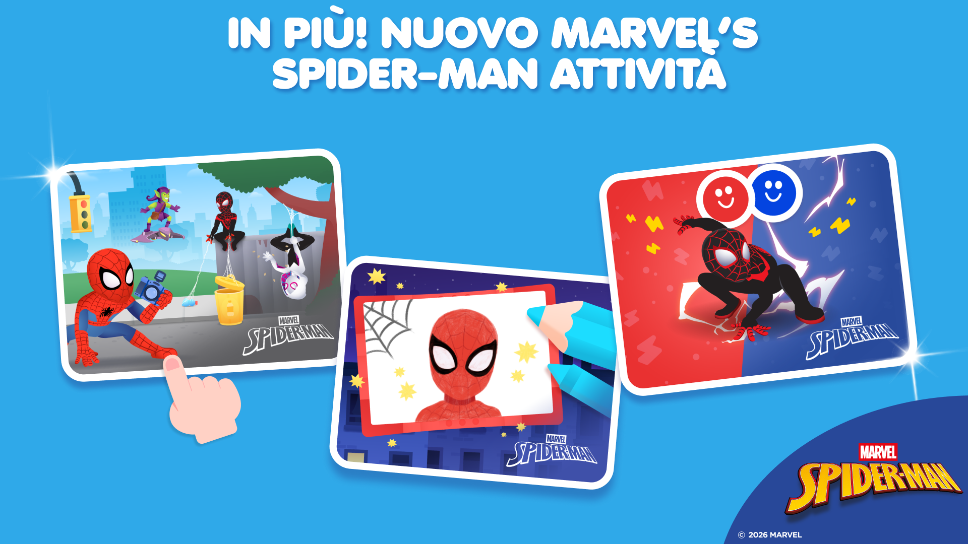 Disney Spider-Man è arrivato su Lingokids! I bambini entrano in azione con sfide di matematica e logica ispirate al mondo di Spidey: risolvere sottrazioni, abbinare forme, riparare cartelli con le lettere, ordinare oggetti ed esercitarsi con le addizioni. Avventure frenetiche che costruiscono fiducia, lavoro di squadra e capacità di problem-solving attraverso il gioco.