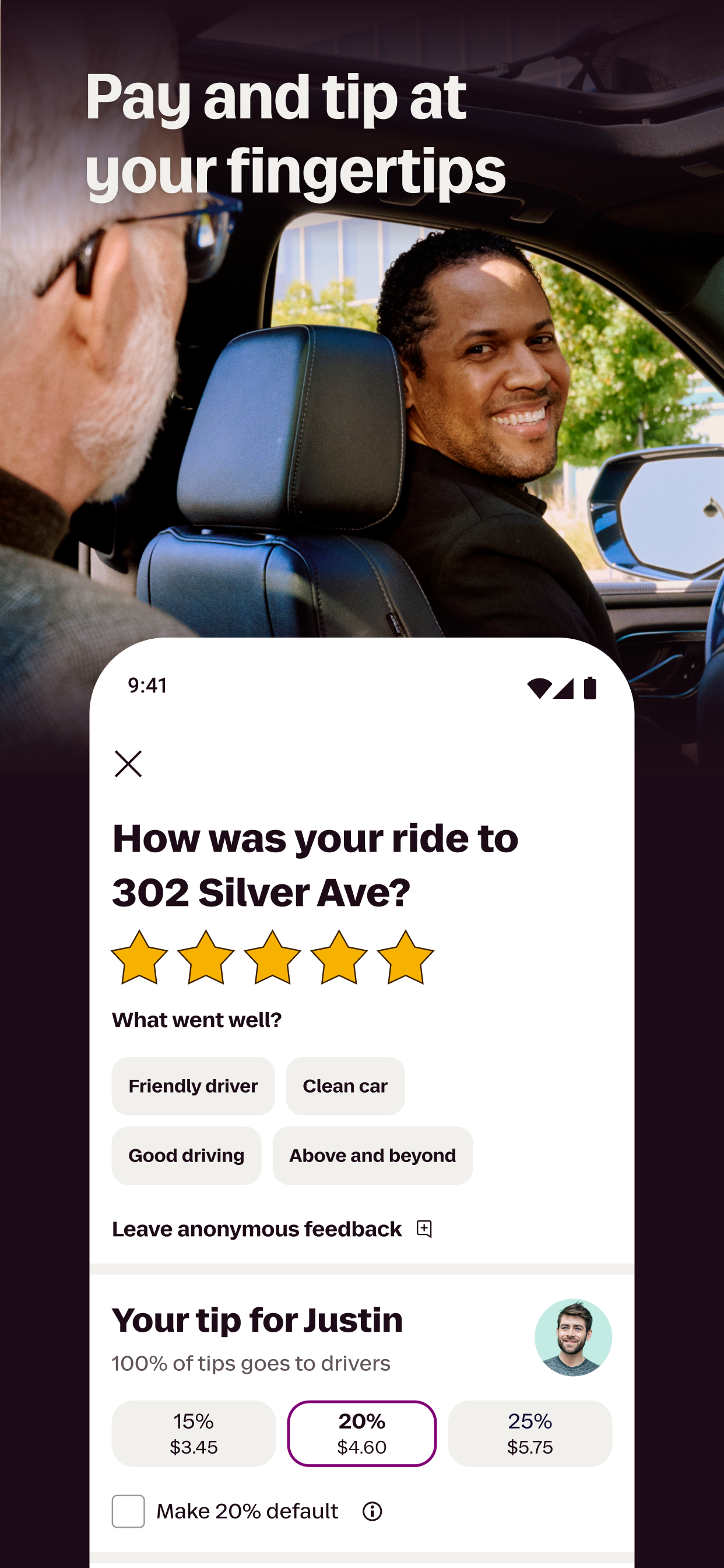Vai dove vuoi con Lyft. Sia che tu stia prendendo un volo, uscendo per la notte, recandoti in ufficio o facendo commissioni in fretta, l'app Lyft ti offre diversi modi per arrivarci. FACILE DA USARE Inserisci la tua destinazione. Visualizza in anticipo il tuo percorso e il costo della corsa. Scegli Ritiro prioritario per iniziare subito. Boom. Fatto. Semplice SCEGLI LE TUE RUOTE Scegli tra Wait & Save, Priority Pickup, Bikes & Scooters, Lyft XL, Lyft Lux, Transit o persino Rentals. CORSE CONVENIENTI La nostra opzione Wait & Save ti aiuta a viaggiare spendendo meno. E puoi anche trovare i percorsi di trasporto pubblico più veloci. * I tipi di corsa Lyft possono variare in base alla regione. Controlla l'app per vedere cosa è disponibile nella tua città. — I prezzi variano in base alle condizioni di mercato. Scaricando l'app, accetti di consentire a Lyft di raccogliere le impostazioni della lingua del tuo dispositivo.