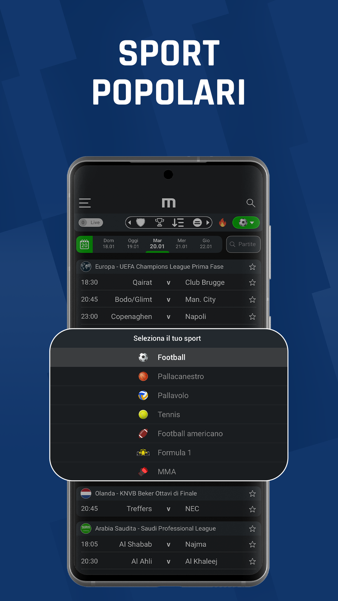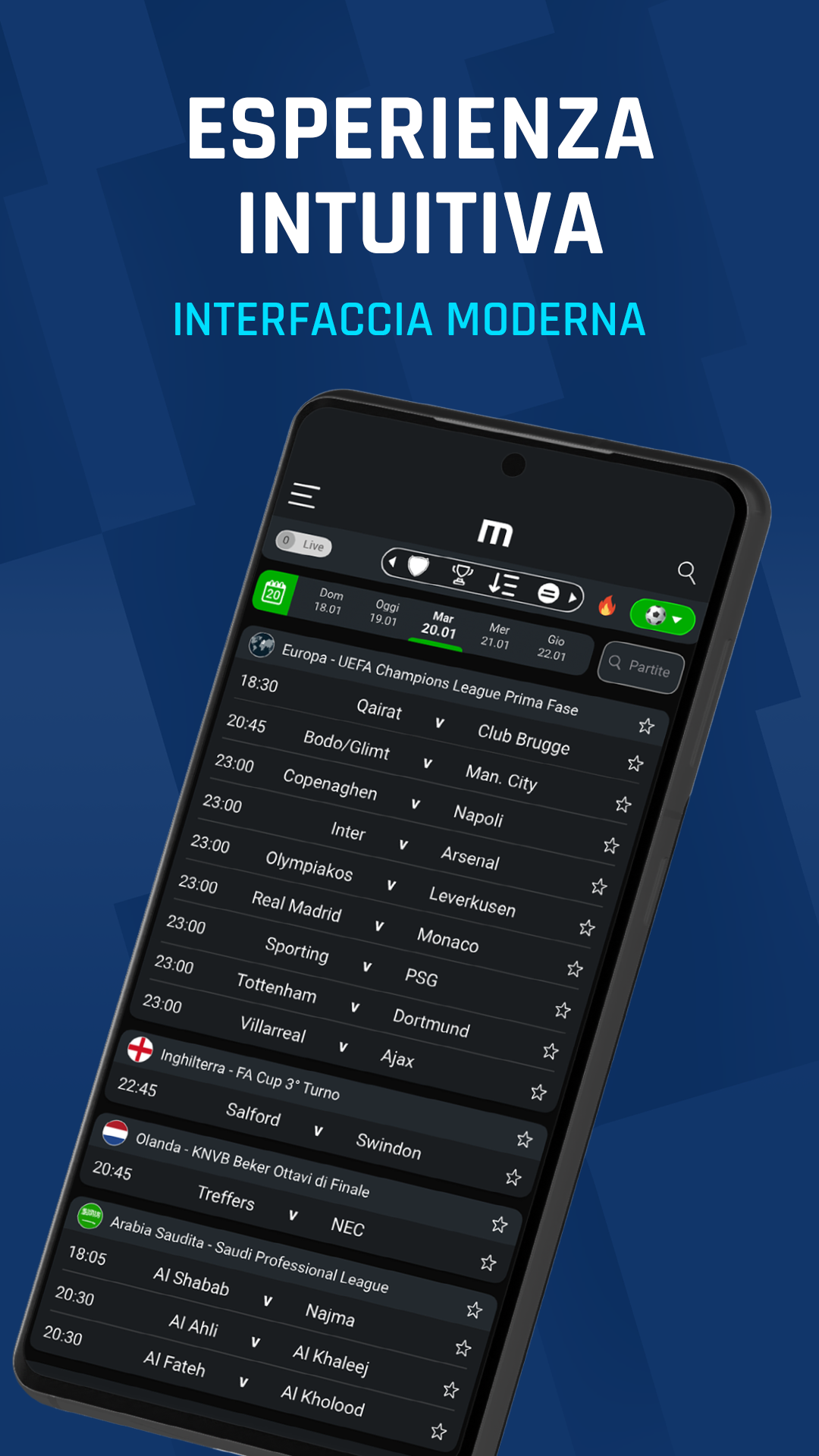 Dai creatori di Mackolik, l'applicazione sportiva leader in Turchia con oltre 10 milioni di utenti, vi presentiamo la nostra applicazione per i punteggi in diretta: M Scores! Disponibile in 15 lingue, M Scores fornisce ai suoi utenti i risultati live dettagliati e veloci, con notifiche rapide e statistiche comparative. Scopri gratuitamente le formazioni delle squadre, i punteggi in diretta, i risultati delle partite, i calendari, le valutazioni, le statistiche delle squadre e dei giocatori di migliaia di campionati e tornei di calcio, basket, pallavolo, tennis e F1. NOTIFICHE IN DIRETTA RAPIDE E AFFIDABILI Ricevi le ultime notizie sulle partite non appena la palla attraversa la linea. Gli avvisi di promemoria per i risultati prima della partita, del calcio d'inizio, dell'intervallo e finali arriveranno sul tuo cellulare con notifiche push istantanee. DAI IMPORTANZA A CIÒ CHE CONTA PER TE Con M Scores, diamo priorità ai campionati locali in modo che tu possa vedere prima di tutto ciò che vi interessa. Per esempio: Se l'utente si trova in Spagna, i campionati e i tornei locali della Spagna avranno la priorità e verranno mostrati per primi. Lo stesso vale per gli utenti di altre parti del mondo. SCEGLI LE TUE SQUADRE E I TUOIGIOCATORI PREFERITI Con M Scores puoi seguire da vicino le tue squadre preferite e le loro partite. Riceverai immediatamente le notifiche sui gol, i cartellini rossi, i punteggi del primo tempo e quelli del secondo tempo. Puoi anche scegliere i tuoi giocatori preferiti e ricevere notifiche su di loro. Se sono nelle formazioni iniziali delle rispettive partite, o segnano dei gol, riceverai una notifica come STATISTICHE DETTAGLIATE, FORMAZIONI E TABELLE LIVE Accedi facilmente a statistiche dettagliate prima, durante e dopo la partita. Visualizza le formazioni delle squadre di campionati e tornei importanti come Premier League, Liga, Bundesliga, Serie A, Ligue 1, UEFA Champions League, UEFA Europa League, Coppa del Mondo FIFA, Campionato europeo UEFA, UEFA Nations League. Attraverso la "Tabella live", è possibile seguire le posizioni delle squadre nei rispettivi campionati e tornei mentre i punteggi cambiano simultaneamente. CONFRONTI TRA SQUADRE Visualizza e confronta diverse statistiche come gli ultimi incontri tra gli avversari, la loro forma, i risultati in casa e in trasferta. PAGINE DI PROFILO DEI GIOCATORI Con le nostre pagine informative sui giocatori, puoi dare un'occhiata alla loro carriera e conoscerli meglio. COMMENTO IN DIRETTA Non perderti le partite che non potete vedere. Segui le partite in modo approfondito con le schede di commento in diretta nelle pagine delle partite. FORUM DEI PUNTEGGI Condividi le tue emozioni sul forum M Scores. È possibile mettere "Mi piace" e rispondere ai commenti degli altri utenti. Potete anche iscrivervi al forum con i vostri account Google o Facebook. BASKET, PALLAVOLO, TENNIS, FOOTBALL AMERICANO, MMA, F1 Con M Scores, puoi ottenere i risultati in diretta di basket, pallavolo, tennis, football americano e MMA con la stessa velocità del calcio! Segui gli eventi con la nostra interfaccia facile da usare. Con F1, vivrai un'esperienza di gara coinvolgente grazie al nostro radar e alle schermate di cronometraggio in diretta.