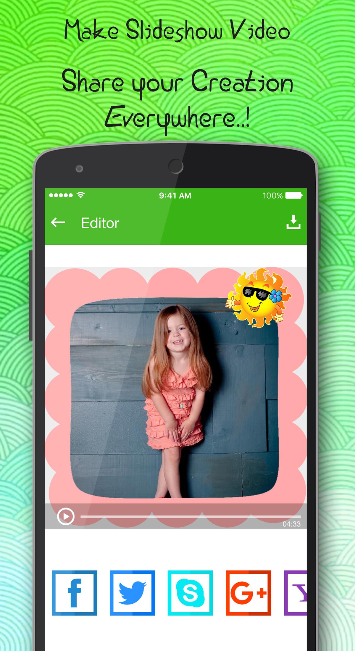 Video Editor & Music Video Maker is the easiest way to create, edit and share amazing music videos, slideshows and stories with your photos, videos and free licensed music Create a video in slide show style with your photos, music and animation. Create Video Stories from images and music with Photo Video Maker. Incredibly easy to use, yet highly powerful and has many options to customize and make it personal. Arrange the photos in order with the perfect background, music and animation to create a video of your own. Photo Video Maker with Music is the easiest way to create, edit and share amazing music videos, slideshows and stories with your photos, videos and free licensed music. With several steps, selecting photos, adding filters, text and music, instantly finish your own video. With this video maker, you can create amazing videos, as birthday/wedding surprises or for other special occasions, celebrations, and festivals. You can also share your movies easily to your Social media app account with our 15-second themes specially designed for the popular social platform, or save an unfinished project in My Drafts if you want to edit or finish it later. With Video Maker, you can: - Shoot, save and share short videos up to 30 seconds long. - Edit videos with creative effects and filters - Discover exciting new music and artists. - Save videos privately so only you can see them. Top Key features: 1) Portrait or landscape mode: The first slideshow and movie creator that lets you create slideshows or videos in portrait or landscape mode. 2) Smart face detection: Detects the subjects’ faces in the photo and sets them on the center of your chosen template automatically. 3) Inspiration page: Get inspired by the newly-featured mini-movies uploaded in Social Media App. 4) Moments: Instantly creates daily and weekly video memories with this instant video maker. You can edit, save, and share them anytime. 5) Mixed theme: Combine different themes in one movie with a maximum playback of 5 minutes. 6) Cloud-based photo support: Grab photos from Social Media App to create your mini-movie. 7) Share via social media platforms: Share stunning videos to popular social media sites. 8) Themes: Select the perfect theme for the occasion from our library of professionally-made themes, including themes specially designed for Instagram that runs for 15 seconds. 9) Preview page: With this handy video editor, you can get instant previews of the edits you’ve made to the photos, whether they be adjusting the photo order, changing the focus, replacing the photos, adding/changing music, or editing subtitles on the slides. 10) Edit order & focus: Rearrange the order of the photos and adjust the focal point of the displayed area. 11) Background music: Select background music from our preloaded music library or from an external source. Edit the length of the music and apply to your movie/slideshow. 12) Edit subtitle: As a video editor, you can add meaningful or heartwarming notes and texts, and edit the date of your slideshow. 13) My drafts: Save an unfinished project as a draft if you want to edit or finish it later. You can continue editing your projects via My drafts on the home screen. 14) Treasure Store: Get the latest themes, slideshow effects, and music contents right here. 15) More photo selection options: Create movies of up to 100 photos for any devices. This apps are same characteristic of below apps. ► Photo Video Maker with Music ► Photo to Video Maker ► Slideshow Maker ► Photo Video Editor & Maker ► Photo and Video Collage Maker ► Photo and Video Editor ► Photo Booth and Funny Effects Video ► Mega Photo for Video and Picture ► Photo Slide Show Maker ► Photo to Video Converter ► Projector Slide Show