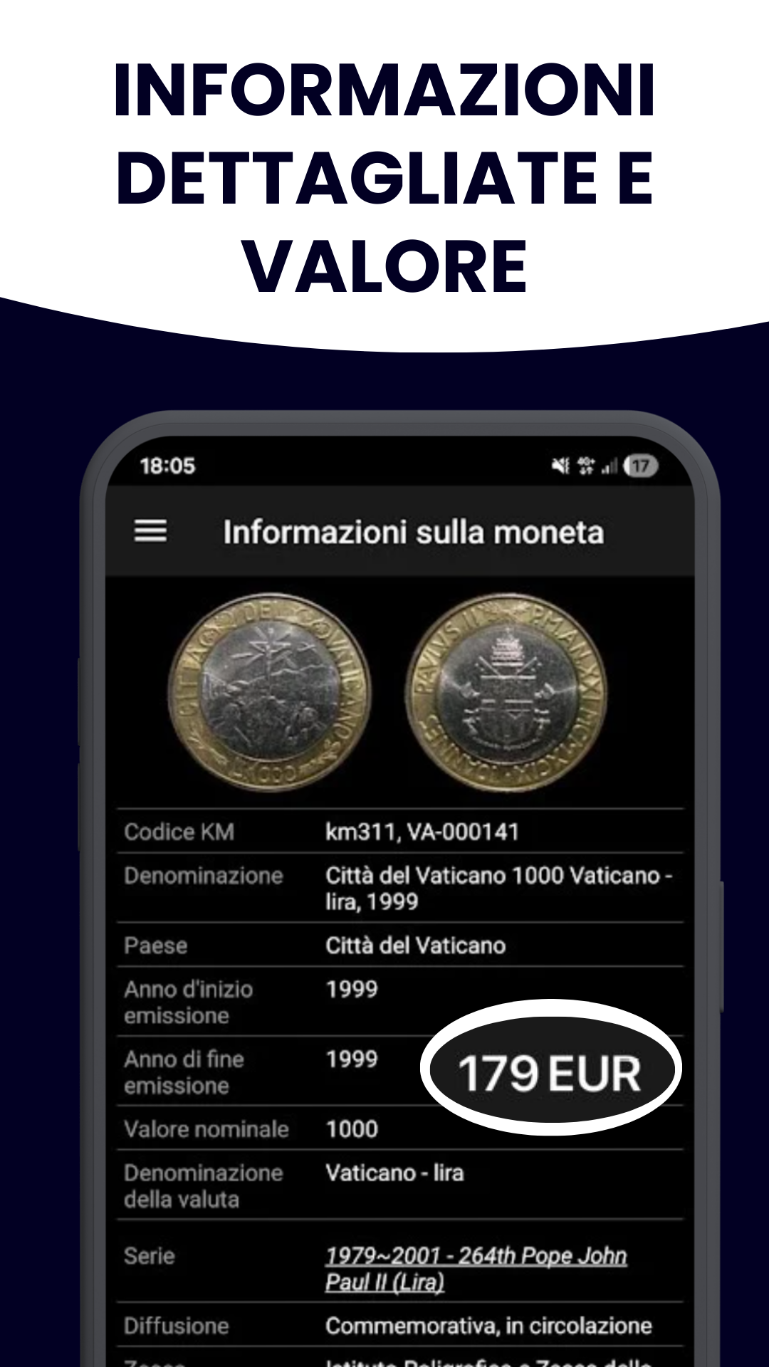 - Consulta gli esperti - puoi ricevere assistenza da numismatici direttamente dall'app