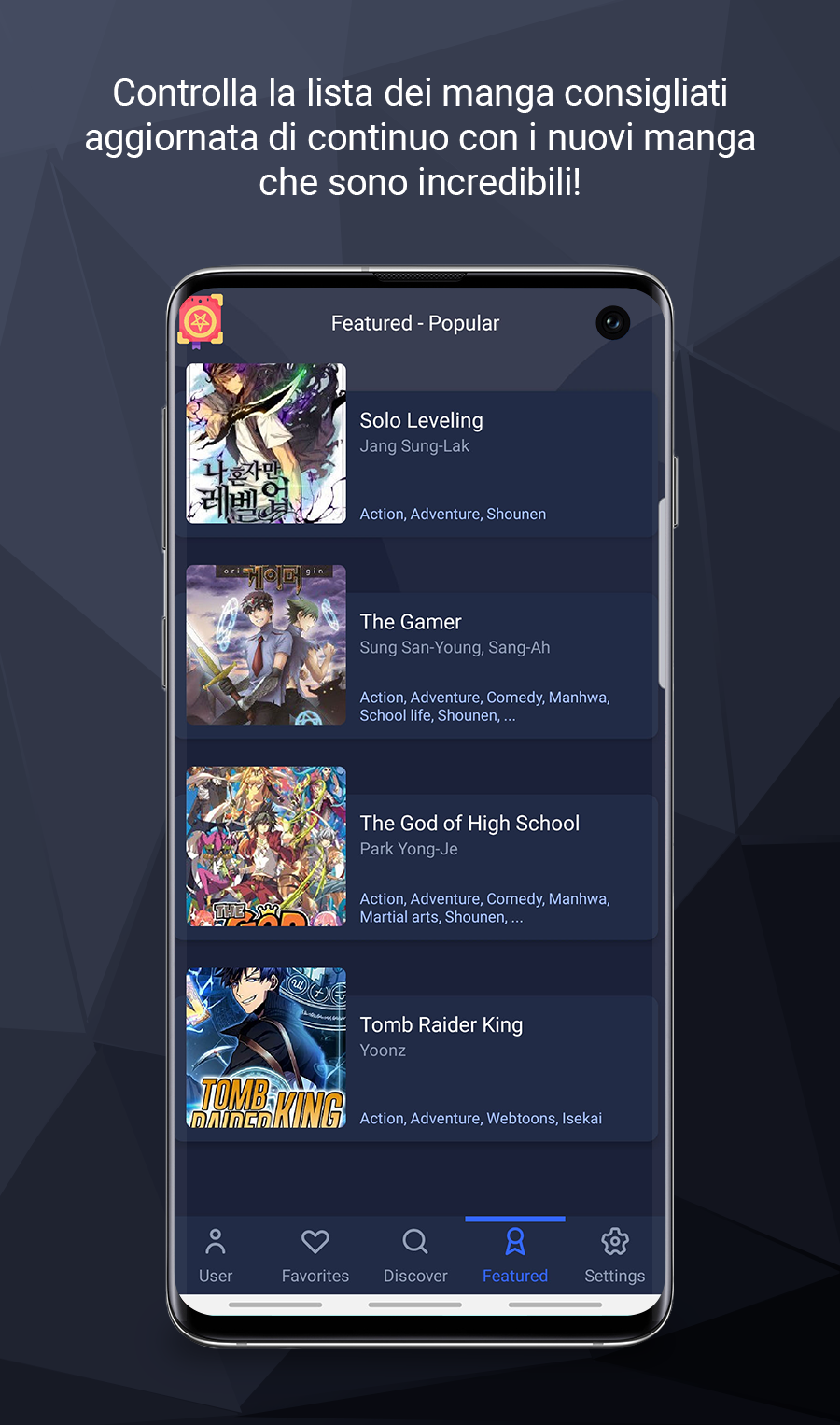 - Lettura offline: scarica i manga che vuoi per leggerli quando vuoi
