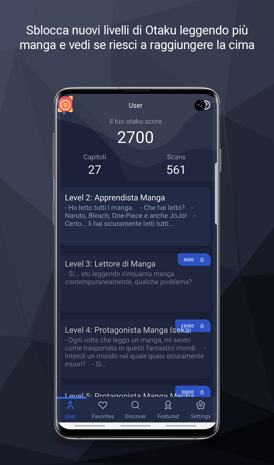 - Otaku level: guadagna punti e nuovi livelli leggendo manga! la nostra funzione unica