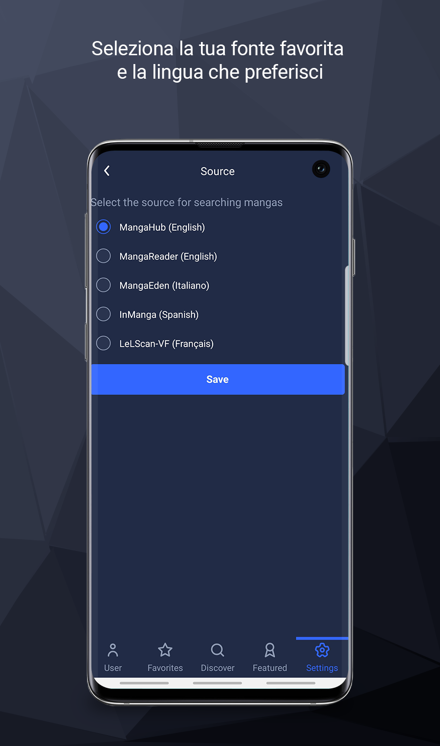Seleziona la fonte e inizia a leggere i tuoi manga preferiti, tutti i manga e tutti i manhwa dalla fonte selezionata sono disponibili e i capitoli sono sempre aggiornati automaticamente istantaneamente.