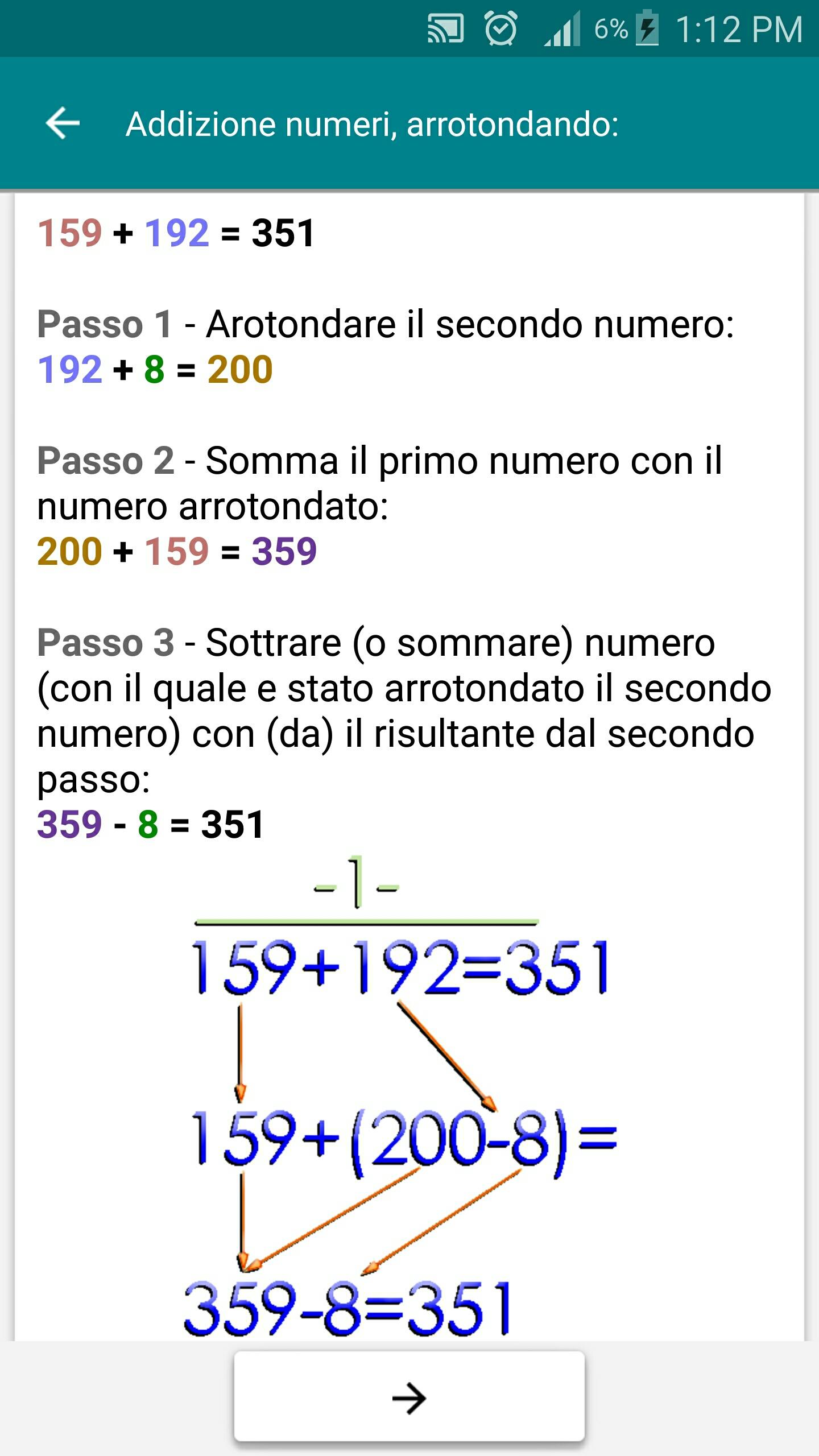 All'inizio le soluzione esempi sembrano complicati, ma dopo aver superato la modalità di allenamento (che mostra chiaramente l'essenza di trucchi matematici), capirete che tutto è molto più facile. E si può giocare con un amico (in modalità a 2 giocatori). Non conoscendo queste tecniche, sarà scioccato da come si risolvono questi esempi (65 * 65, 78 * 11 e così via.) per un paio di secondi. Semplici trucchi matematici : 1. Addizione 2. Sottrazione 3. Tabelline 4. Divisione 5. Moltiplicare numero di due cifre da 11 6. Quadrati dei numeri che terminano in 5 7. Moltiplicare per 5 8. Moltiplicare per 9 9. Moltiplicare per 4 10. Dividere per 5 11. Sottrarre da 1000 12. Moltiplicazione complicate 13. Potenza di due 14. Addizione numeri, arrotondando 15. Sottrazione numeri, arrotondando 16. Moltiplicare i numeri tra 11 e 19 17. Quadrati dei numeri compresi tra 11 e 99 18. Moltiplicare numeri a due cifre che hanno la stessa cifra delle decine e le cifre che si sommano a 10 19. Quadrati dei numeri compresi tra 50 e 59 20. Quadrati dei numeri compresi tra 40 e 49 21. Moltiplicare numeri a due cifre che terminano in 1 22. Percentuale 23. Quadrati dei numeri compresi tra 100 e 109 The app uses the following APIs and libraries: * MPAndroidChart - created by Philipp Jahoda * ColorPIcker - created by Piotr Adamus