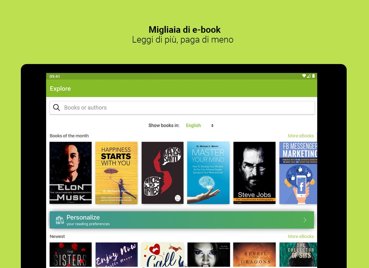 • Completamente senza pubblicità: goditi i libri senza distrazioni.