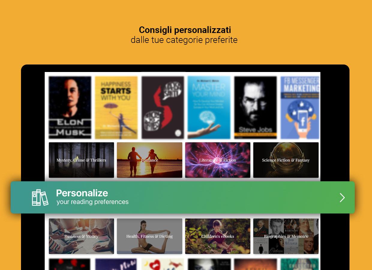 2. Alla ricerca di ispirazione e consigli di lettura? Scegli le tue categorie di lettura preferite e ti consigliamo centinaia di titoli entusiasmanti solo per i tuoi gusti.