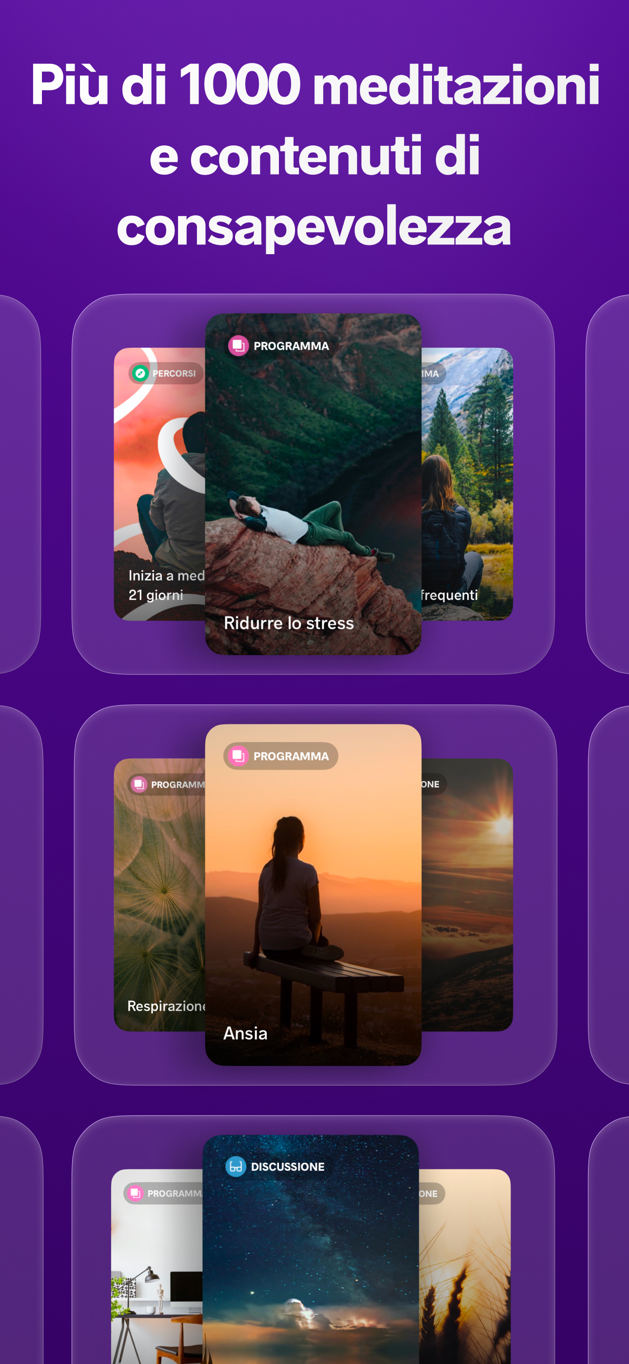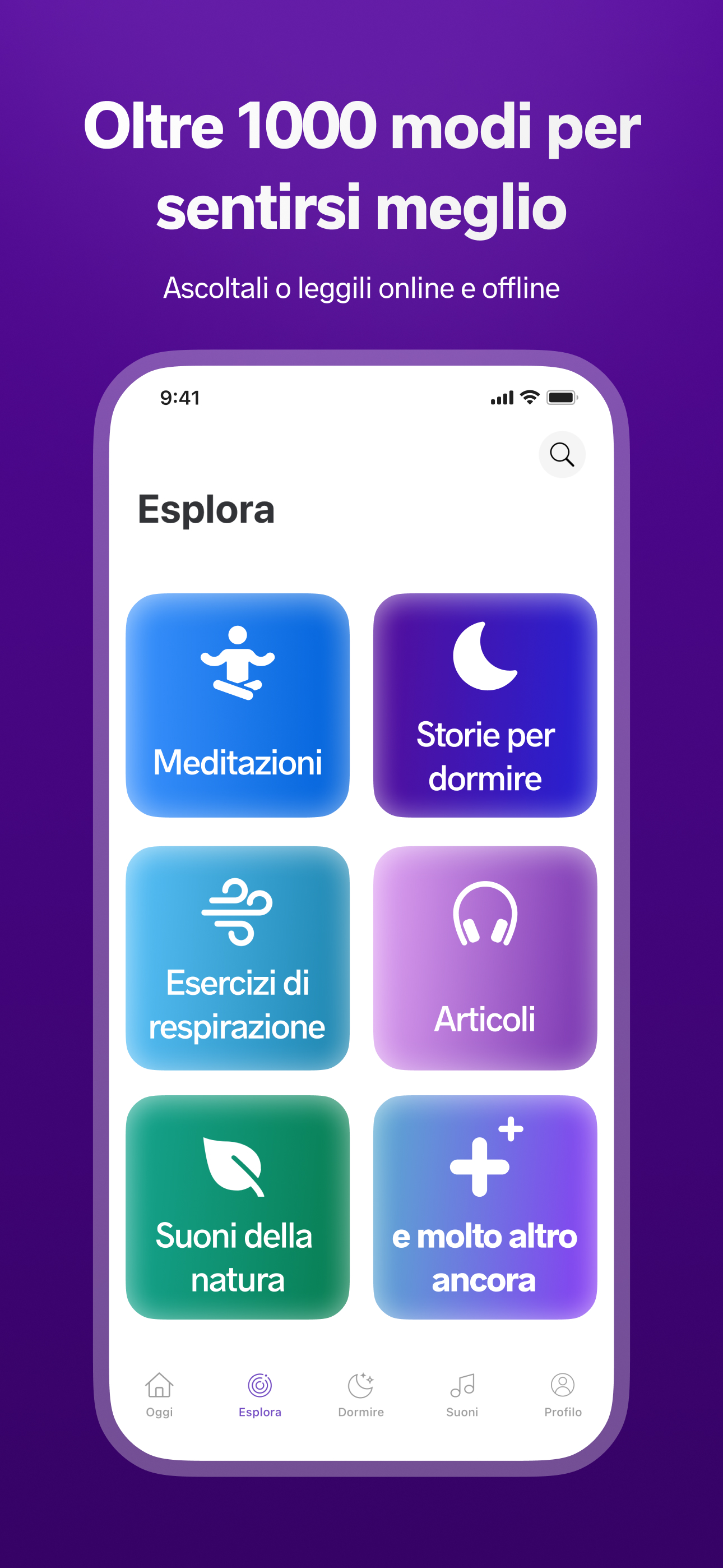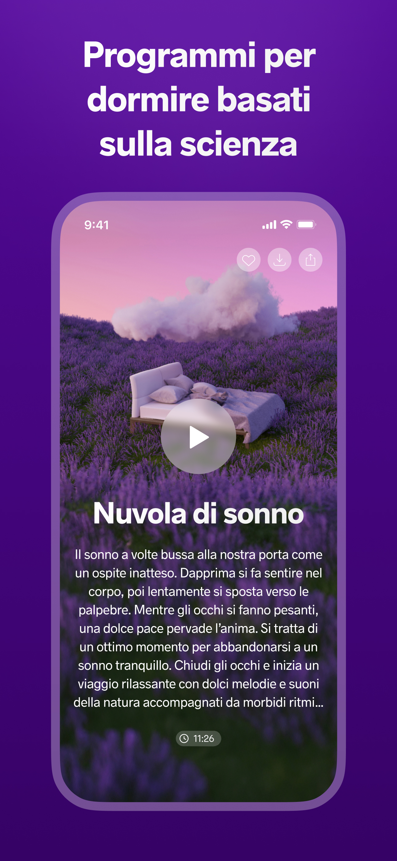 Con centinaia di app per la meditazione e mindfulness tra cui scegliere, cosa rende Meditopia così speciale? A differenza della maggior parte delle altre opzioni, Meditopia è molto più di una soluzione a breve termine per addormentarsi e scaricare lo stress: offriamo ad ogni membro oltre 1000 meditazioni profonde, dedicate esattamente agli aspetti che ciascuno di noi è chiamato ogni giorno ad affrontare come persona, a prescindere dall’età, dal background o dall’esperienza. Disponibili in 12 lingue, queste meditazioni di mindfulness abbracciano l'intera gamma delle esperienze umane: relazioni, aspettative, salute, accettazione, stress, ansia, solitudine, percezione del corpo, sessualità, scopo della vita e sensazione di inadeguatezza. Meditopia non vuole usare la meditazione come un semplice cerotto per ferite che, come ben sappiamo, richiedono una guarigione permanente. Il nostro obiettivo è creare un “santuario” in cui chiunque possa attingere alla guida e agli strumenti necessari per sviluppare la resilienza mentale, ritrovare la pace interiore e migliorare la tua salute. Cosa offre Meditopia? Meditazioni per dormire e sonno La qualità del sonno influisce su quasi tutti gli aspetti della vita quotidiana. Allora perché non provare le meditazioni per dormire meglio? Scegli tra oltre 30 meditazioni sul sonno per imparare nuove tecniche ed esercizi di respirazione e di visualizzazione, da praticare in modo continuativo per il resto della vita e riscoprire il piacere di dormire. Puoi anche rilassarti prima di andare a letto con i nostri suoni naturali, le registrazioni di rumori bianchi e altri contenuti di consapevolezza e mindfulness. Storie della buonanotte Le favole della buonanotte non sono solo per i bambini! Mentre ti infili sotto le coperte del tuo letto caldo e accogliente, lasciati cullare dal nostro ampio assortimento di storie della buonanotte. Dalle favole e ai racconti d’avventura ambientati nei più svariati angoli del mondo, non potrai che sentirti coinvolto in queste storie vivide e rassicuranti. Dopotutto, alla fine di una lunga giornata, meriti anche tu di abbandonarti dolcemente a un mondo di sogni e riposo. Funzioni principali: Oltre 250 meditazioni guidate Modalità notturna Rumori bianchi (white noise) Citazioni quotidiane per ritrovare motivazione e ispirazione Possibilità di prendere appunti personali per tenere traccia dei tuoi progressi Barometro della consapevolezza per una panoramica immediata delle tue statistiche Sfide interne alla app per mettersi alla prova e confrontarsi con gli amici Promemoria personalizzati per meditare e dormire per migliorare la tua salute Interfaccia di immediata comprensione e orientata all’utente