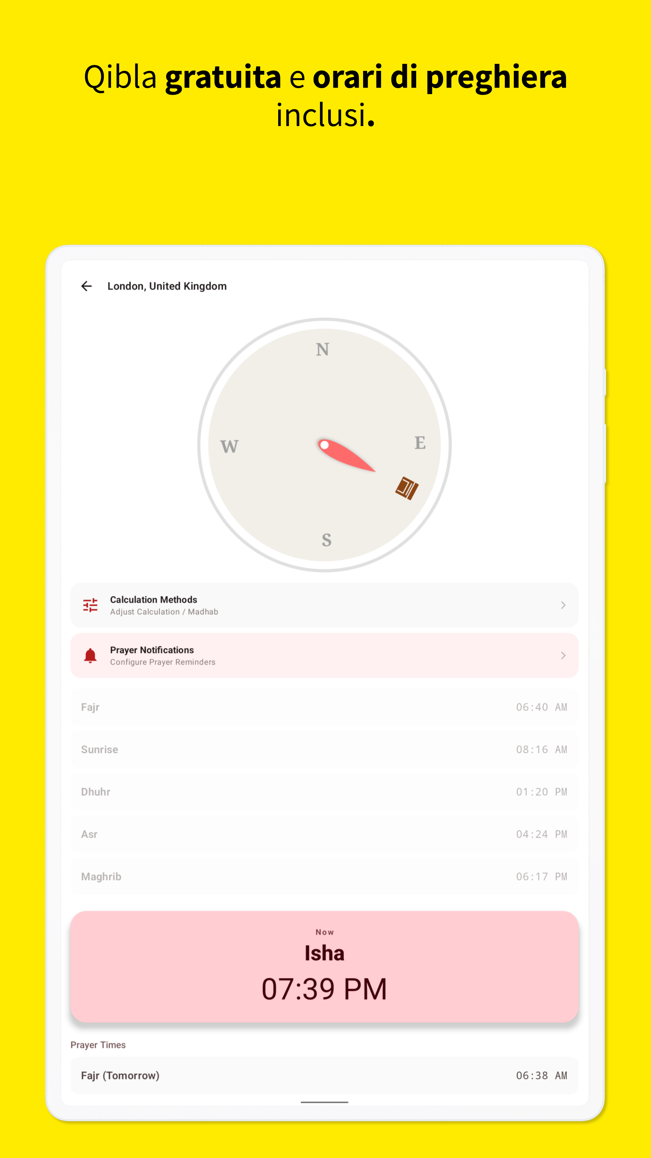 • Mushaf: Supporto Mushaf gratuito con configurazioni come Madani o Tajweed con codice a colori.