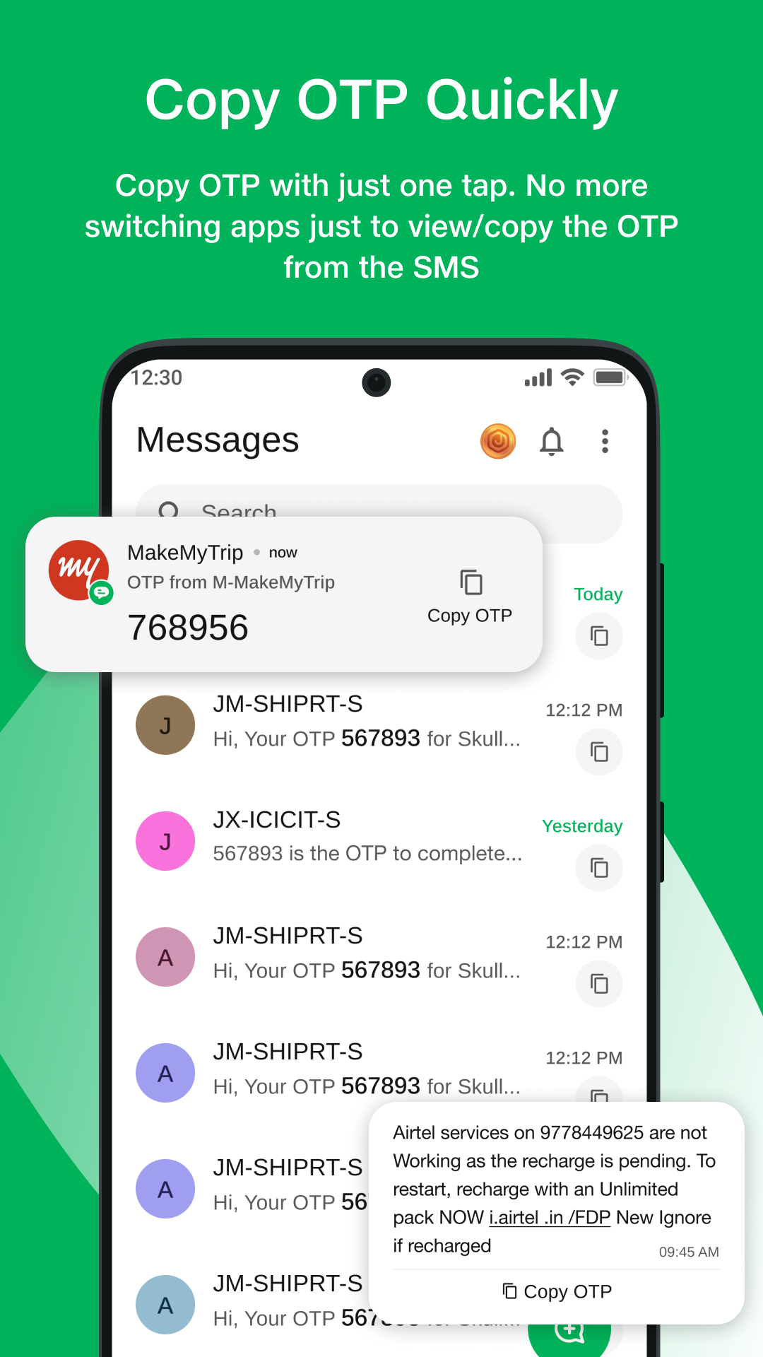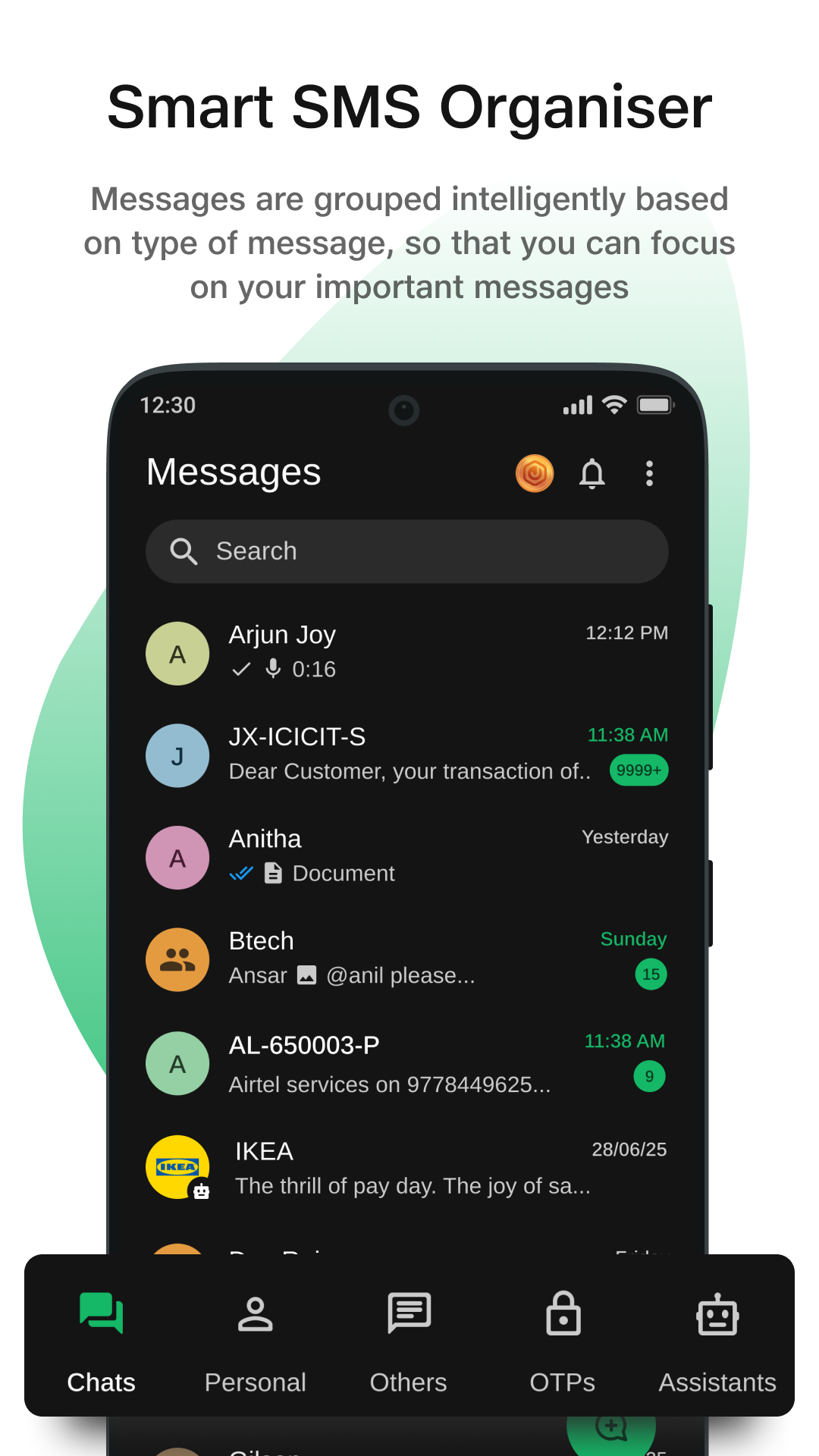 1. Organizzatore intelligente dei messaggi: categorizza automaticamente i messaggi in Personali, OTP, Promozioni e altro per un rapido accesso.