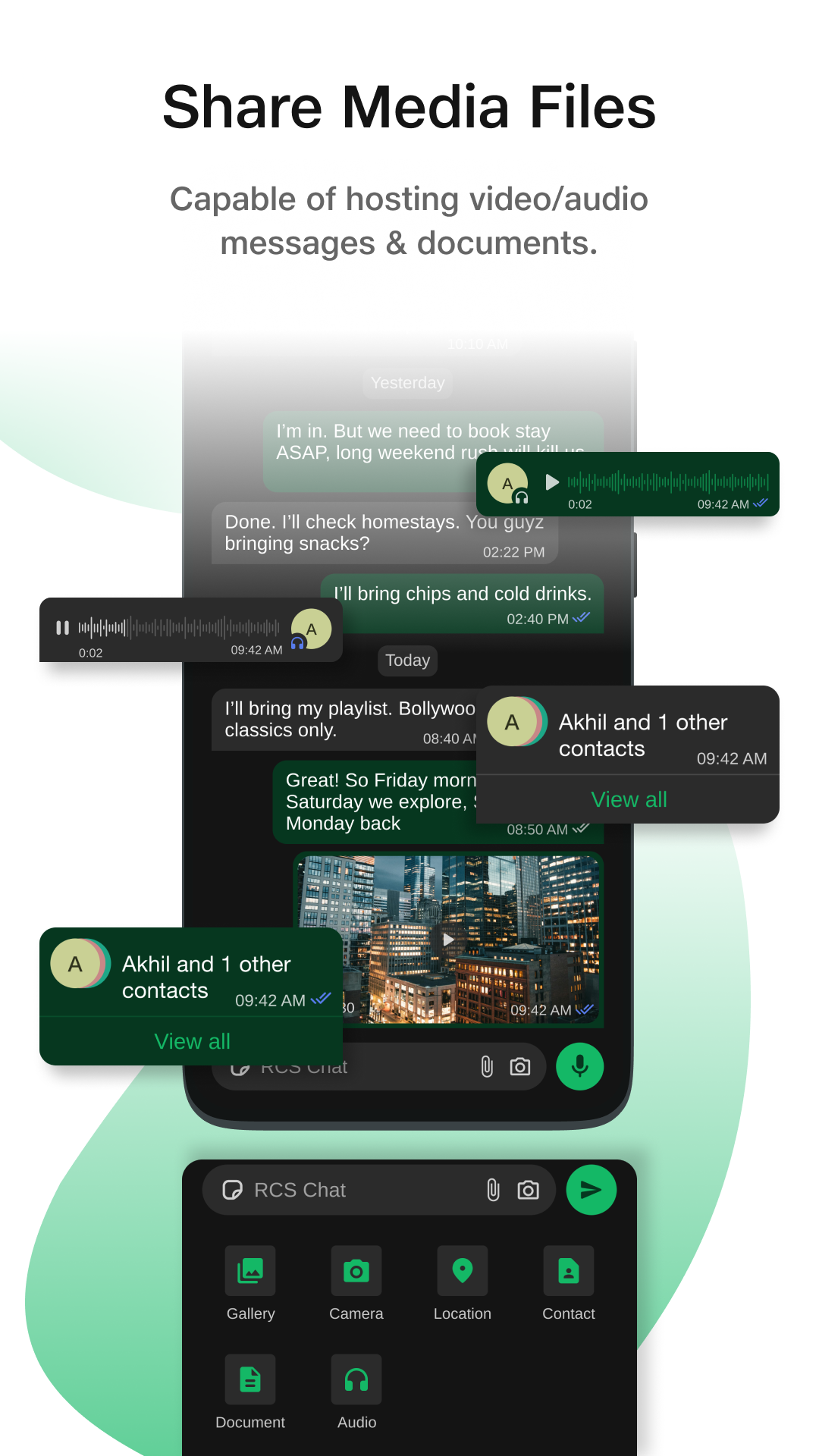 4. Condivisione di contenuti multimediali: invia facilmente foto, video, note audio, file e documenti.