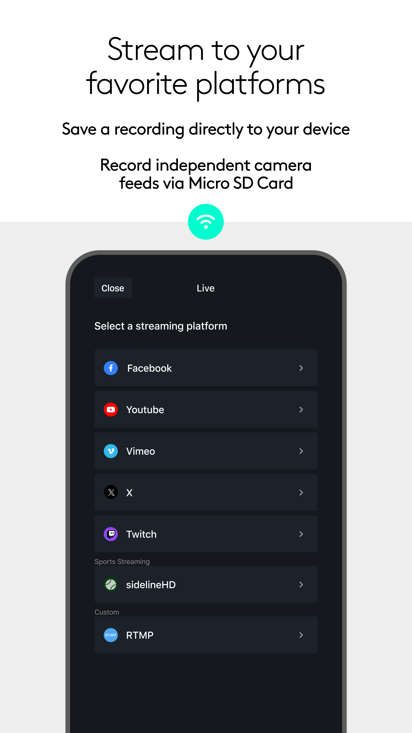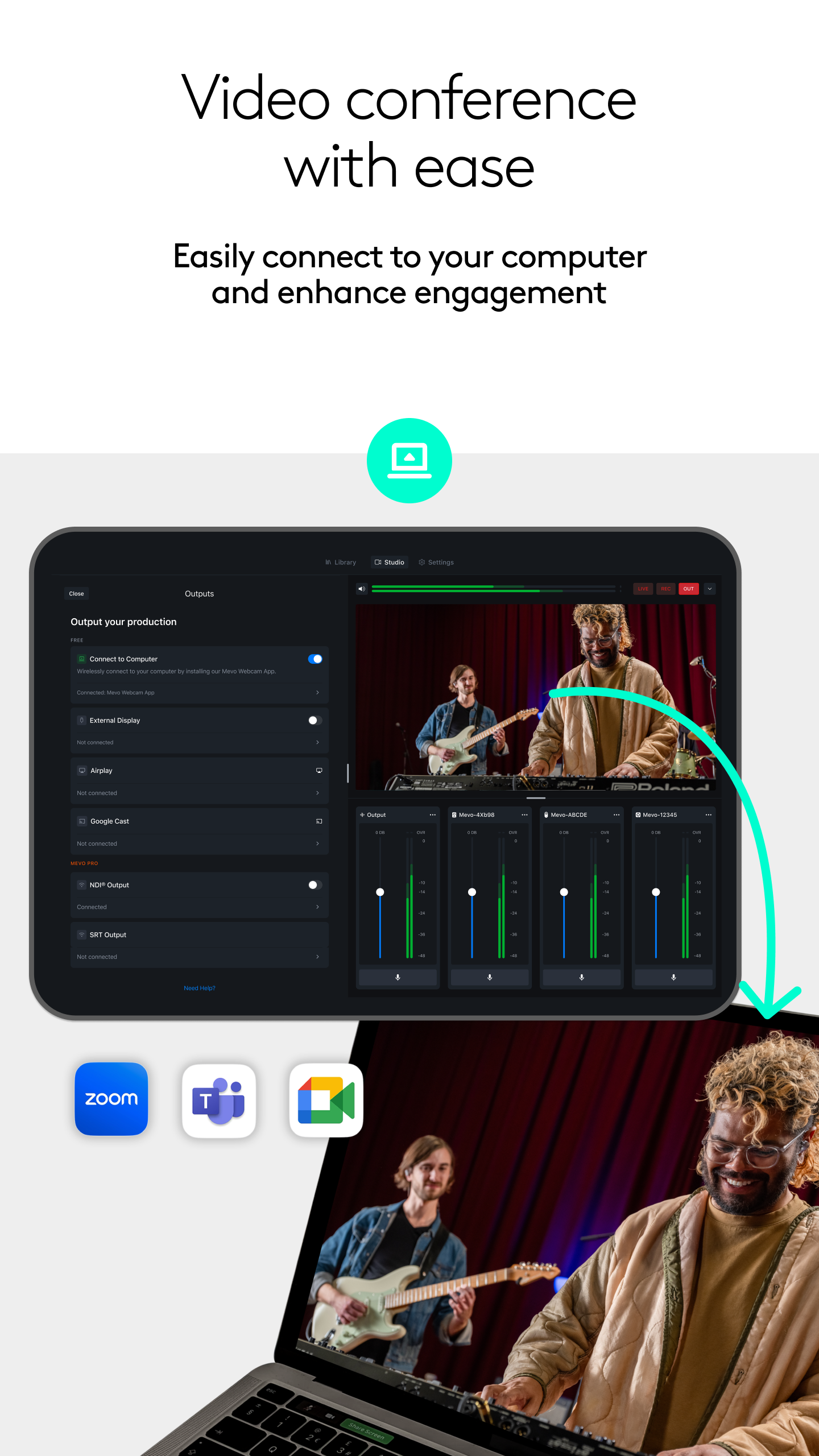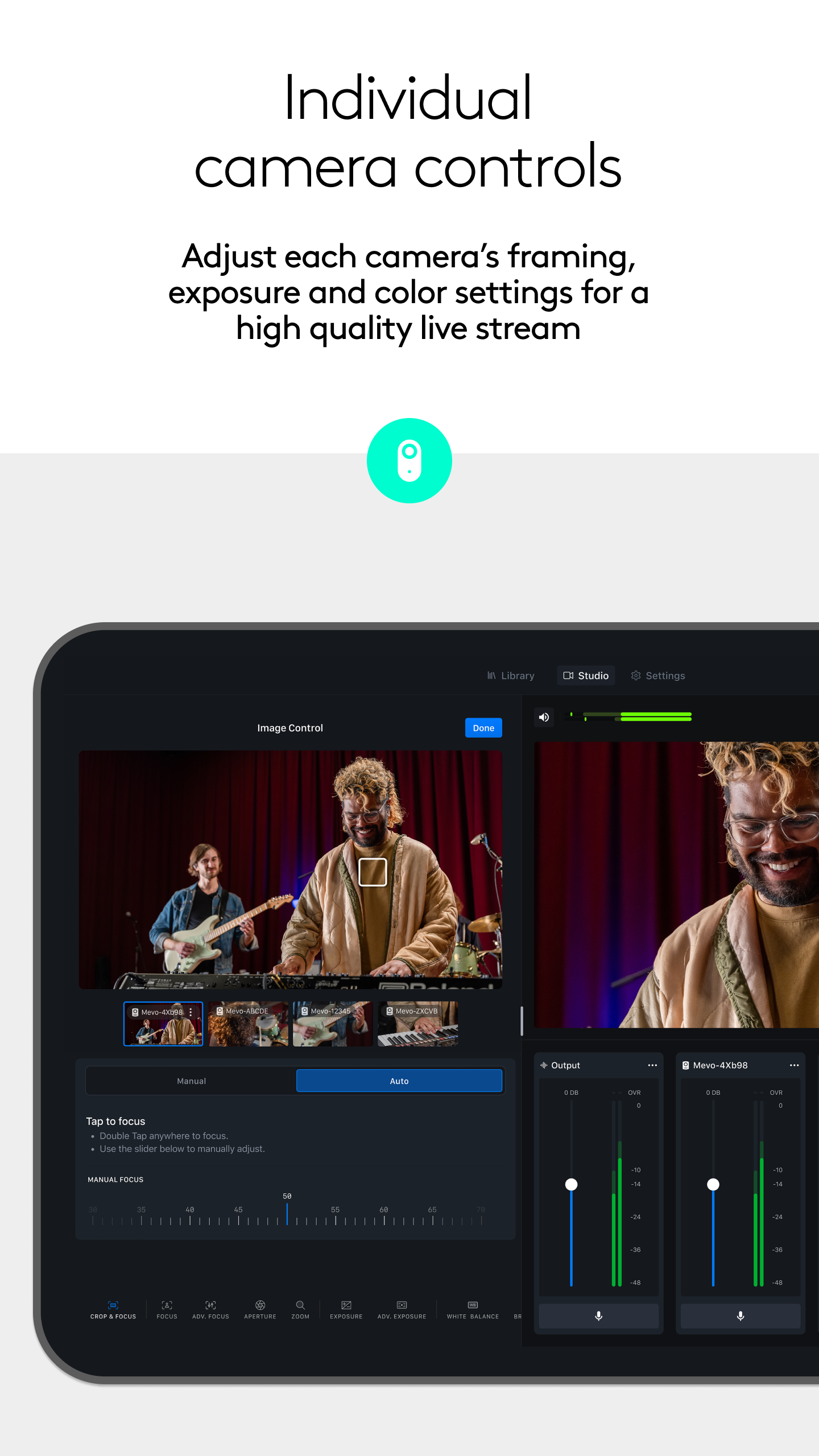 Mevo consente lo streaming live con facilità. Con Mevo Studio, puoi connettere in modalità wireless più sorgenti, tra cui telecamere Mevo Start e Mevo Core, Mevo Go*, dispositivi abilitati NDI* e webcam/UVC*.* Cambia facilmente sorgente, registra in HD 1080p e trasmetti in streaming live su più piattaforme come YouTube, Facebook e molte altre. Passa da una telecamera all'altra in modalità wireless: Controlla in modalità wireless più telecamere Mevo contemporaneamente e passa dall'una all'altra in diretta. Esegui panoramiche, zoom e ritaglia ogni inquadratura della telecamera secondo necessità per un editing al volo. Trasmetti in streaming istantaneamente sulle tue piattaforme preferite: Trasmetti in streaming istantaneamente, con pochi tocchi, su piattaforme popolari come YouTube, Twitter, Twitch e altre ancora. Abbonati a Mevo Pro per il multistreaming.* Registra in HD: Registra l'output del tuo programma localmente sul tuo telefono in Full HD. Registra anche ogni singolo feed della telecamera direttamente sulla scheda microSD locale. Aggiungi contenuti multimediali visivi: Aggiungi grafica personalizzata, inclusi terzi inferiori, bug angolari, conti alla rovescia e presentazioni, oltre a immagini e contenuti multimediali* a schermo intero per aumentare il valore della tua produzione. Crea scene personalizzate: Utilizzando il creatore di scene, aggiungi sorgenti live, grafica o video da utilizzare con un solo tocco. Auto-Director: Attiva l'auto-director e l'app cambierà lo show in tempo reale per te. Mixer audio: Mixa le sorgenti audio in modo indipendente per un suono perfetto. Controllo immagine: Regola le impostazioni di esposizione e colore di ciascuna telecamera Mevo per uno streaming live di alta qualità. Scopri di più da Mevo con l'abbonamento Mevo Pro, che include: Multistream: Grazie alla tecnologia Streamlabs, trasmetti in streaming su più destinazioni utilizzando solo la larghezza di banda di un singolo streaming. Mevo Go: Puoi condividere la telecamera, lo schermo o l'audio di qualsiasi dispositivo mobile direttamente su Mevo Studio. NDI: collega telecamere di terze parti, telecamere o encoder abilitati per NDI HX o esporta Mevo Studio in un flusso di lavoro NDI esistente che potresti già utilizzare. Media: riproduci video, spot pubblicitari o momenti salienti per portare i tuoi contenuti a un livello superiore. Compatibile con Mevo Core, Mevo Start, Mevo Plus, Mevo di prima generazione e le app Mevo Go. Supporto aggiuntivo: Visita help.mevo.com Annotazione: *Richiede l'abbonamento a Mevo Pro