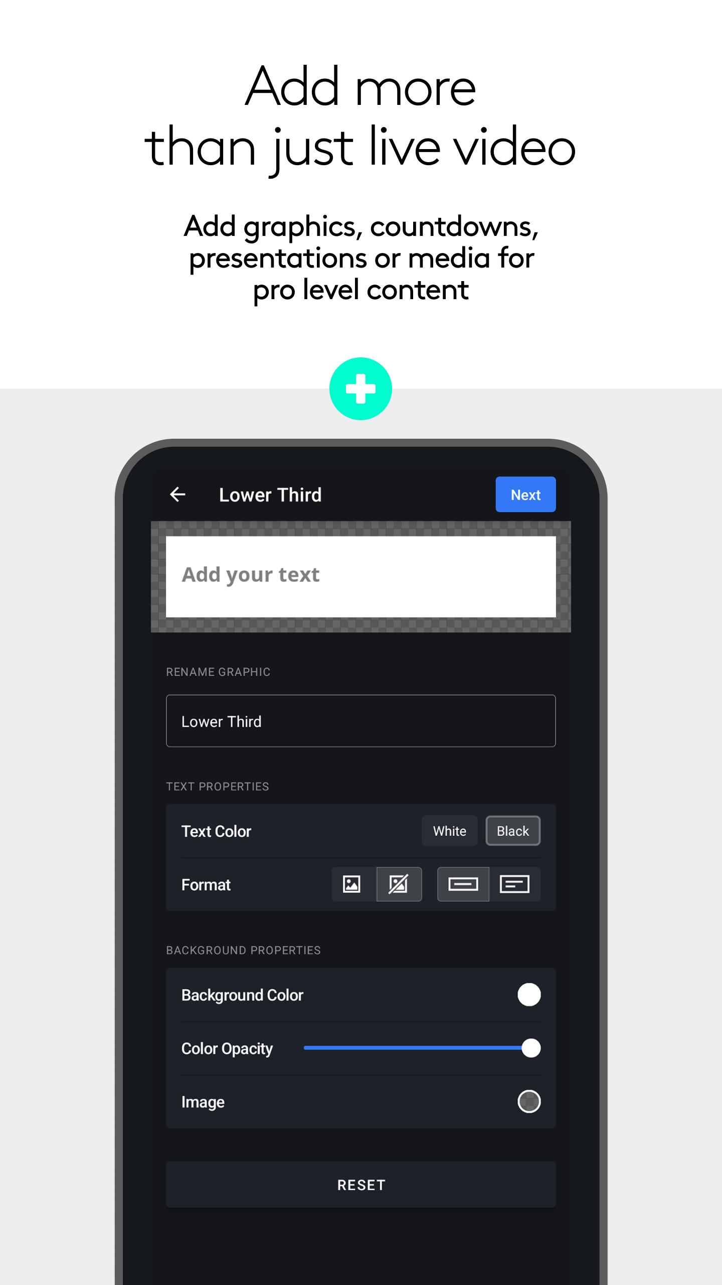 New Library: A home base to manage live sources and other assets to be used within the Studio tab. New Studio: New and improve user experience for streaming and recording content using our new Scene feature. New Scenes: Create multi-layered scenes using live sources, graphics, presentations, countdowns, and media. Resize, position and frame each layer individual to create a unique and professional Scene. Use the Scene settings to define if it functions like Full Screen or Overlay.