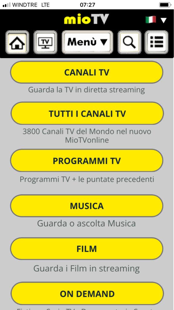 • Nella rubrica MioTV tutti i collegamenti a rete ufficiali per guardare: