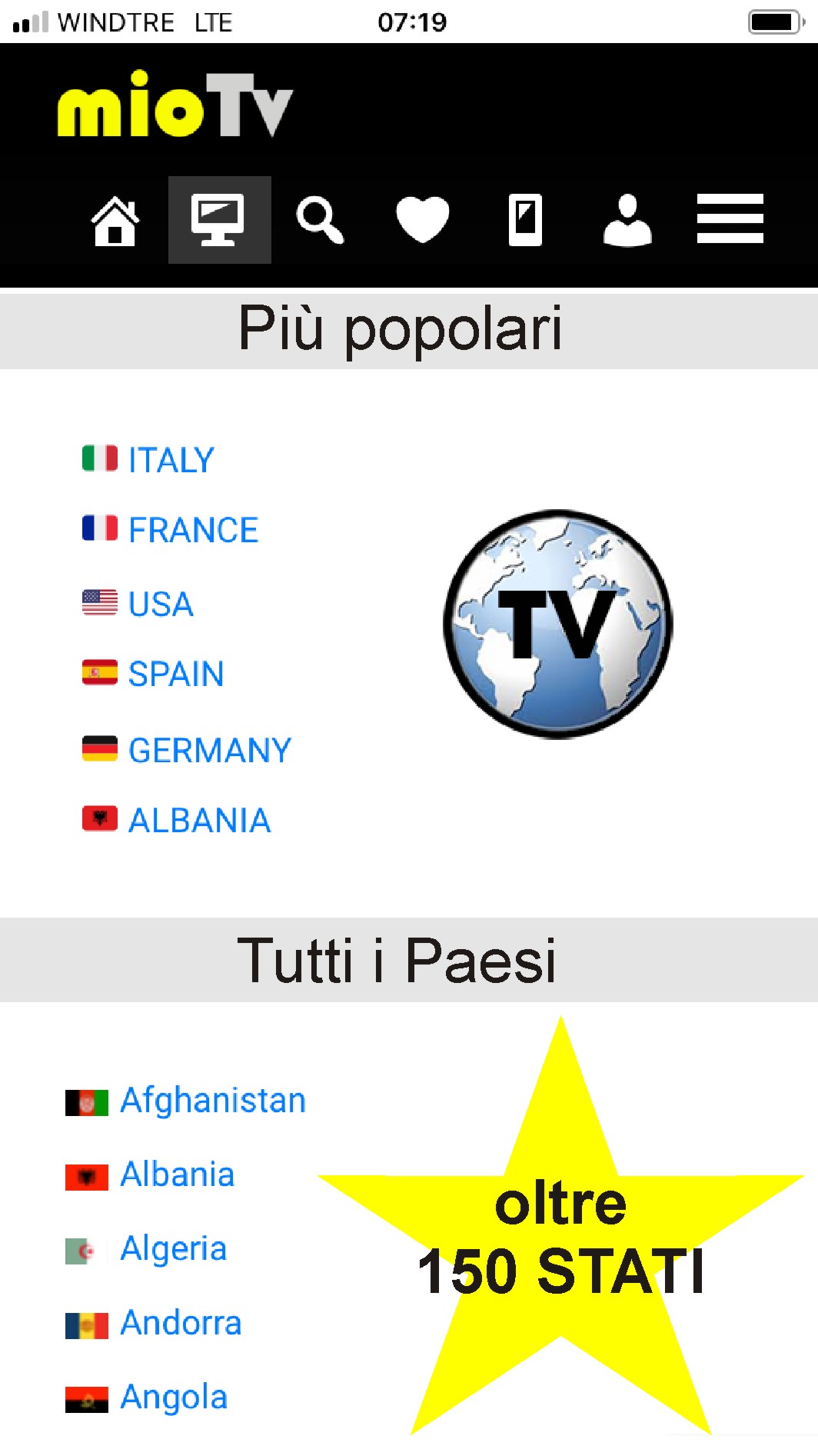 - MioTV viene utilizzata in 208 Stati del mondo, i 10 stati più attivi: