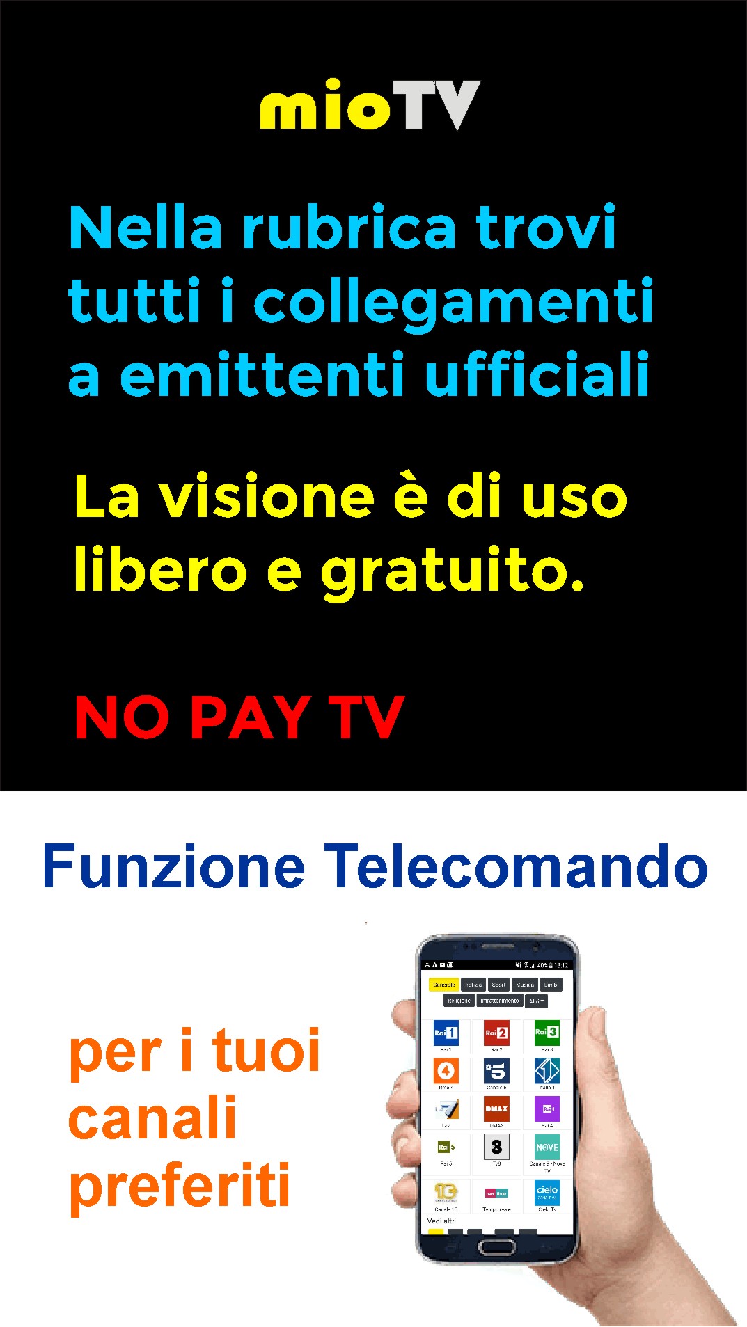 Il servizio offerto da MioTv è completamente gratuito sia per gli utenti che per le emittenti.