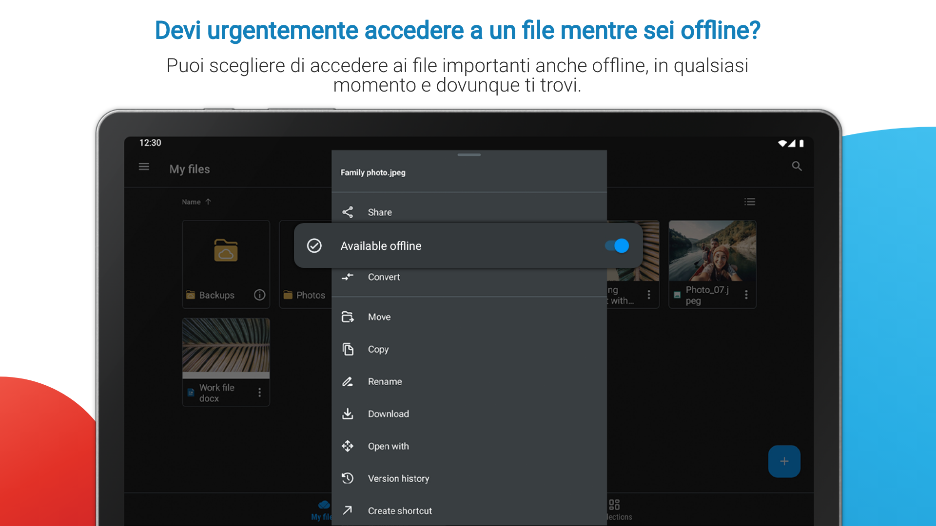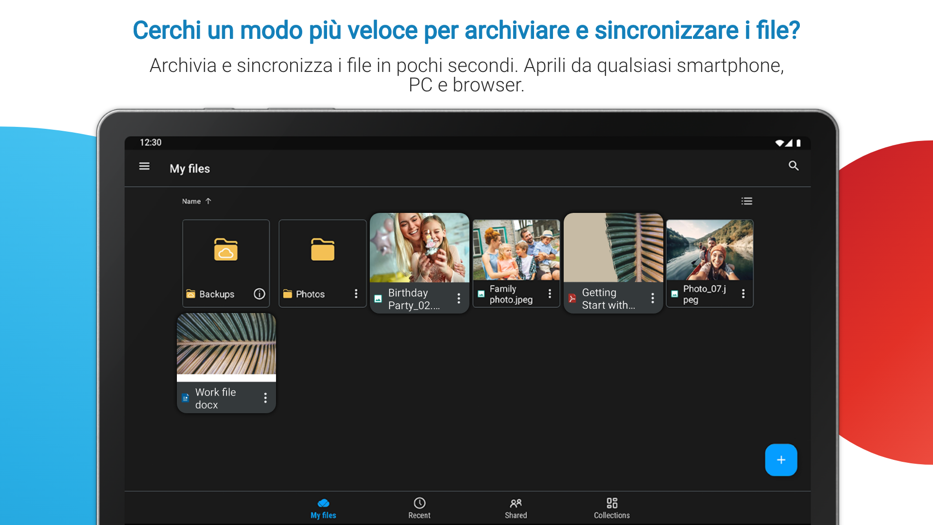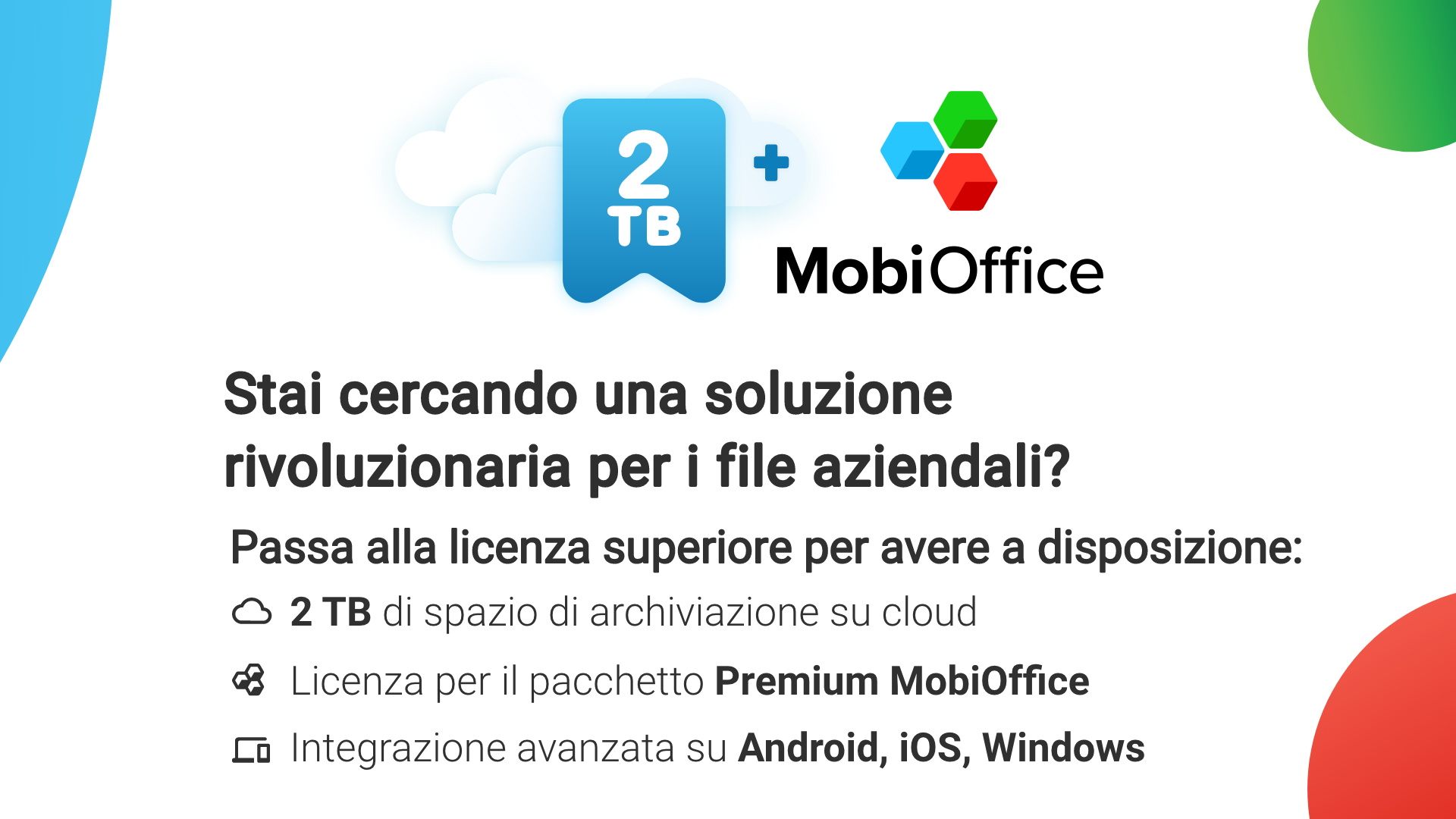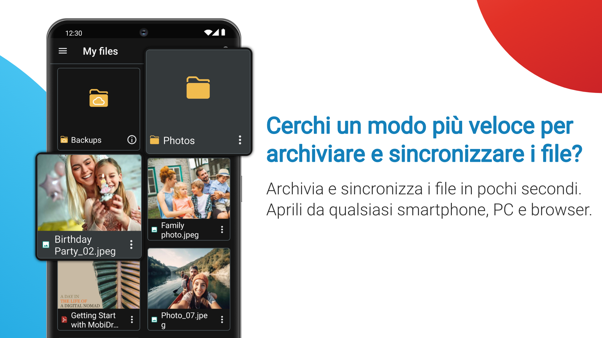 MobiDrive è uno spazio in cloud snello, sicuro e privo di pubblicità, con funzioni pratiche per il backup, la sincronizzazione e l'accesso a tutti i file. Dallo spazio di archiviazione gratuito di 20GB disponibile al momento dell'accesso alle sue ricche funzionalità multipiattaforma, MobiDrive garantisce un trasferimento sicuro dei contenuti indipendentemente dal formato dei file, dal dispositivo, dalla piattaforma o dalla posizione. UNITÀ SICURA CON AMPIO SPAZIO DI ARCHIVIAZIONE - Vuoi 20GB di spazio in cloud gratuito, senza pubblicità e senza vincoli? Basta creare un account, richiedere lo spazio gratuito e sincronizzare o eseguire il backup di qualsiasi file. - Ti serve un pratico spazio dove archiviare video o foto ma i 20GB gratuiti non sono sufficienti? Aggiorna l'unità fino a 2TB e sfrutta lo spazio di archiviazione sufficiente per la sincronizzazione e il backup. ACCESSO IMMEDIATO AI FILE - Il trasferimento dei contenuti di MobiDrive è semplice e veloce. Proteggi e sincronizza file e cartelle sull'unità in pochi secondi. - Assicurati che i tuoi archivi di foto e video siano sempre aggiornati grazie al backup automatico di foto e video. - Grazie alle funzionalità multipiattaforma di MobiDrive puoi sincronizzare l'unità e creare un backup su qualsiasi dispositivo mobile, PC Windows o browser. UNA POTENTE GESTIONE DEI FILE PER TENERE IN ORDINE L'UNITÀ - MobiDrive supporta tutti i principali formati di foto, video e file per l'ufficio, rappresentando una soluzione ideale per l'archiviazione di foto, video o uno spazio sicuro per i file del lavoro. - Converti i file in oltre 1200 formati di file e fai in modo che i file dell'unità siano compatibili. - Organizzare l'unità dopo ogni backup o trasferimento di contenuti è una seccatura. Utilizza le Raccolte, in cui i file vengono selezionati in base al loro tipo. - La sezione File recenti consente di accedere rapidamente ai file utilizzati in precedenza. ASSICURATI CHE I TUOI FILE SIANO SEMPRE PROTETTI - Hai eliminato per sbaglio un file? Ripristinalo dalla sezione Cestino. - Accedi alle versioni precedenti di qualsiasi file memorizzato sulla tua unità cloud. - Tutti i file presenti nell'unità sono protetti per 30 giorni, il che significa che anche se sono stati eliminati o modificati, è sempre possibile recuperarli. CONDIVISIONE E TRASFERIMENTO DI CONTENUTI SENZA PROBLEMI - Hai bisogno di condividere urgentemente un file ma non hai il dispositivo a portata di mano? Ti basterà sincronizzare i file dell'unità su qualsiasi dispositivo mobile, PC Windows o browser per trasferire i contenuti in modo rapido e sicuro. - Il trasferimento di contenuti non è mai stato così facile. Condividi in pochi secondi con amici e parenti i ricordi più preziosi contenuti nel tuo spazio di archiviazione foto e video. - Le sezioni dedicate "Condivisi con me" e "Condivisi da me" consentono di tenere sotto controllo qualsiasi trasferimento di contenuti che coinvolga i file presenti sull'unità. - Contrassegna un file dell'unità come disponibile "offline" per l'uso senza bisogno di sincronizzare o di Internet. - Condividi i file dalla tua unità come allegato. PIÙ PRODUTTIVITÀ CON PREMIUM - Fino a 2TB di spazio in cloud - Assicurati di avere uno spazio in cloud anche per i trasferimenti di contenuti più grandi, facendo l'upgrade dell'unità fino a 2TB. - 180 giorni di protezione dei file - Ripristina i file eliminati dal cestino e accedi alle cronologie delle versioni per un periodo prolungato fino a 180 giorni. - Converti i file in oltre 1200 formati - Se un file sull'unità è incompatibile, puoi convertirlo in tutti i principali formati di foto, video e file per l'ufficio. - Pacchetto per l'ufficio MobiOffice Premium - Passa alla licenza MobiDrive da 2TB e abbraccia una svolta per i file per l'ufficio. MobiOffice condivide un'integrazione multipiattaforma con MobiDrive, consentendoti di sincronizzare e fare il backup dei file per l'ufficio ovunque.