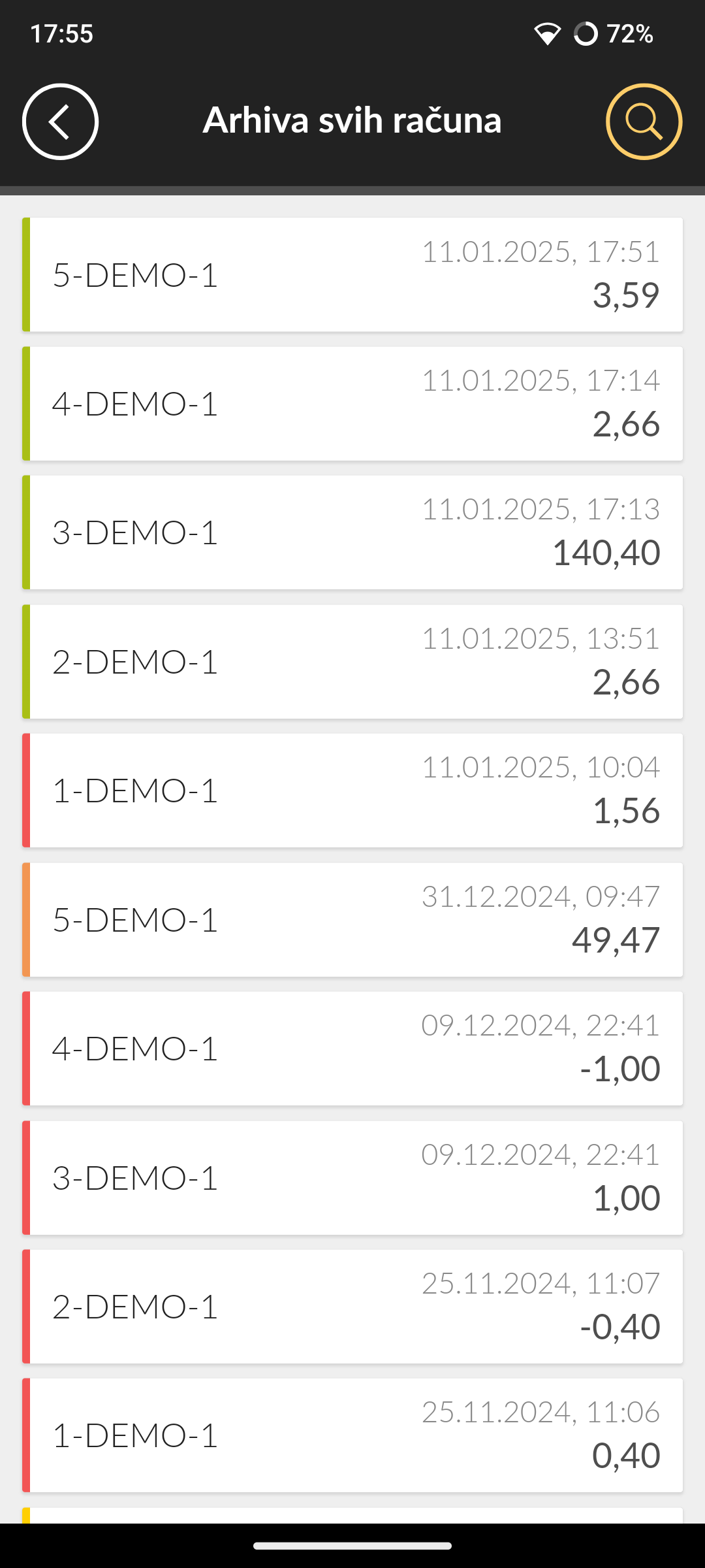 Mobile fiscal è un'aggiunta gratuita al servizio Solo esistente. La sua unica funzionalità è la creazione brutalmente veloce di fatture (fiscali) tramite telefono cellulare e la stampa delle fatture direttamente sulla stampante POS. Per utilizzare l'applicazione è necessaria una connessione Internet e un account utente attivo nel servizio Solo (l'applicazione funziona anche con un pacchetto gratuito). Se non hai già un account utente Solo, registrati su https://solo.com.hr/registracija, in modo completamente gratuito. Tieni presente che l'impostazione dei dati relativi alla tua attività, l'inserimento di servizi/prodotti, la fiscalizzazione e il download dei report finanziari avviene tramite l'interfaccia web del servizio Solo, mentre questa applicazione utilizza gli stessi dati e non può essere impostata nell'applicazione stessa. E cos'è Solo? Solo è uno strumento semplicissimo e gradevole con il quale puoi gestire la tua attività senza problemi. Offre fatturazione, fiscalizzazione, stampa A4 o POS, preventivi, bolle di consegna, ordini di lavoro, ordini di acquisto e note spese. Abbiamo già detto che è tutto completamente gratuito per il microimprenditore? Altre domande? Scopri come registrarti, avviare l'applicazione, creare un account, aggiungere un certificato FINA, quali stampanti POS sono supportate e come sono collegate cliccando su https://solo.com.hr/pitanja-i-odgovori Stampanti POS Bluetooth supportate (58 mm): - Rongta RPP02N -Bixolon SPP-R210 / R220 / R200II / R200III -ZJ/NaviaTec 5802LD/5802DD - Gojprt PT-210 / PT-230 / PT-280 / MTP-II - Sunmi V1, V2, V2 PRO - Vecchio SM-L200 - Datec DPP-250