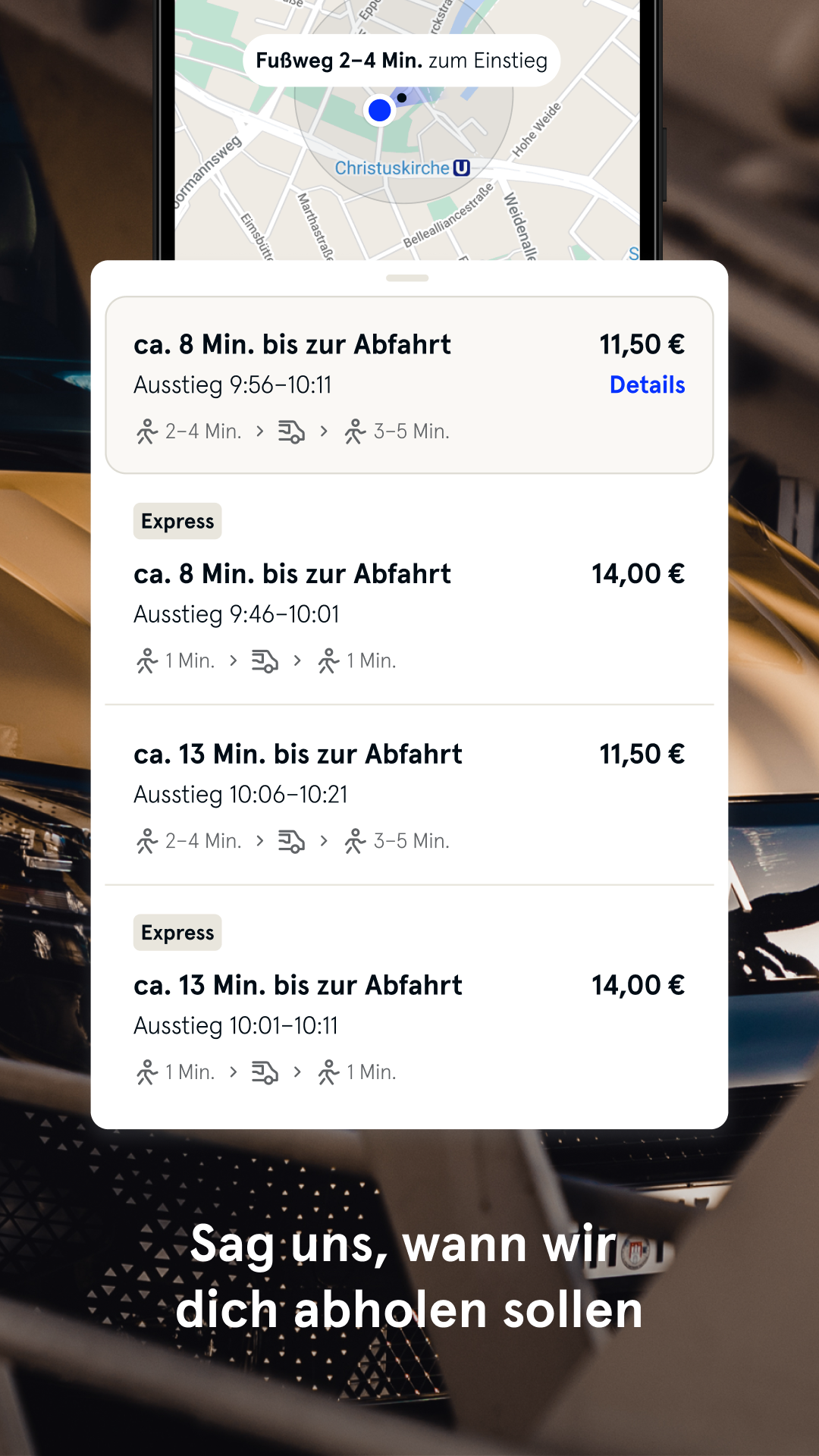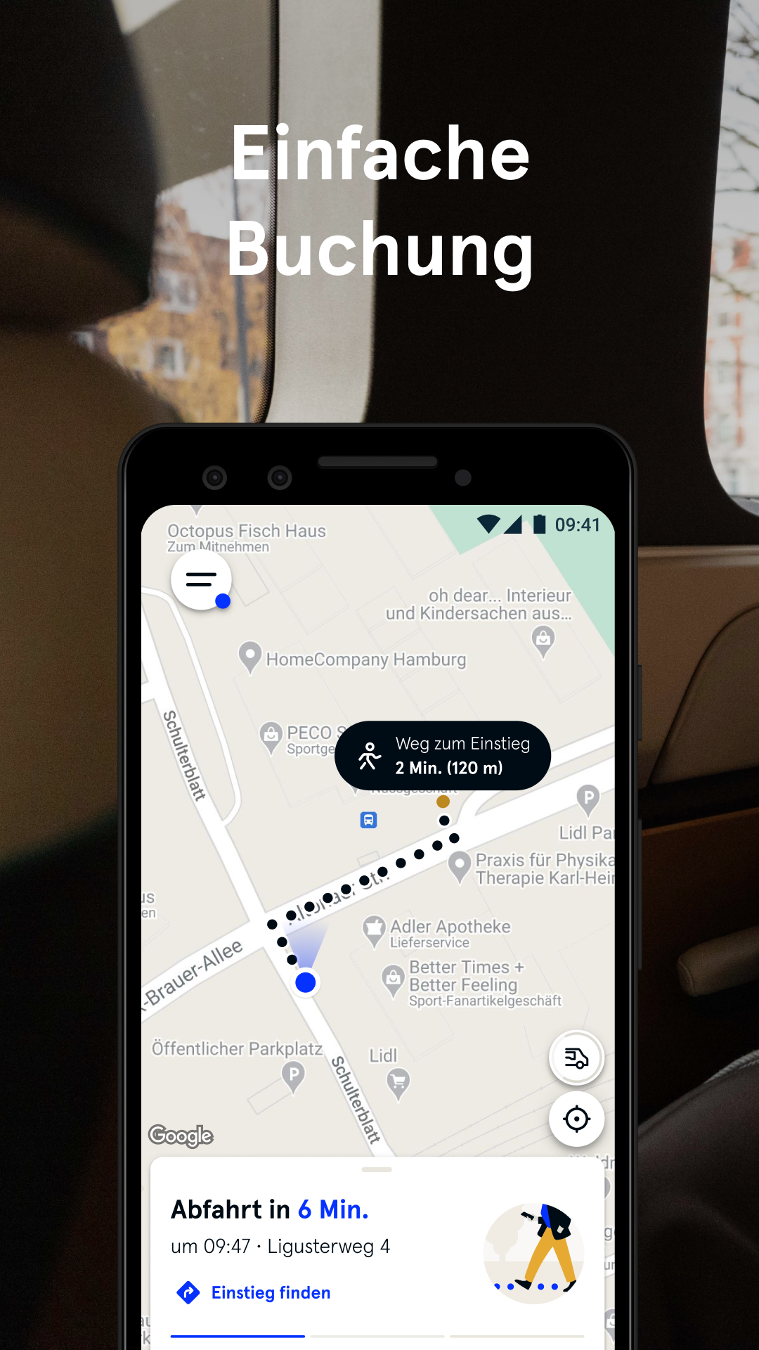 È semplice: fino a sei persone dirette nella stessa direzione possono viaggiare insieme: l'alternativa perfetta a treni, mezzi pubblici, car sharing, taxi o auto a noleggio. Rilassati e goditi la piacevole sensazione di fare qualcosa per l'ambiente con ogni breve viaggio in città. Perché con ogni corsa contribuisci a rendere Amburgo un posto migliore in cui vivere, che tu stia andando al lavoro, all'aeroporto, alla stazione ferroviaria o al porto.