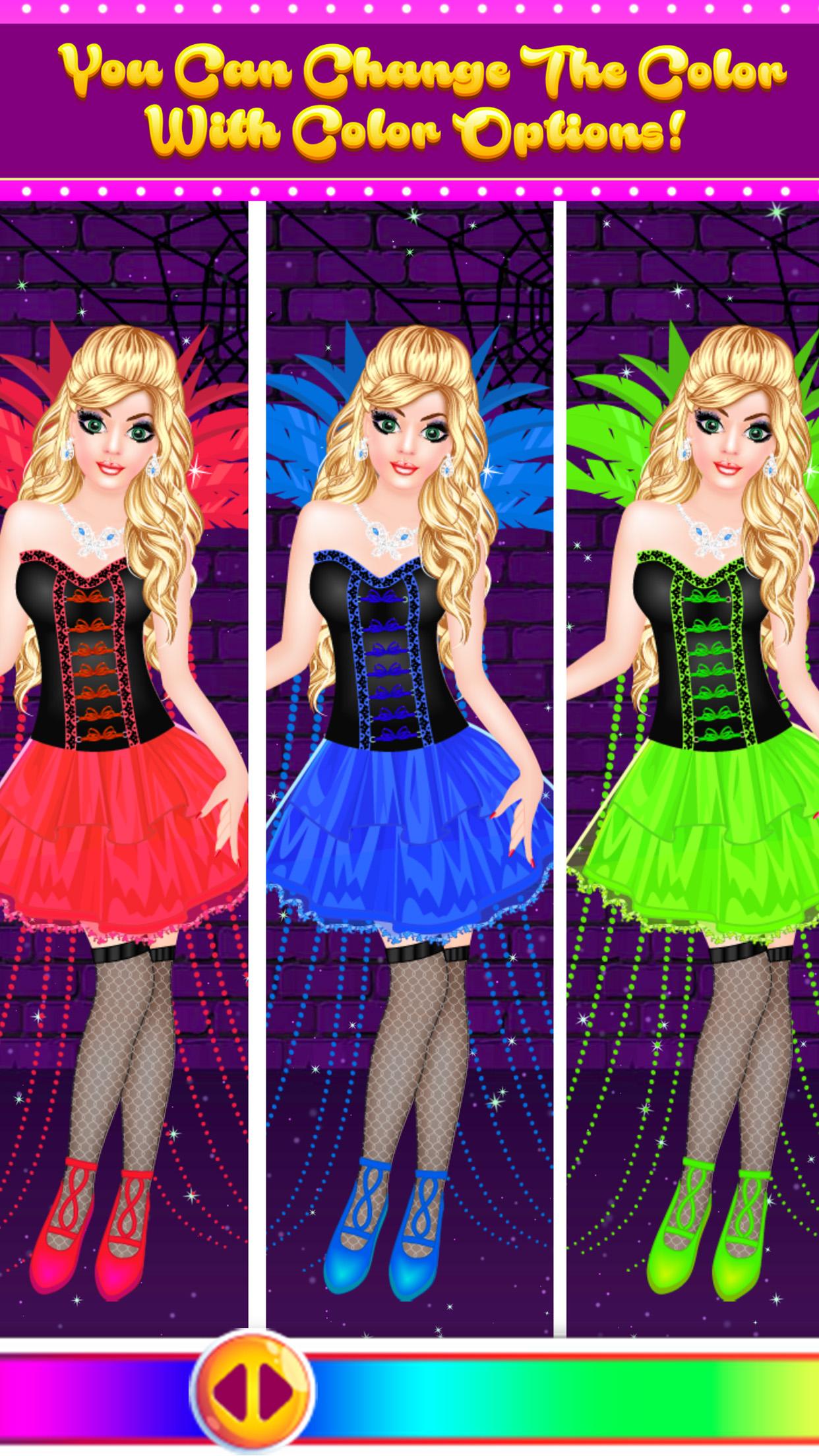 - scegli un abito per la tua bambola mostruosa tra un sacco di opzioni; puoi anche cambiare il colore del vestito facendo scorrere l'opzione del colore indicata