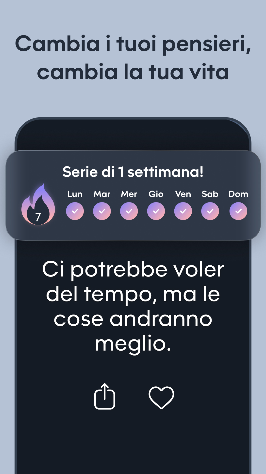 Se stai attraversando momenti difficili, hai bisogno di una spinta in più per portare a termine le cose o ti piace condividere citazioni di ispirazione nei social media, Motivation ti aiuta. I promemoria positivi sono uno degli strumenti più semplici e potenti per la crescita mentale. Si tratta di mantenere i pensieri giusti sempre al primo posto nella mente fin dall'inizio della giornata, in modo che siano prontamente disponibili nei giorni difficili in cui ne hai più bisogno. Ora, da iOS 14, puoi pensare pensieri positivi senza nemmeno provarci con il widget Motivation! Installa semplicemente il widget nella schermata iniziale e personalizzalo dall'app. Puoi avere tutti i widget che vuoi! Aggiungi una carica di positività ai tuoi pensieri quotidiani con il widget Motivation! Installa il widget sulla schermata iniziale, quindi utilizza l'app per personalizzarlo. Personalizza il design delle citazioni e condividi il messaggio edificante del giorno con i tuoi amici, oppure usa l'immagine per Instagram o come sfondo. L'app include una vasta gamma di argomenti come l'autostima, le relazioni e la gestione dello stress, oltre a una selezione di temi accuratamente progettati tra cui scegliere, aggiornati di frequente. "+ Leggi centinaia di citazioni + Trova libri motivazionali + Salva o condividi le tue citazioni + Imposta promemoria motivazionali per tutto il giorno + Salva le tue citazioni preferite + Cambia carattere e colori + Filtra le citazioni per categoria + Imposta un widget motivazionale per la schermata iniziale " Dalle citazioni sull'allenamento a quelle sull'amore e sulla famiglia, Motivation le ha tutte! Sfoglia le nostre migliaia di citazioni organizzate per categoria: - Motivazione a lavorare di più - Citazioni d'amore - Motivazione ad allenarsi - Aiuto per la depressione - Aumenta la tua autostima e la fiducia in te stesso - Supera la fine di una relazione - Lezioni di vita e detti - Citazioni sportive di atleti e allenatori - Affari, denaro, successo e carriera - Essere presenti e consapevoli - Citazioni da e per le donne - Filosofia delle migliori menti - Citazioni sull'essere grati per quello che si ha - Ispirazioni per la gioia - Citazioni da film - Versetti della Bibbia - E molto altro! "E ora con Motivation Premium puoi: + Rimuovere annunci + Sbloccare tutti i temi e le categorie + Impostare foto di sfondo + Ricevere promemoria illimitati + Cercare citazioni" Per avere accesso ai contenuti e alle funzionalità di Motivation Premium, puoi scegliere tra un abbonamento a vita, mensile e annuale con rinnovo automatico. Questa è una transazione ricorrente che verrà addebitata sul tuo account iTunes alla conferma dell'acquisto e si rinnoverà automaticamente a meno che non la annulli almeno 24 ore prima della scadenza dell'abbonamento. I rinnovi verranno addebitati allo stesso costo entro 24 ore prima della fine del periodo in corso. Puoi gestire gli abbonamenti e disattivare il rinnovo automatico accedendo alle impostazioni dell'account iTunes dopo l'acquisto. Informativa sulla privacy Condizioni d'uso *Compatibile con Wear OS: puoi usarlo nel tuo orologio.