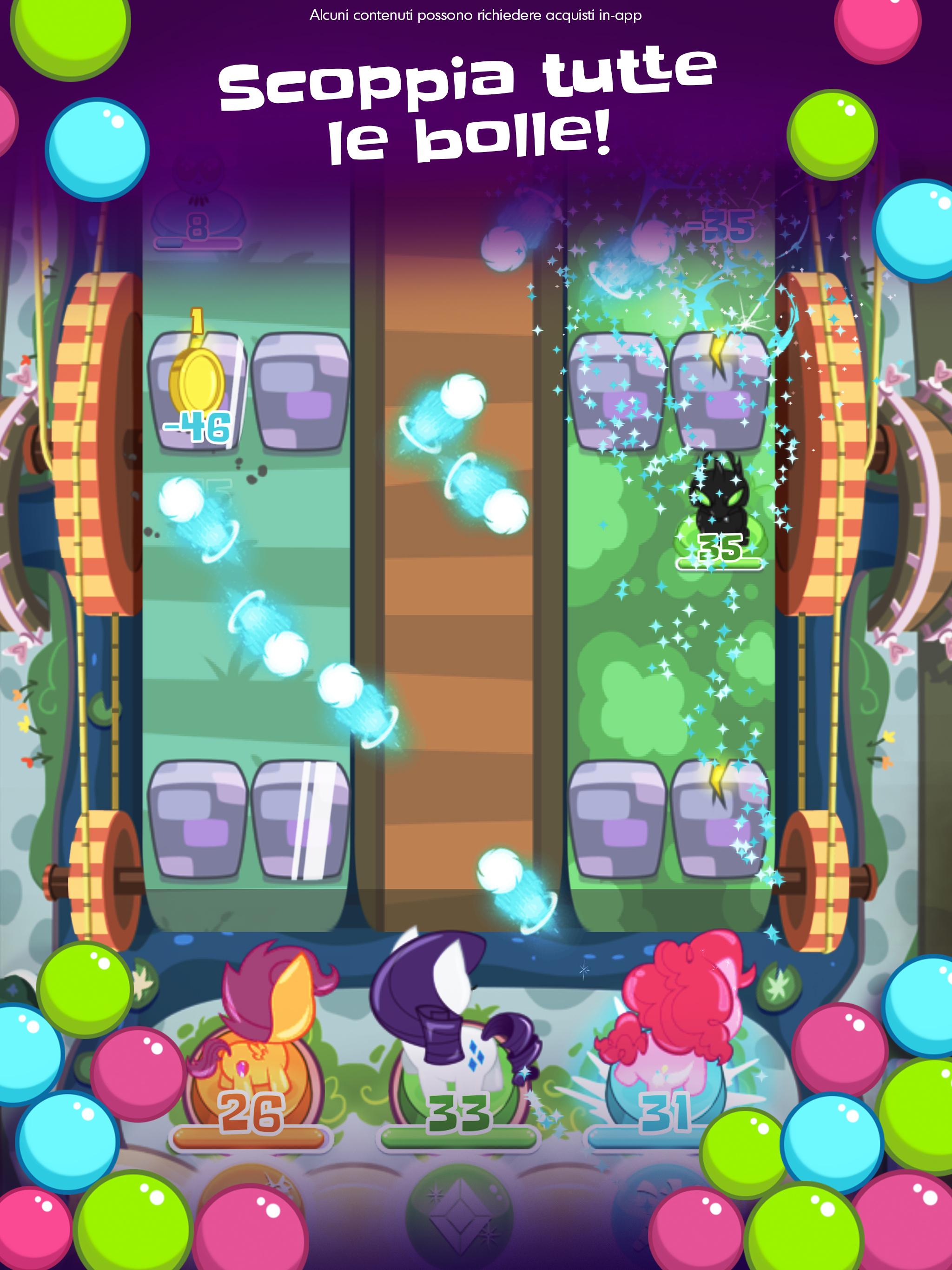 In questo divertentissimo gioco sparabolle ti troverai insieme a TWILIGHT SPARKLE e ai tuoi personaggi preferiti di MY LITTLE PONY™ alla Scuola dell'Amicizia! Sarai un nuovo studente e ti concentrerai sul primo, fantastico Campionato dei Mini-Pony! Affronta maestri, studenti e insegnanti in entusiasmanti sfide arcade con le figurine dei Mini-Pony. Collezionali tutti per creare la squadra perfetta!
