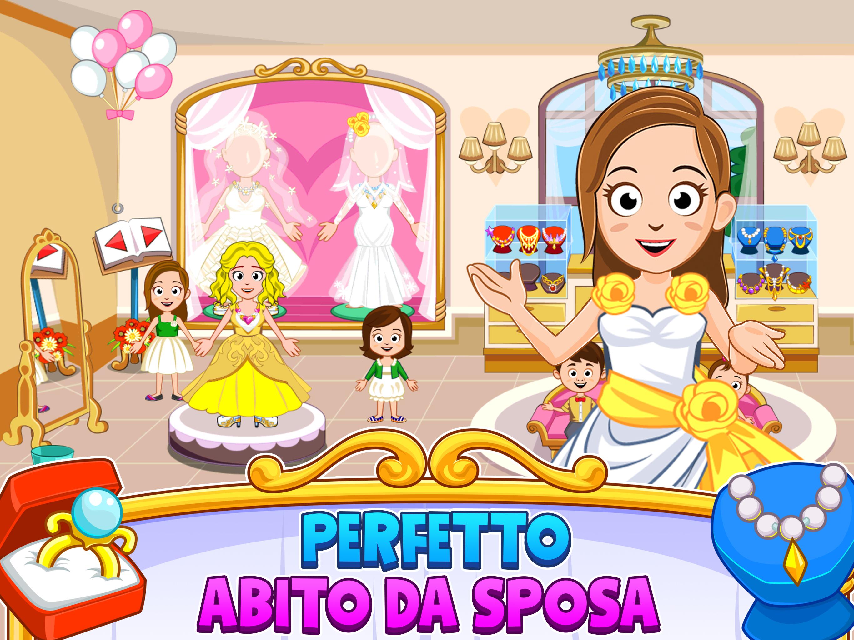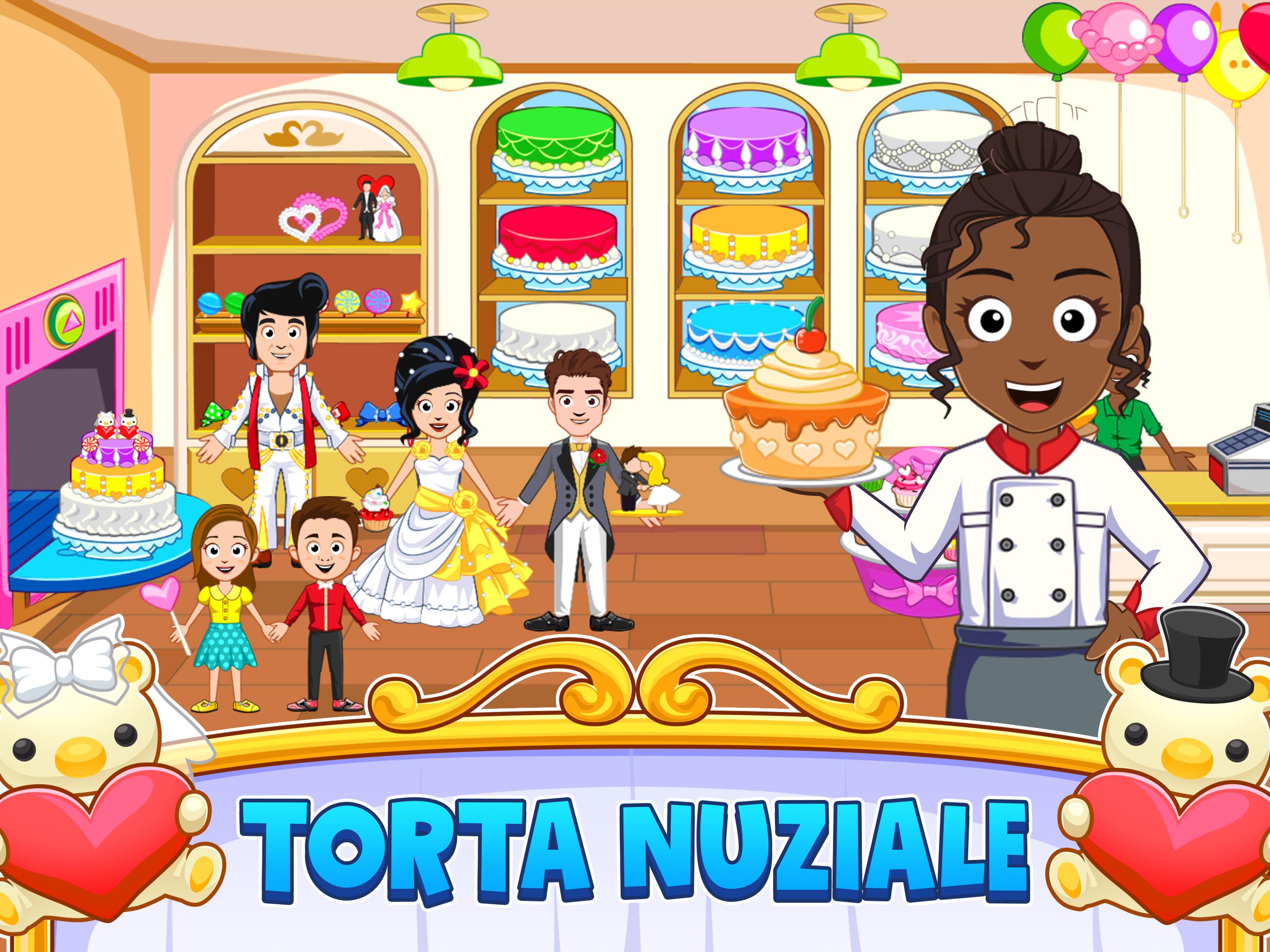 Il nostro nuovo gioco My Town - Wedding Day dispone di tutte le ambientazioni perfette per realizzare il matrimonio perfetto: una pasticceria, un negozio di abiti da sposa, un fiorista e negozio di articoli da regalo, una sala cerimonie e un ricevimento di nozze al 100° piano! GIOCA, IMMAGINA, SCOPRI Con così tante fantastiche ambientazioni e così tanti nuovi personaggi, infiniti sono i modi di giocare e prepararsi per il giorno del matrimonio! Questo gioco stimolerà l'immaginazione di ogni bambino con divertenti attività creative! ** Facile da giocare per un bambino di 3 anni, appassionante per un bambino di 12 anni!** CHE COS'È MY TOWN – WEDDING DAY? Come tutti gli altri giochi My Town, My Town - Wedding Day è una casa delle bambole interattiva. Una nuova espansione si aggiunge alla serie di giochi My Town: un'integrazione piena di ambientazioni divertenti, e di simpatici nuovi personaggi e vecchi amici che partecipano al matrimonio! FASCIA D'ETÀ RACCOMANDATA Bambini e bambine di 3 – 13 anni: i più piccoli giocheranno insieme ai genitori, i più grandi giocheranno per ore da soli o con gli amici. Controllo parentale completo: i bambini possono giocare in totale sicurezza anche senza genitori nei paraggi. Nessun annuncio pubblicitario né pubblicità mirata di terze parti! CARATTERISTICHE DI GIOCO DI WEDDING DAY: 14 personaggi, 6 ambientazioni, 1 limousine e un sacco di regali! Negozio di abiti da cerimonia - Nessun ricevimento di nozze è perfetto se non puoi scegliere l'abito della sposa e dello sposo, no? Pasticceria - Crea la tua torta nuziale perfetta, alta fino a 3 piani, con un sacco di decorazioni colorate ma organiche. Fiorista e negozio di articoli da regalo - Una sposa senza bouquet non è una sposa, così come un invitato senza regalo non è un invitato: trovali entrambi nel nostro eccezionale negozio di articoli da regalo! Sala cerimonie - Riunisci tutti gli ospiti, fai suonare l'organo, scambia i voti nuziali e "Congratulazioni!"… finalmente sposi!!! Un'incredibile sala feste al 100° piano Usa l'ascensore per raggiungere il tetto: lì parteciperai al miglior ricevimento di nozze della tua vita! Cibo, musica, fuochi d'artificio e molto altro!