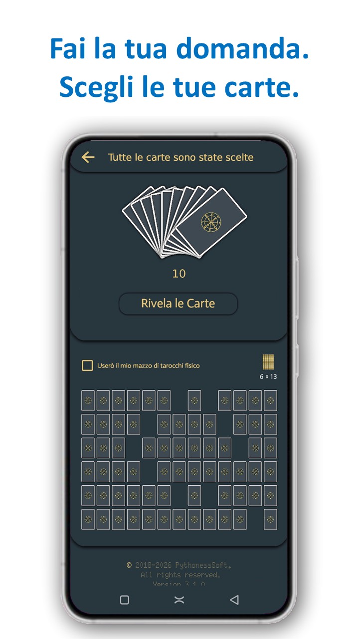 • Effettua letture con carte digitali o con il tuo mazzo fisico