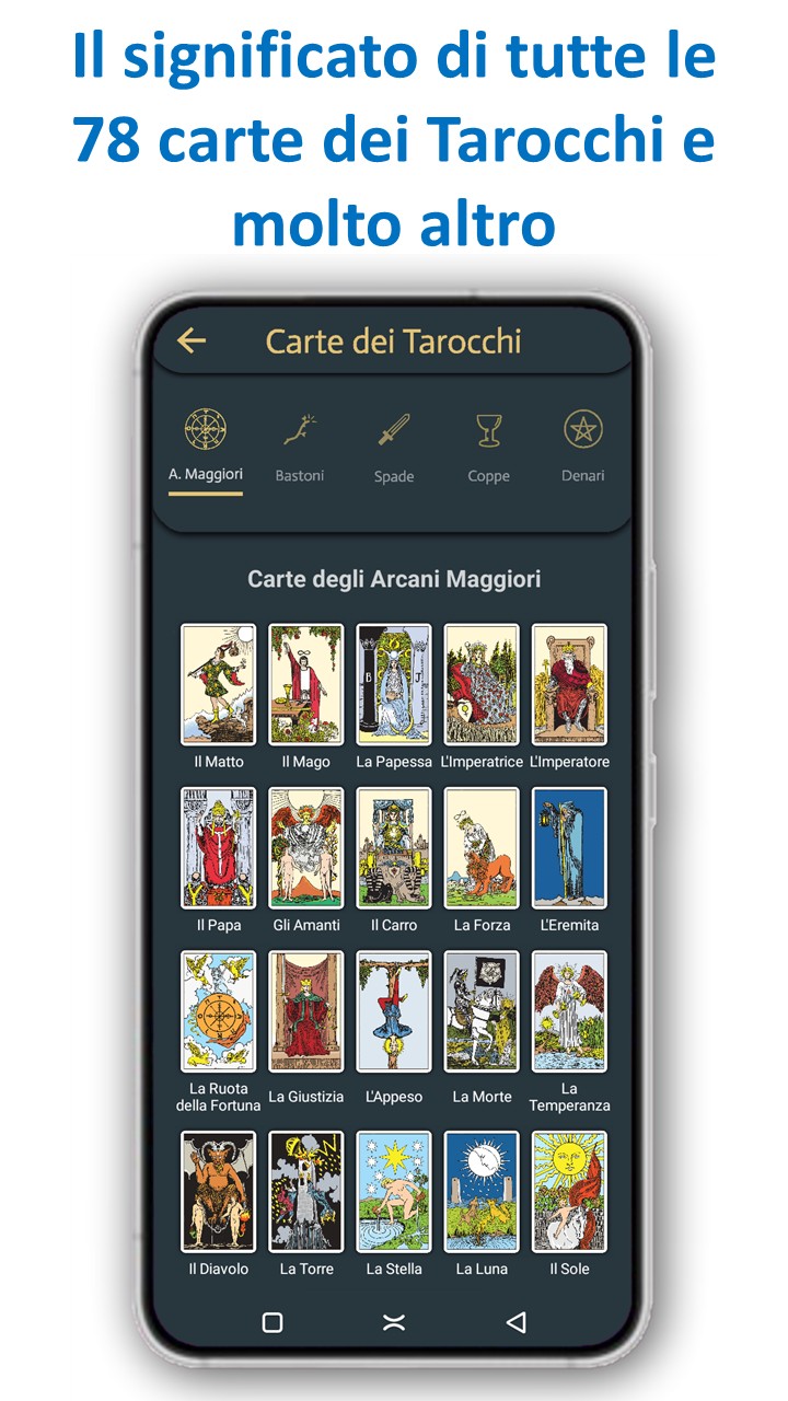 Esplora la saggezza di tutte le 78 carte dei Tarocchi, inizia la giornata con la Carta del Giorno e ottieni nuove prospettive su amore, carriera e decisioni di vita.