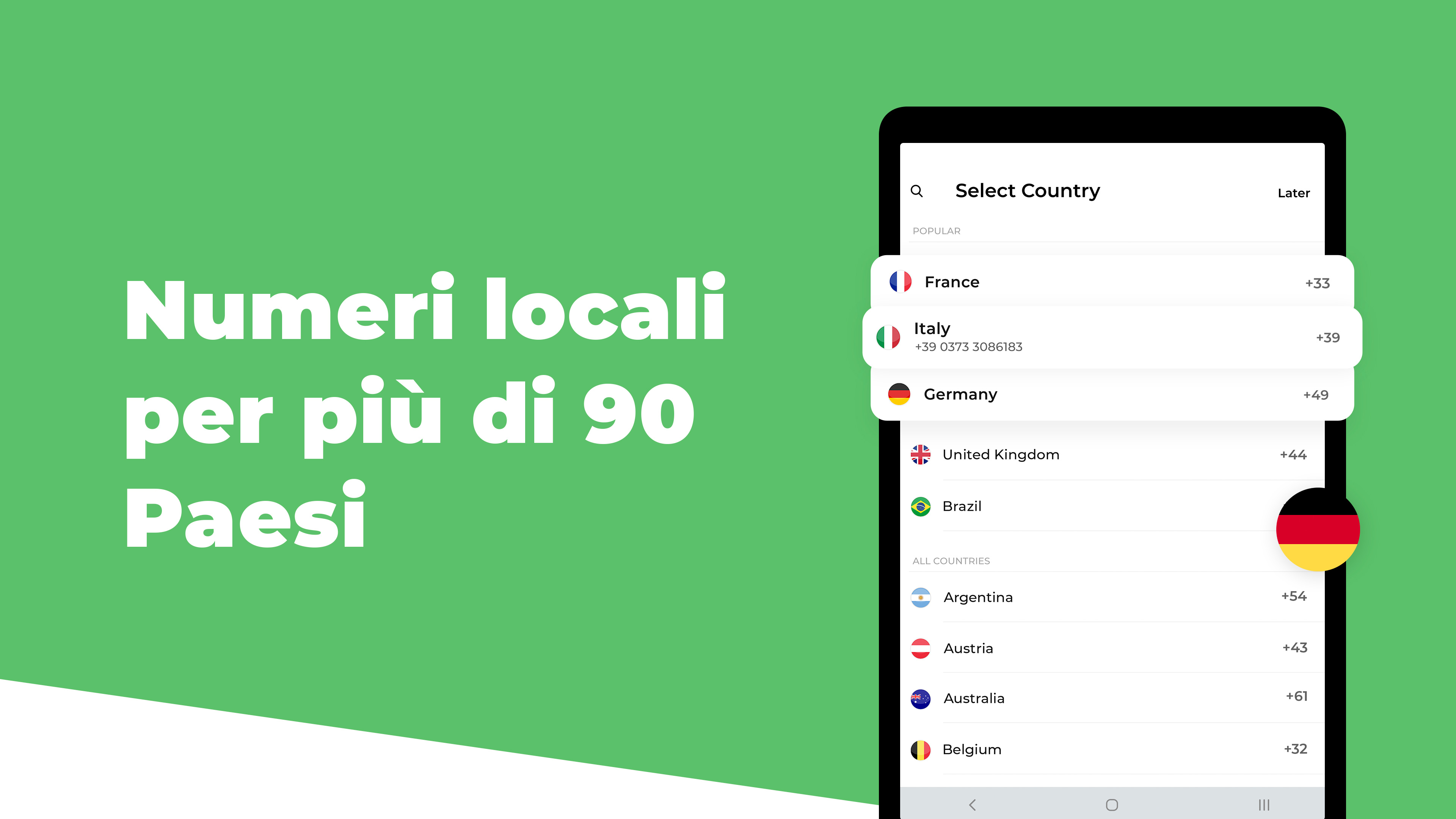 OnPhone consente di avere diversi numeri di telefono per le tue esigenze personali e aziendali senza SIM aggiuntiva, oltre a chiamare e inviare SMS a livello internazionale senza costi aggiuntivi. L'app ti consente di scegliere un numero di telefono personalizzato ed effettuare chiamate senza visualizzare il tuo numero reale. Supporto per molti numeri di telefono internazionali tra cui Stati Uniti, Regno Unito, Francia, Brasile, Canada, Spagna, Messico, Australia, Corea del Sud, Giappone e oltre 40 paesi! Non è necessario acquistare una scheda SIM aggiuntiva e cambiarla quando si desidera chiamare da un altro numero. Ora puoi chiamare da diversi numeri in modo facile e veloce! Caratteristiche: - SEGRETERIA TELEFONICA. Informa i chiamanti perché non puoi rispondere. Imposta l'orario di lavoro e fai in modo che le chiamate in arrivo al di fuori di questo periodo di tempo vadano direttamente alla segreteria. - REGISTRAZIONE CHIAMATA. Registra le chiamate in entrata e in uscita. - INOLTRO CHIAMATA. Usa l'inoltro di chiamata per nascondere il tuo numero reale. - BLOCCA CHIAMATE. - INVIARE AL FUTURO. Invia messaggi in ritardo alla data e all'ora che preferisci. Basata sulla tecnologia eSIM (embedded SIM card), la nostra app rende Internet più accessibile, fornisce una connessione Internet sicura e stabile e offre la più ampia copertura globale. Fai un passo nel futuro con eSIM, una soluzione di nuova generazione che si separa dalle tradizionali SIM fisiche! Vantaggi dell'eSIM OnPhone: - Risparmio di denaro: OnPhone eSIM offre piani dati a un prezzo equo, rendendola una soluzione molto più vantaggiosa rispetto al roaming! - Facile da gestire: acquista un numero illimitato di profili eSIM e gestiscili facilmente all'interno del tuo account; - Facile da installare: bastano pochi tocchi e sei a posto; - Copertura globale: ottieni una connessione Internet senza interruzioni praticamente in ogni angolo del mondo; - Non c'è bisogno di scambiare le carte SIM: passa facilmente tra i nostri piani dati e il tuo attuale gestore di telefonia mobile; - Nessun contratto o impegno a lungo termine. Annulla in qualsiasi momento! - Non sono più necessarie SIM aggiuntive: tutti i piani dati e i profili acquisiti sono disponibili su un'unica eSIM card; Informativa sulla privacy https://onphone.app/privacy.html Condizioni d'uso https://onphone.app/terms.html