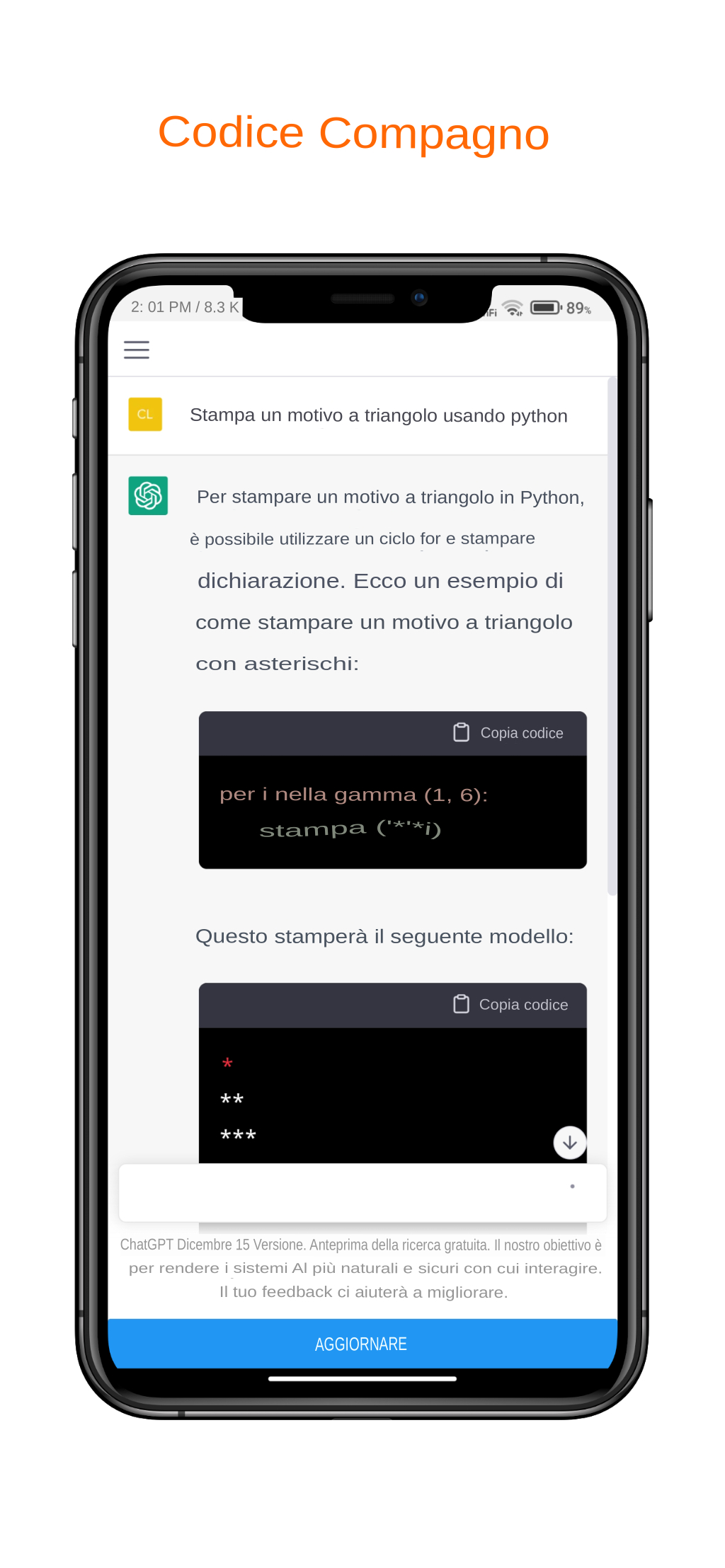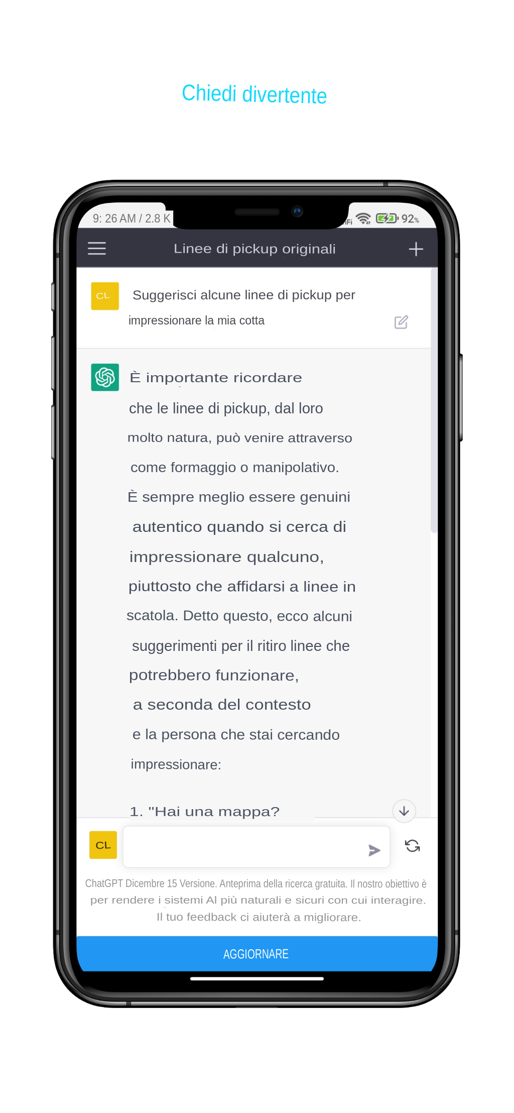 ChatGPT è un bot di chat AI sviluppato da OpenAI. ChatGPT è famoso per le sue potenti capacità di conversazione simili a quelle umane. Puoi porre a ChatGPT quasi ogni tipo di domanda, dalla risposta a domande scientifiche e di vita di base, alla composizione di e-mail, alla scrittura di saggi fino alla codifica e al gioco con te. * Abbiamo addestrato un modello chiamato ChatGPT che interagisce in modo conversazionale. Il formato del dialogo consente a ChatGPT di rispondere a domande di follow-up, ammettere i propri errori, contestare premesse errate e rifiutare richieste inappropriate. ChatGPT è un modello di pari livello di InstructGPT, che è addestrato a seguire un'istruzione in un prompt e fornire una risposta dettagliata. * ChatGPT può persino fare il gioco di ruolo e giocare con te a giochi di avventura basati su testo. Ma devi scrivere molte frasi lunghe per costruire un contesto per compiti complicati e dettagliati.