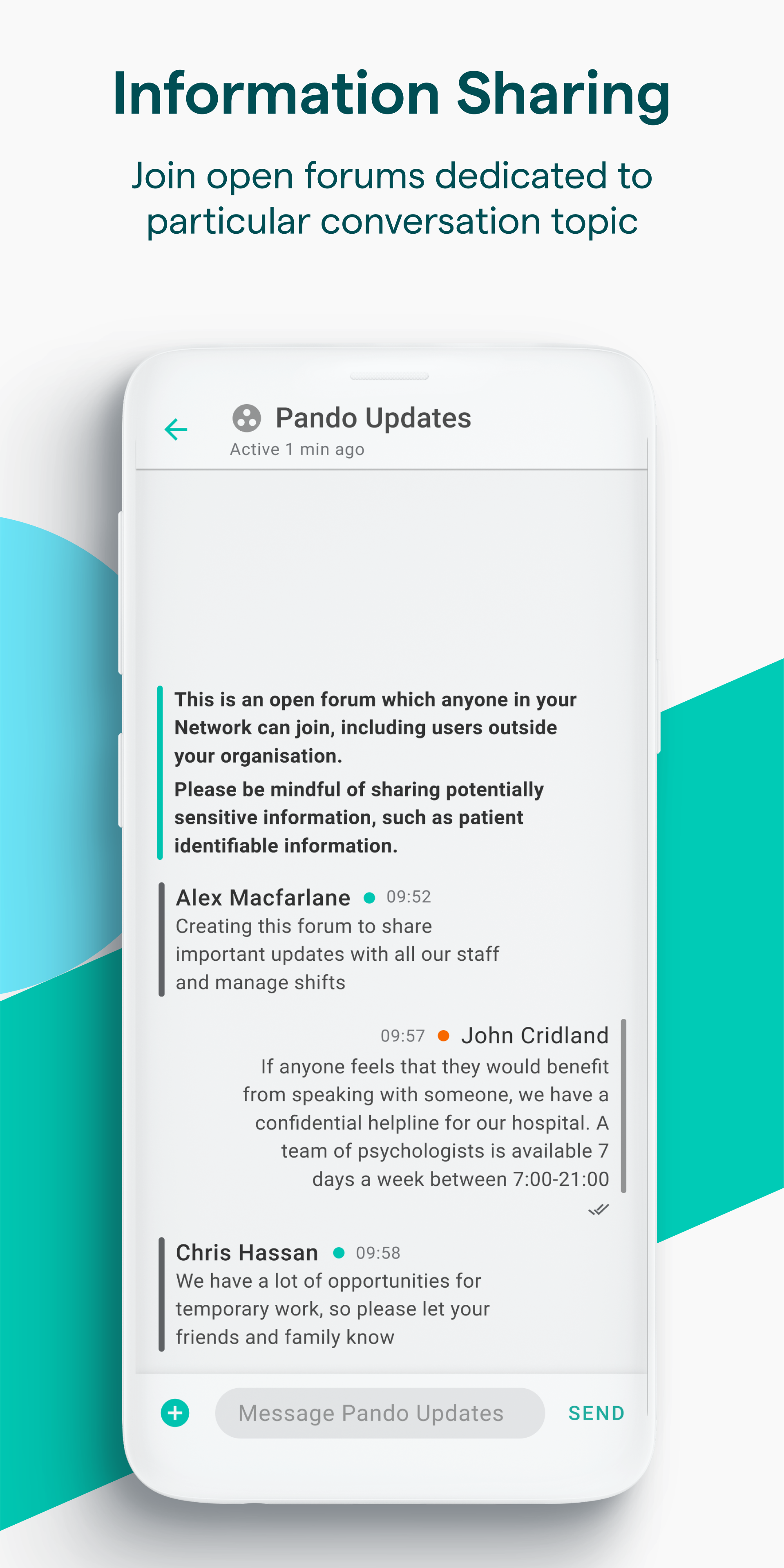 Utilizzata da oltre 200 ospedali del NHS e CCG, Pando è un'app di messaggistica sicura che ti aiuta a collaborare in modo efficace con il tuo team e altri operatori sanitari. È l'app di messaggistica clinica più grande e più utilizzata nel servizio sanitario nazionale.