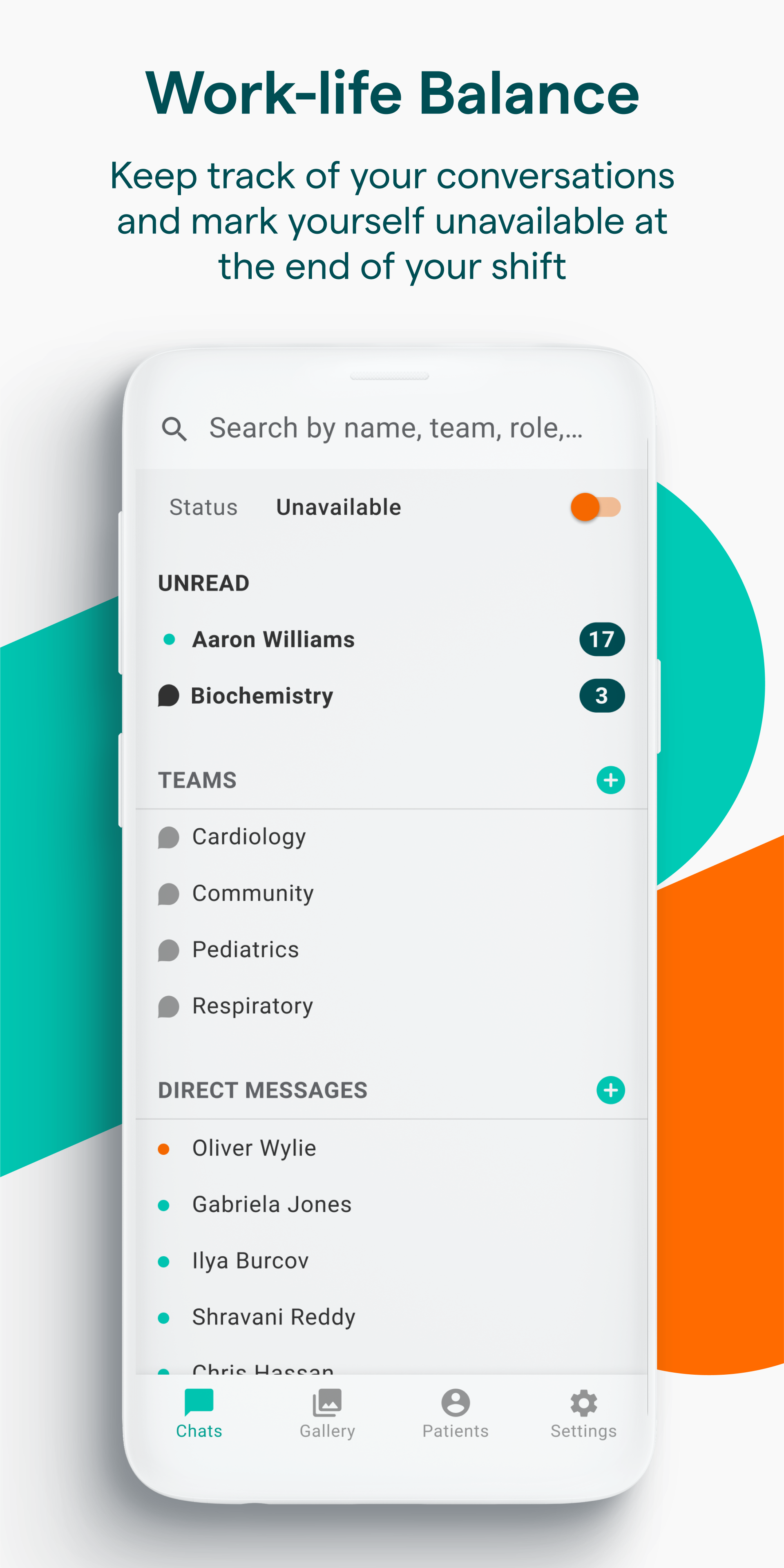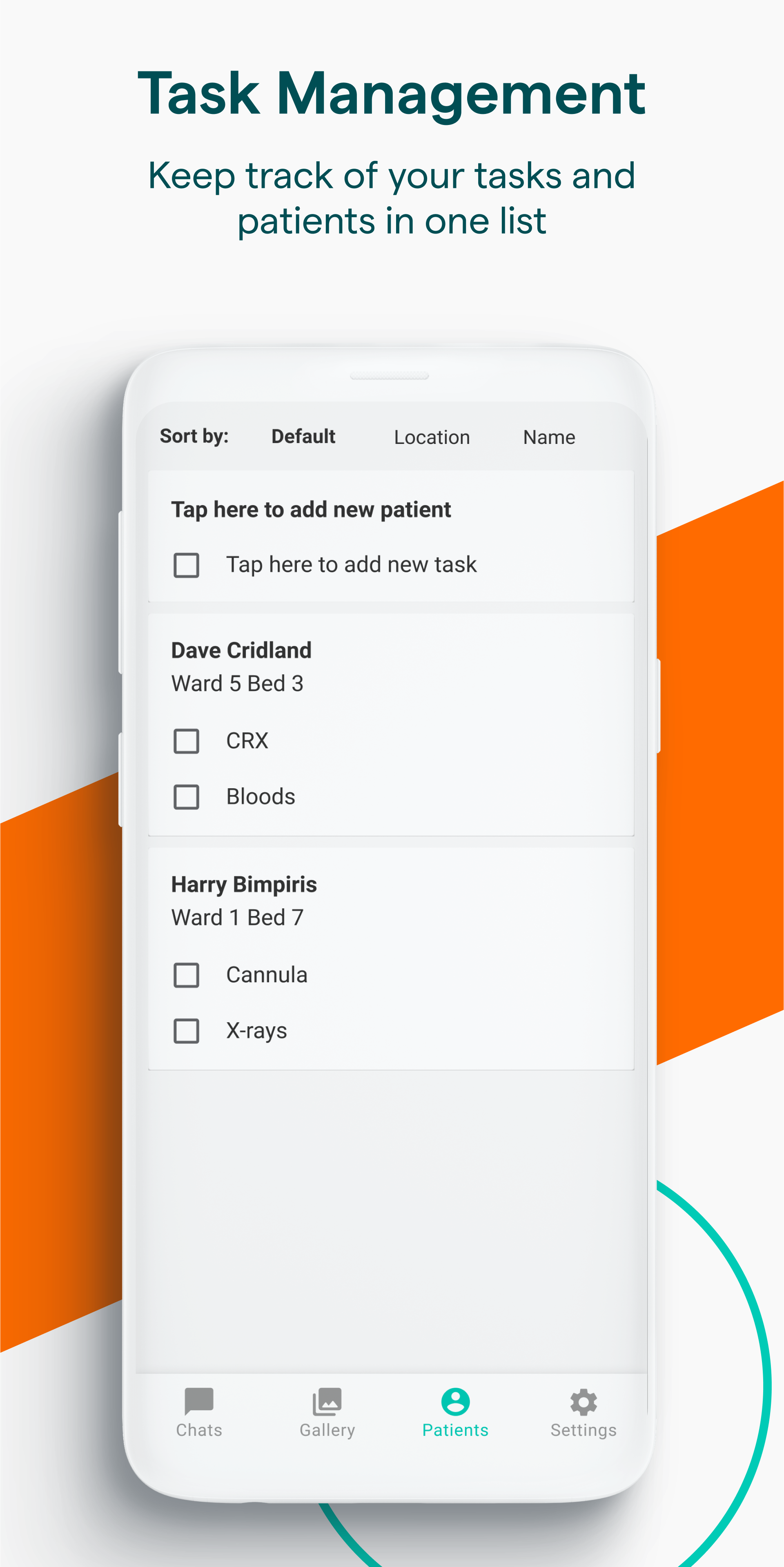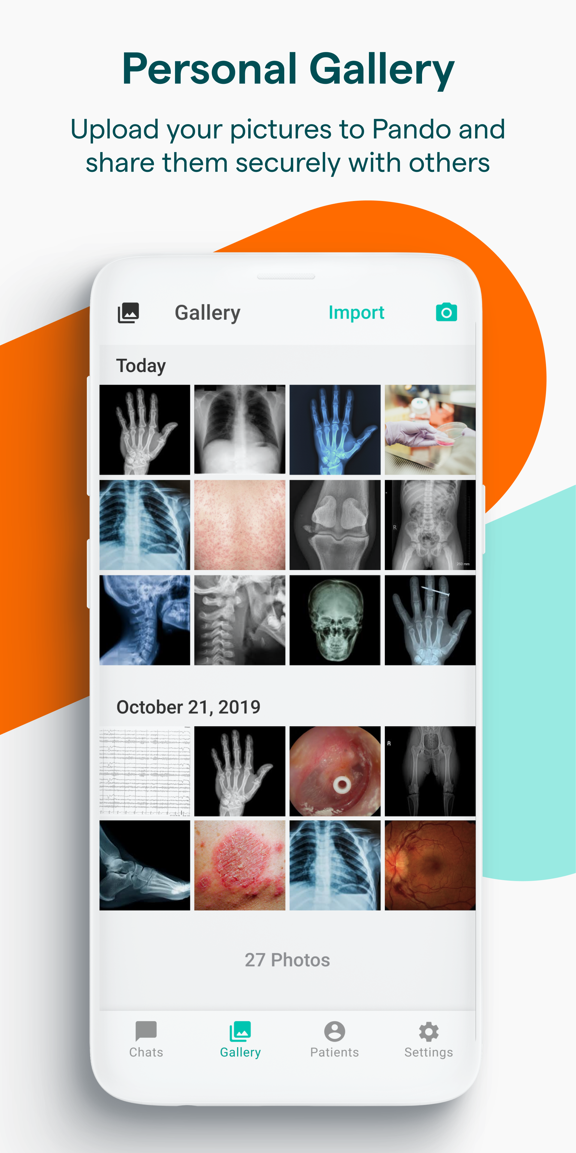 Pando offre messaggistica istantanea sicura, inclusa l'acquisizione e l'esportazione di foto direttamente nella tua e-mail NHS. Sei in grado di gestire le schede paziente e le tue attività per semplificare il tuo flusso di lavoro.