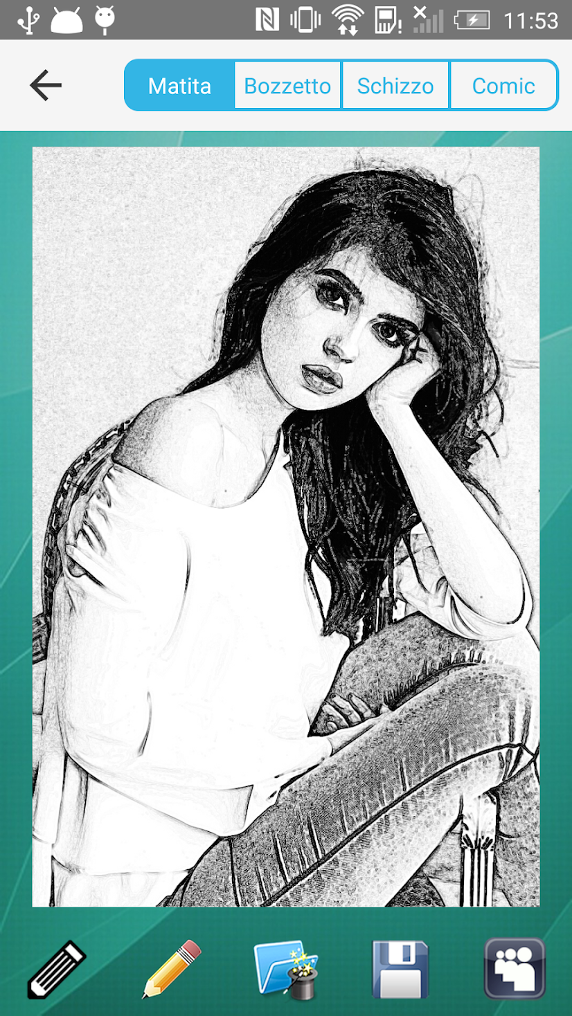 Questa è la versione HD della nostra app Bozzetto a matita. Un'applicazione facile da usare per diventare un vero artista con la creazione di bozzetti a matita sulle tue foto. Per creare il tuo bozzetto, puoi scegliere una foto dalla galleria o scattarne una con la tua fotocamera. I bozzetti, sia in bianco e nero che a colori, possono essere facilmente creati premendo SOLO un tasto. L'applicazione include tre stili: "Bozzetto", "Lavagnetta" e "Linea di tratteggio". Lo stile "Bozzetto" crea risultati accurati con bordi e curve morbide, ideale per le foto con ritratti umani. Lo stile "Lavagnetta" è adatto per gli oggetti e i punti di vista della natura, in quanto presenta bordi e curve più accentuati. "Linea di tratteggio" in genere è ideale su qualsiasi tipo di foto, in quanto si tratta di uno stile semplice che genera una trama di tratteggio incrociato sulla superficie delle foto. Nell'applicazione sono inoltre incluse diverse cornici che potrai facilmente applicare ai tuoi bozzetti finali. All'interno dell'applicazione è inoltre incluso Photo Editor, contenenti tanti strumenti di editing utili e veloci da utilizzare sulle tue foto, come il disegno, la regolazione della saturazione, gli effetti variabili e molto altro ancora. Le immagini possono essere salvate rapidamente con la semplice pressione di un tasto. Supporta inoltre la possibiltà di condividere le foto. Le foto possono essere condivise tramite Facebook, Twitter, e-mail, messaggi ecc.
