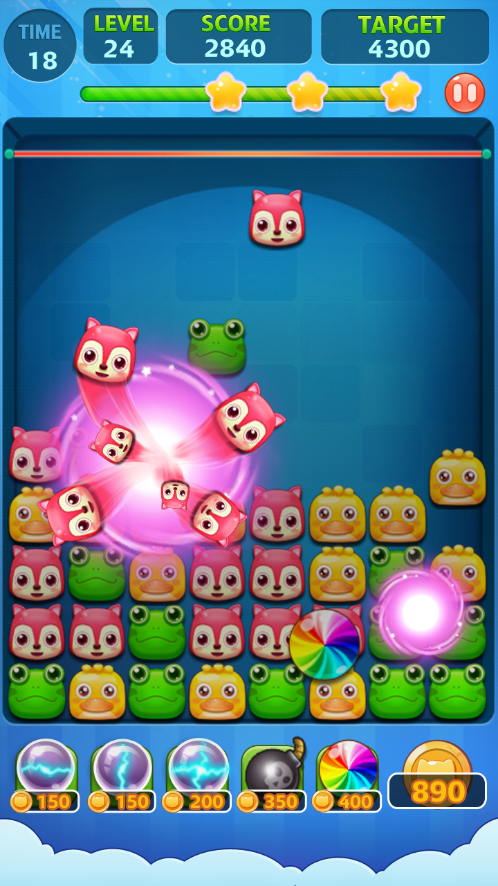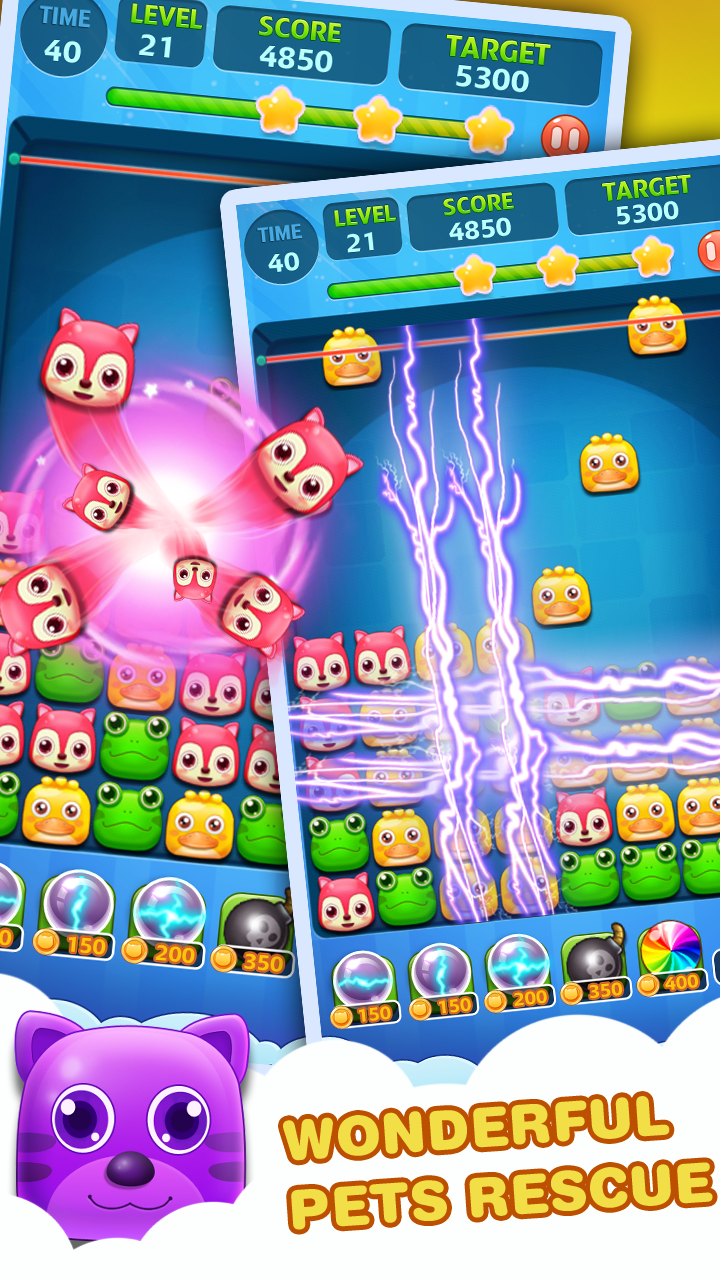 Pet Star is a very addictive match-three game! One tap on two or more adjacent same pets will burst them, create new high score is game winner! Game Features: - Lovely pets give you extra interesting. - Easy to play and hard to master. - 120 more well designed levels - The Last Bonus will give you a surprise. Free download this best fun pets game, you'll love it!