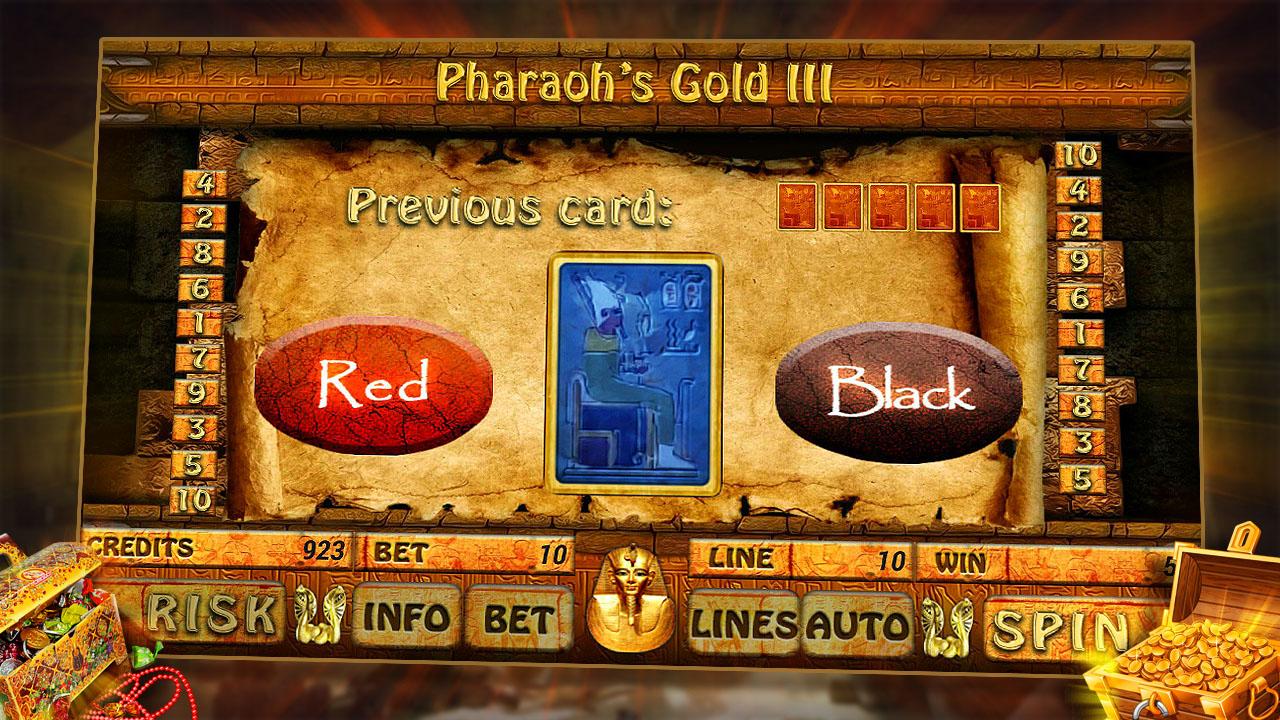 Египет не оставляет равнодушным тех кто привык рисковать, новая версия игрового видео слота "Pharaohs Gold 3" подарит вам новое приключение и богатства. Игра имеет дополнительную риск игру и бонус игру. Приятного вам проведения времени!