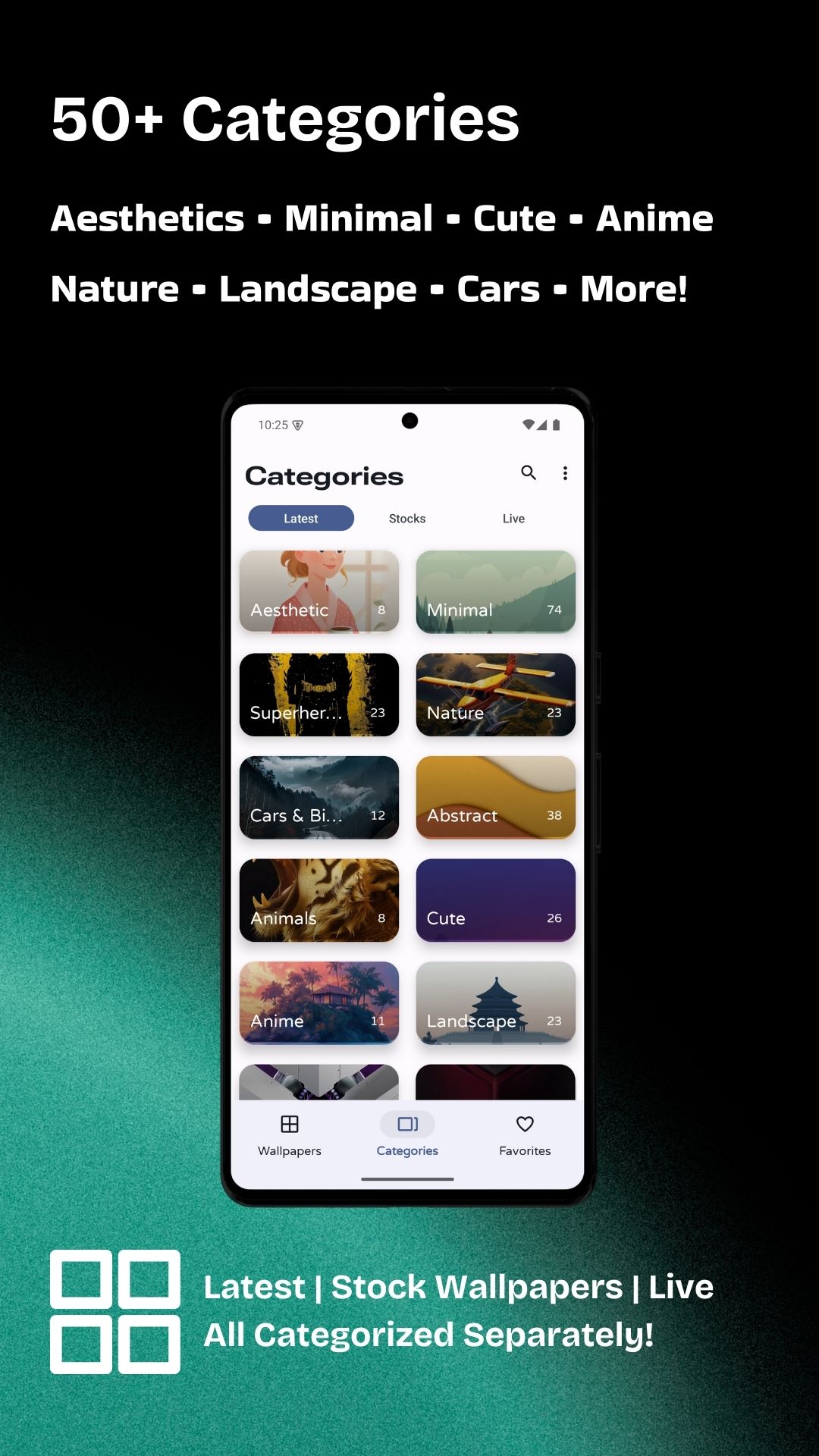 - Oltre 50 categorie: Anime, Natura, Astratto, Minimalista, Estetico, Auto, Carini e altro