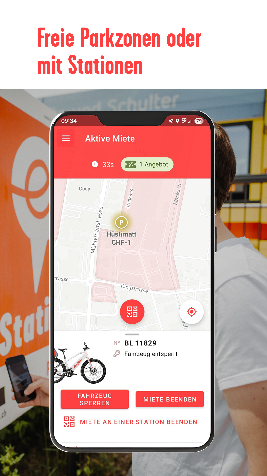 Con l'app Pick-e-Bike puoi noleggiare le e-bike di ultima generazione nella tua regione. Per registrarsi è necessaria una carta d'identità (carta d'identità o passaporto), una patente di guida e una carta di credito. Non sono necessarie chiavi o carte per Pick-e-Bike. Tutto avviene tramite app. Non devi nemmeno riportare il veicolo in una stazione fissa, puoi parcheggiarlo all'interno della zona pick-e-bike. È così facile andare avanti: 1. Scarica l'app e registrati: la registrazione è gratuita. Tutto ciò di cui hai bisogno è una patente di guida, un documento d'identità o un passaporto e una carta di credito. Verificheremo e confermeremo i tuoi dati il prima possibile. 2. Prenota il veicolo: puoi prenotare il veicolo che desideri per 15 minuti per assicurarti che il veicolo non ti venga strappato da sotto il naso. 3. Avvia il noleggio: Con l'app puoi sbloccare il veicolo e iniziare il noleggio. 4. Indossa il casco e vai: non dimenticare di indossare il casco, perché è obbligatorio. Ora sei pronto per partire e puoi vivere un'esperienza di guida unica. 5. Parcheggia correttamente: puoi parcheggiare ovunque nei luoghi consentiti all'interno della zona pick e-bike. 6. Riporre il casco: non dimenticare di riporre il casco nel luogo designato in modo che anche gli altri possano divertirsi a guidare. 7. Termina il noleggio: chiudi il veicolo e il tuo noleggio è terminato. Chiedere? Dai un'occhiata qui: https://www.pickebike.ch/FAQ