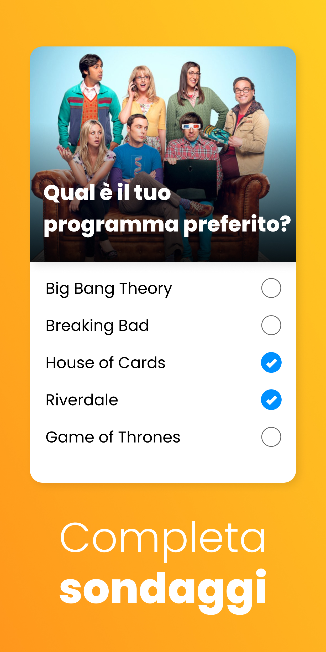 Partecipa a sondaggi retribuiti, gioca, scopri nuovi prodotti e incassa! PollPay è l'app che ti paga per la tua opinione. Rispondi alle domande per soldi, a casa o in viaggio. Ovunque tu vada e ogni volta che sei libero, scegli un sondaggio che ti sembra interessante selezionando la durata, l'argomento e l'importo del premio ideali. I sondaggi PollPay sono facili e diretti: sia per rispondere che per richiedere le vincite del sondaggio. La tua opinione può fare la differenza nei prodotti e nei servizi che ami. Condividi la tua opinione con sondaggi retribuiti per soldi veri. Condividi le tue opinioni su nuovi prodotti, pubblicità, slogan o anche quale prezzo pensi che dovrebbero essere i nuovi modelli di scarpe di marchi di fama internazionale. Iscriviti subito a PollPay gratuitamente! EFFETTUARE SONDAGGI A PAGAMENTO Dai un'occhiata a PollPay, l'app definitiva per guadagnare denaro semplicemente condividendo le tue opinioni! Che tu sia sul tuo telefono o computer, puoi completare facilmente sondaggi e quiz divertenti per guadagnare denaro o buoni regalo gratuiti. Con una vasta rete di partner per le ricerche di mercato, PollPay ti mette in contatto con i sondaggi più pagati su argomenti come politica, programmi TV, snack e altro ancora. Inoltre, potresti anche dare una sbirciatina ai nuovi prodotti dei grandi marchi! Puoi riscattare i tuoi guadagni PollPay per contanti PayPal gratuiti, buoni regalo Amazon gratuiti o buoni regalo per altri negozi e marchi popolari come Apple, Target, Mastercard, Amex, Walmart, Starbucks, Home Depot, eBay e molti altri. SCOPRI TUTTE LE OFFERTE PER FARE SOLDI APPENA AGGIUNTE -Vieni pagato per giocare ai giochi sul tuo telefono! -Scopri nuovi prodotti e servizi. Ricevi pagamenti per l'installazione di nuove app gratuite, l'iscrizione alle newsletter, la prova di campioni gratuiti e altro ancora. Dichiarazione di non responsabilità: l'uso continuato del GPS in background può ridurre drasticamente la durata della batteria.