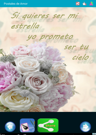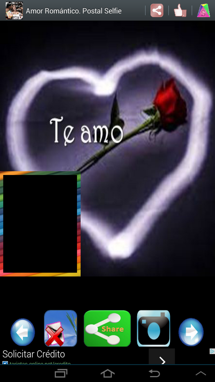 Postales de Amor para compartir... con SELFIE!!!! Muchísimas postales de amor con preciosas frases a las que puedes añadir tu propia foto. Incluye una funcionalidad de cámara y un marco de foto para componerlo al instante. Nuevas imágenes y frases para 2017. Lo puedes enviar a la persona amada por email, Whatsapp o mediante tus redes sociales favoritas. Sorprende a esta persona amada, esposa o madre, en el aniversario o cumpleaños, día de la madre, San Valentín, o simplemente, cualquier día del año.
