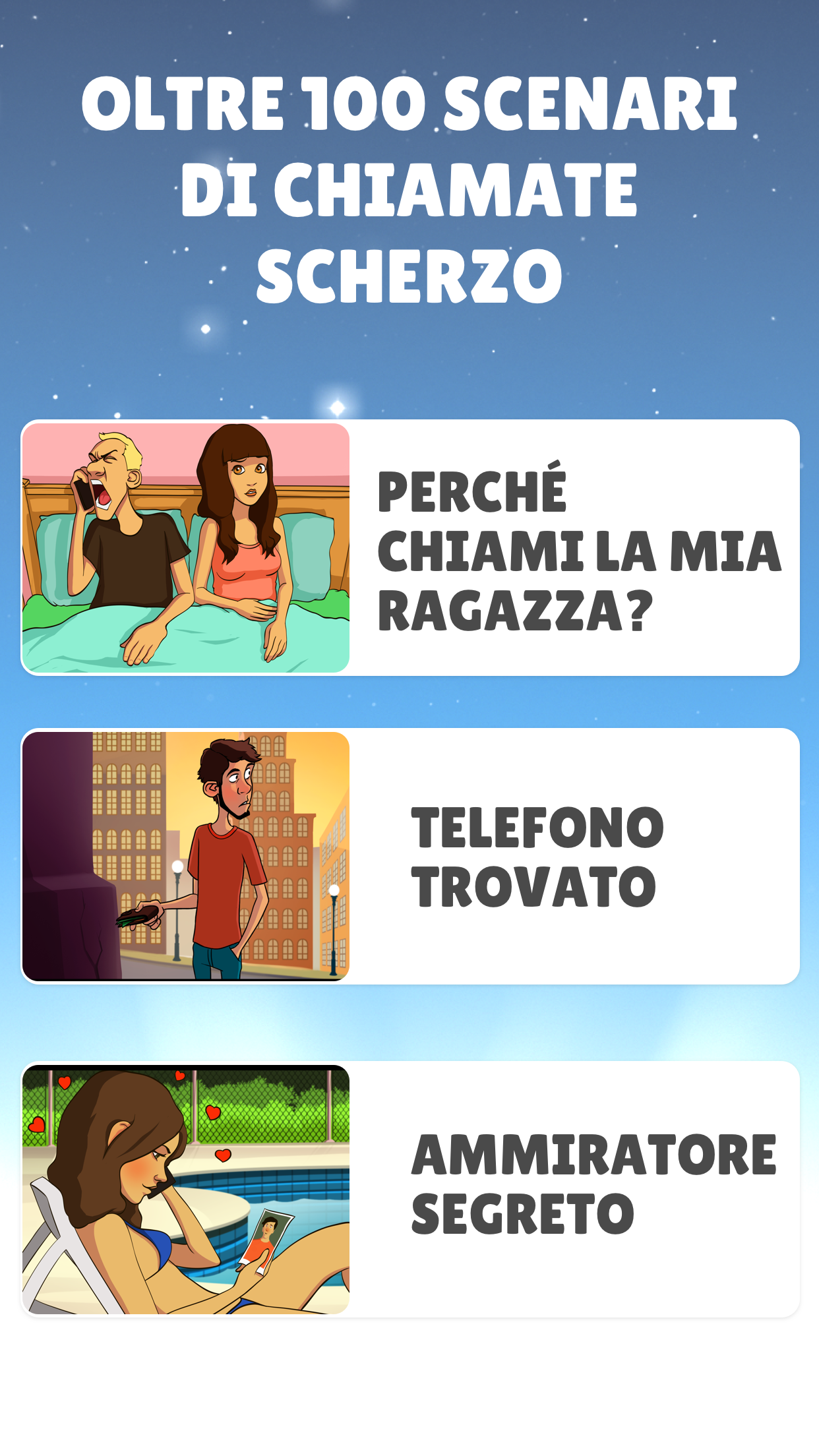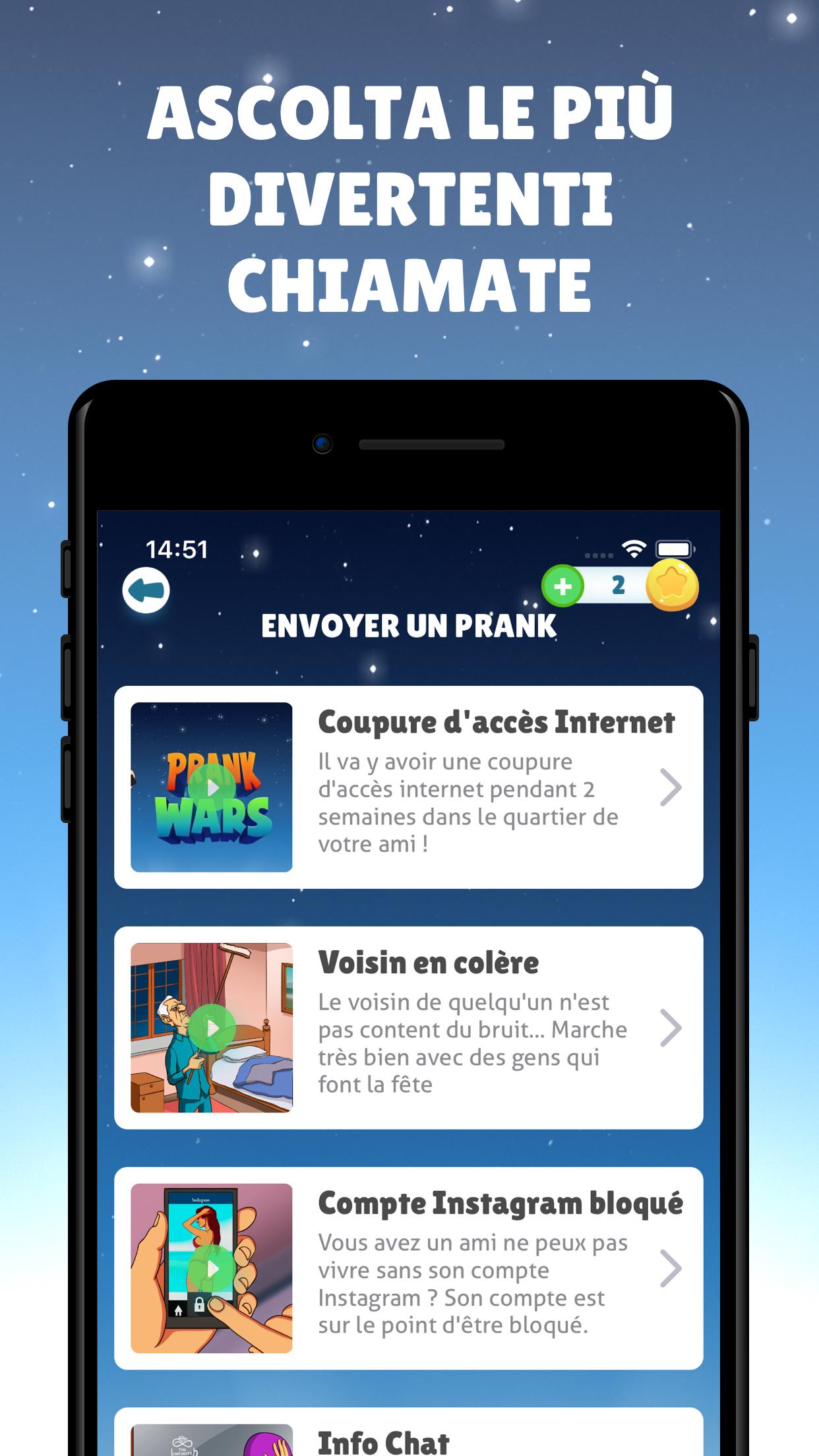 - Oltre 100 chiamate scherzo da cui scegliere, nuovi scherzi aggiunti settimanalmente