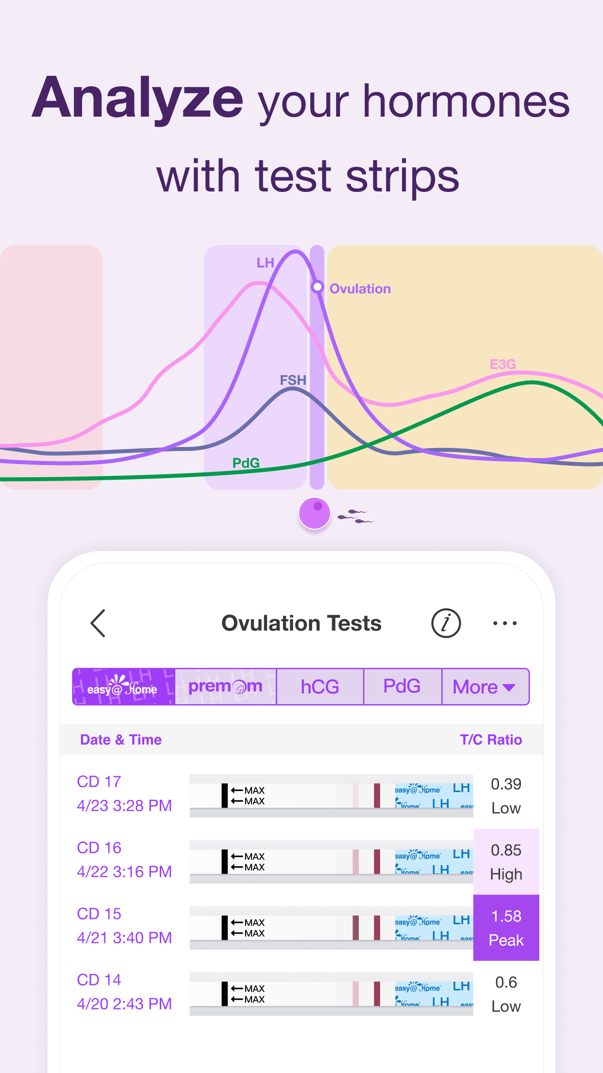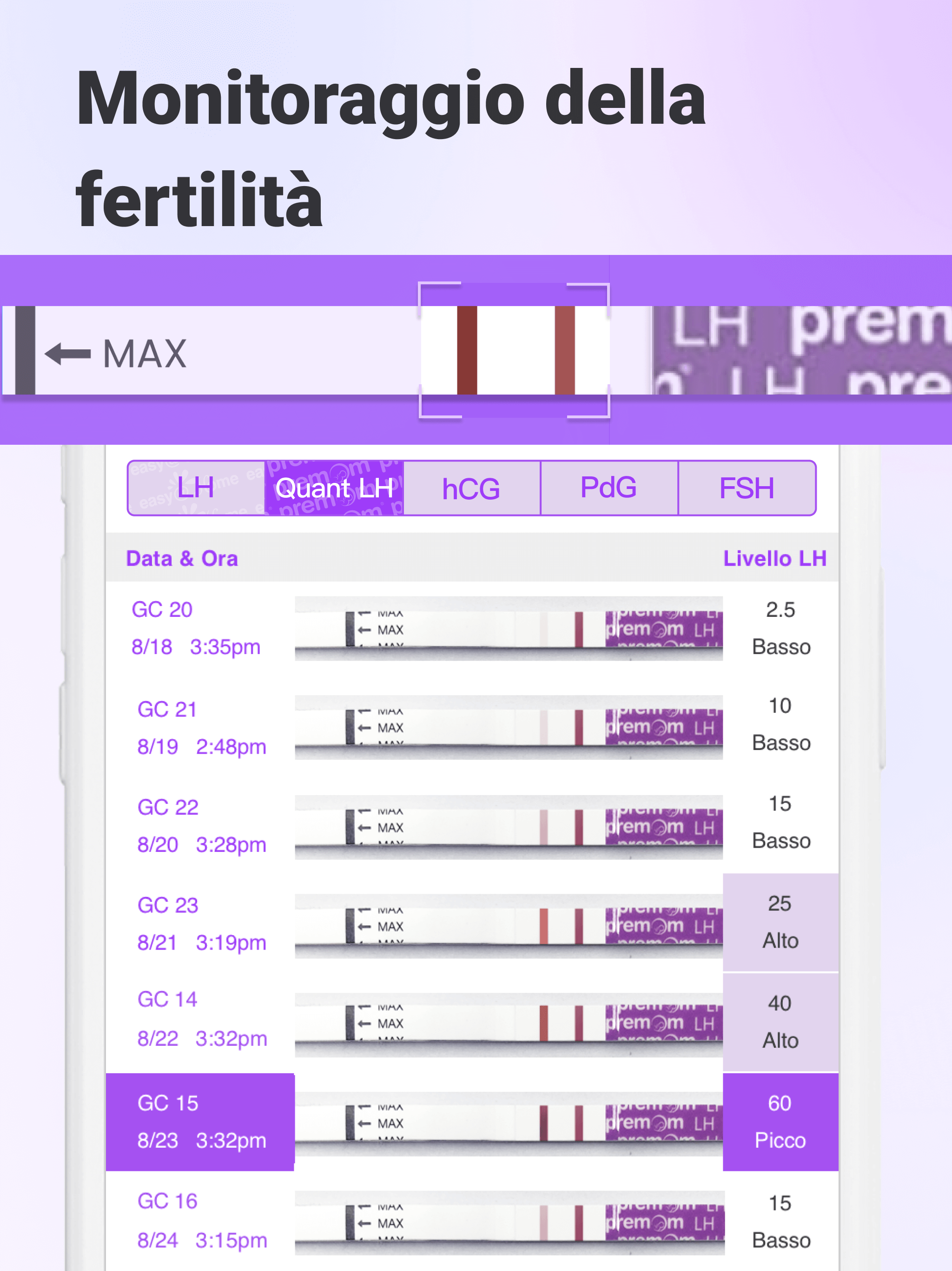 + Scarica i risultati dei test di fertilità dai test di ovulazione, gravidanza e del progesterone (PDG)