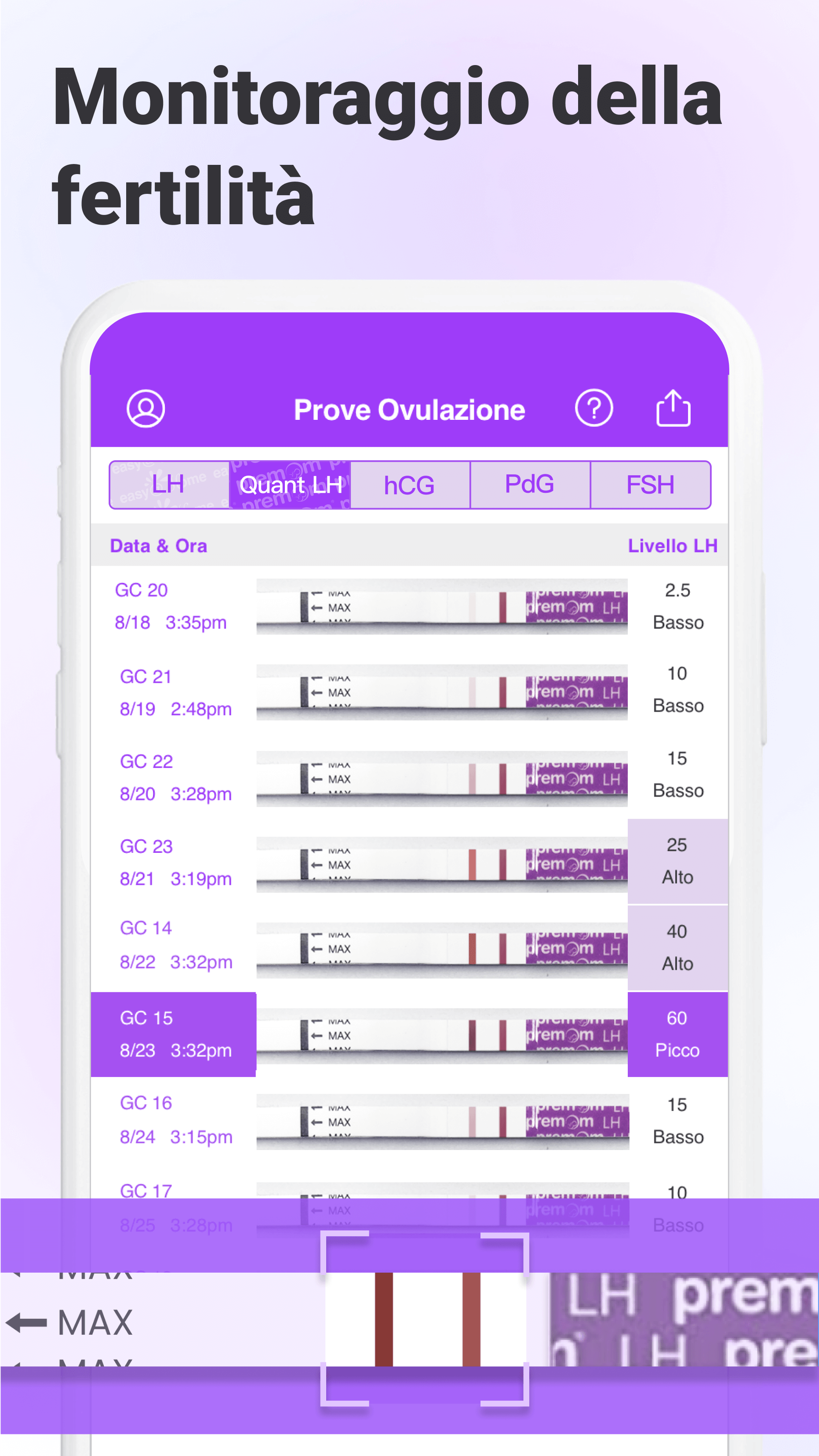 Caratteristiche del Tracciatore d’Ovulazione & Cicli: Scanner per test di Ovulazione + Scansiona i test di ovulazione per determinare con precisione il periodo fertile del tuo ciclo