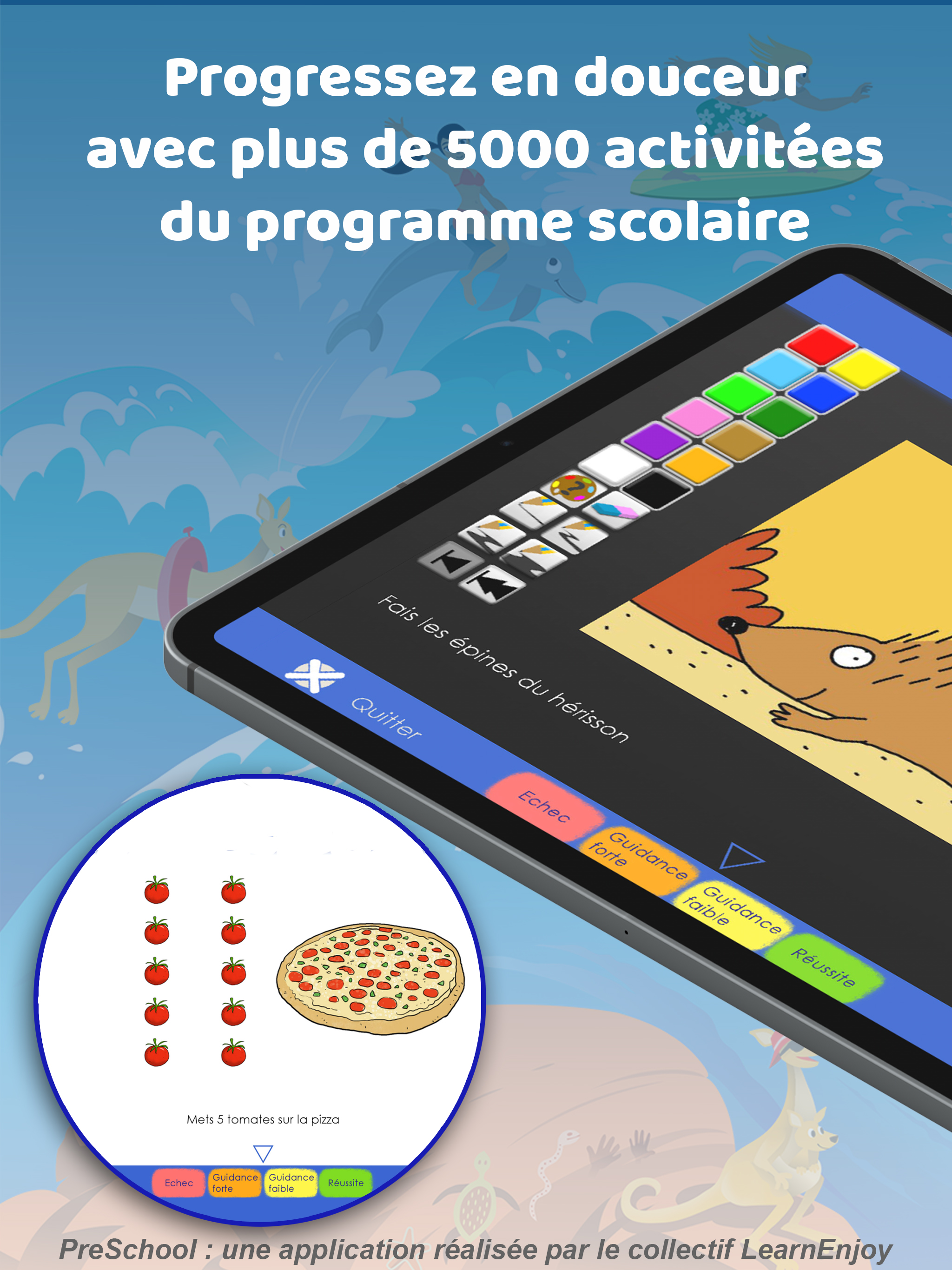 Nelle tue classi, con o senza WiFi, puoi supportare i tuoi studenti nella scoperta di nuove attività sul tablet, oppure affidare loro il tablet in modo che possano consolidare autonomamente questo apprendimento. Nel tuo spazio personale LearnEnjoy, sarai in grado di analizzare con precisione i risultati e i risultati dei tuoi studenti.