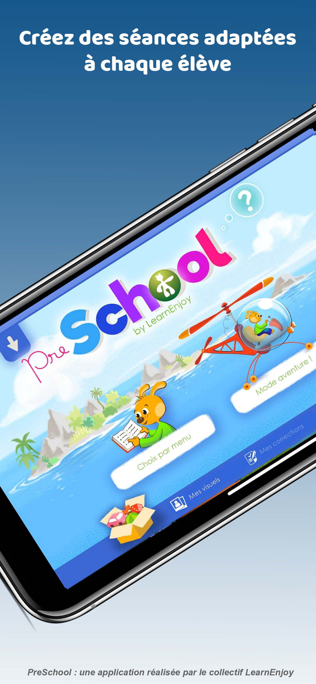 Prodotta in collaborazione con il Ministero della Pubblica Istruzione, questa applicazione riunisce 10.000 attività educative basate sugli ultimi progressi scientifici: psicologia dello sviluppo, scienze dell'educazione, ergonomia, apprendimento automatico.
