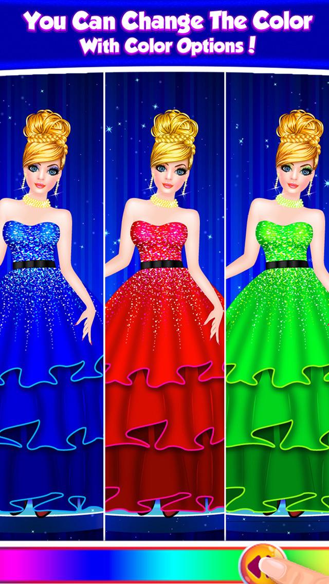 - Scegli un vestito per la tua Fashion Doll dal mazzo di opzioni; puoi anche cambiare il colore del vestito facendo scorrere l'opzione di colore specificata